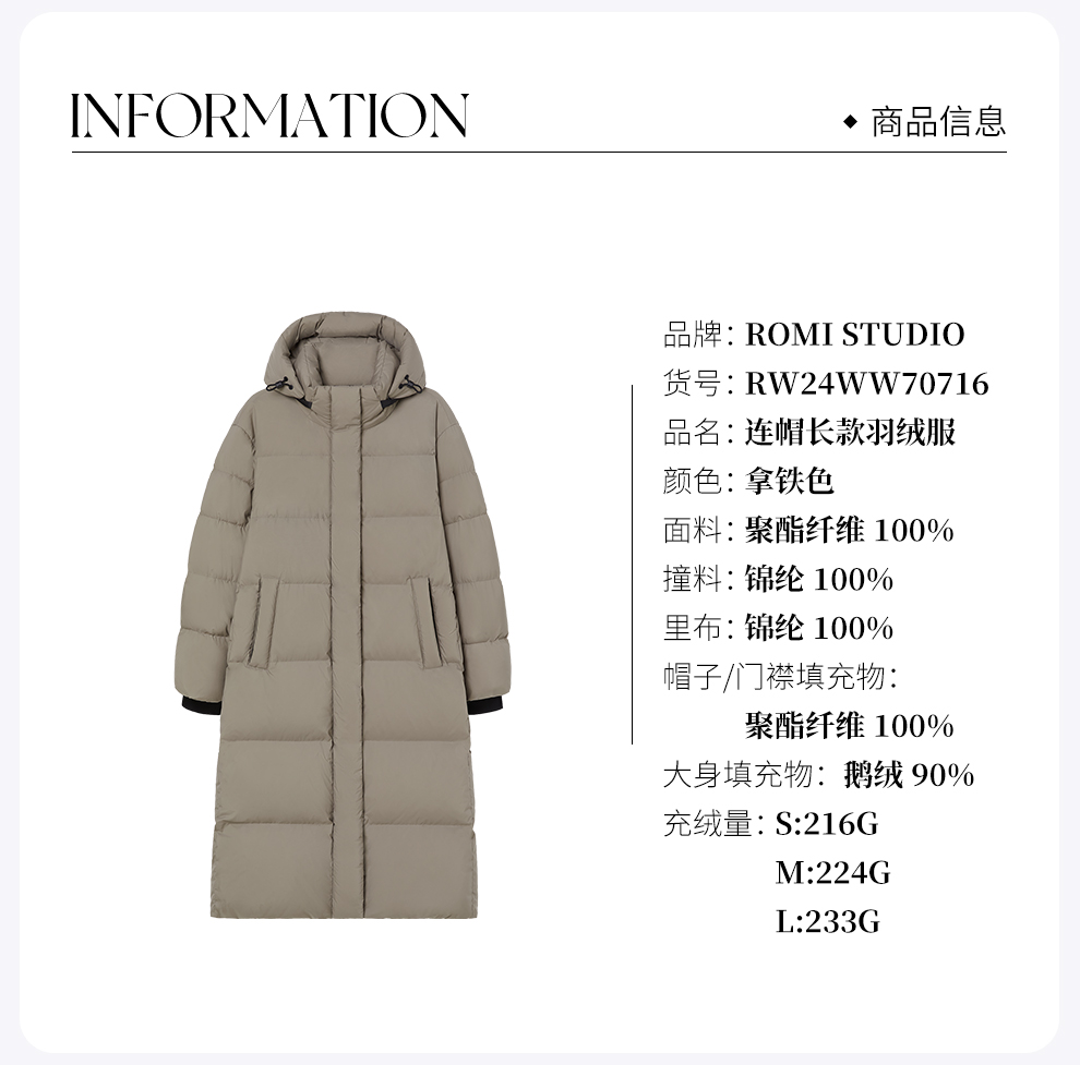 ROMI STUDIO“温暖过冬”90白鹅绒高克重哑光连帽羽绒服RW24WW70716