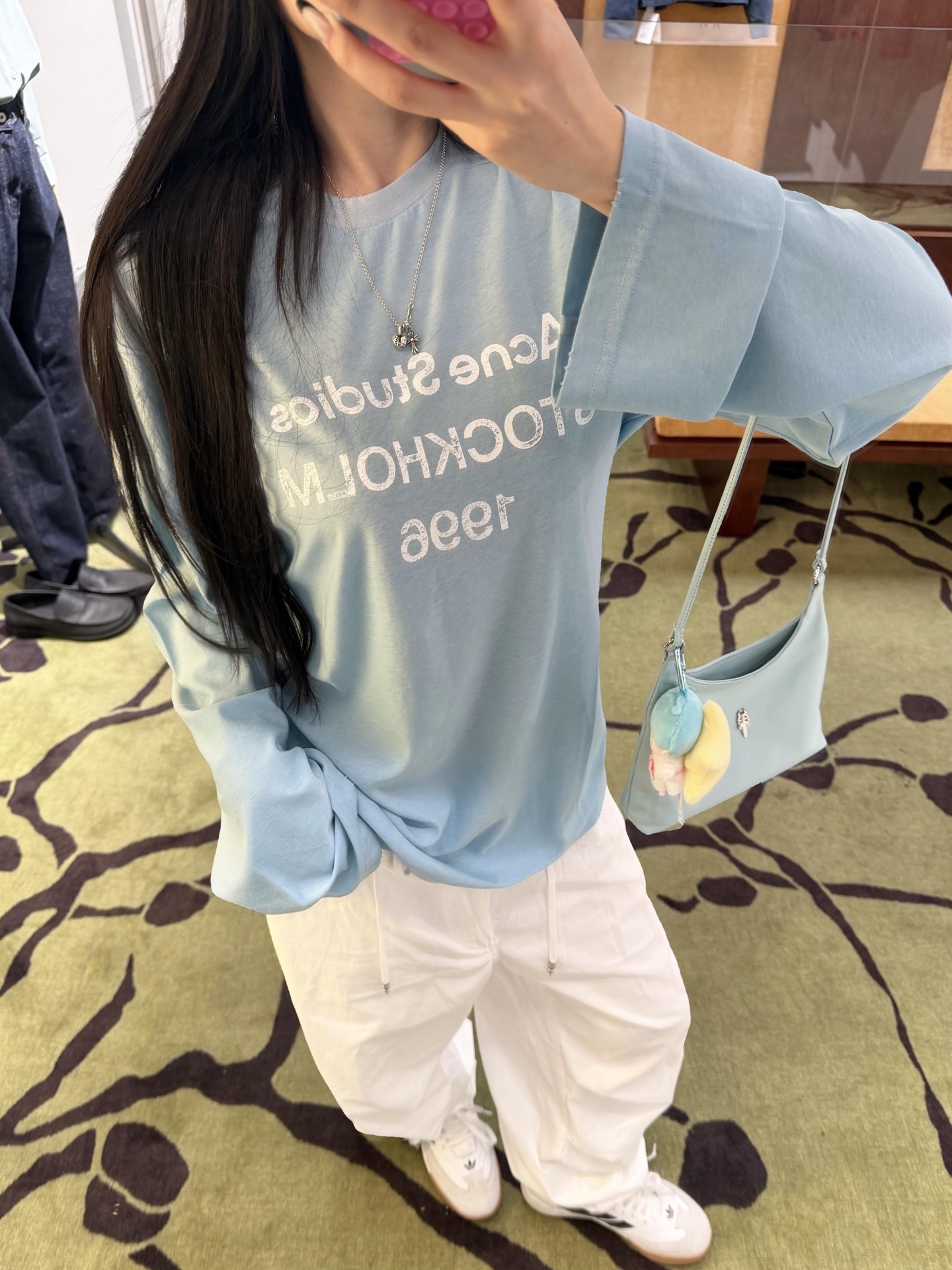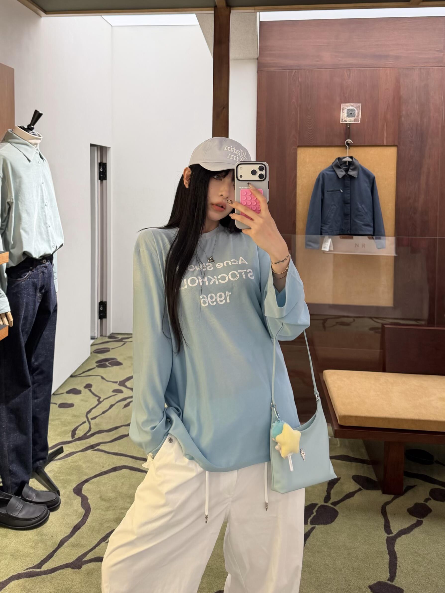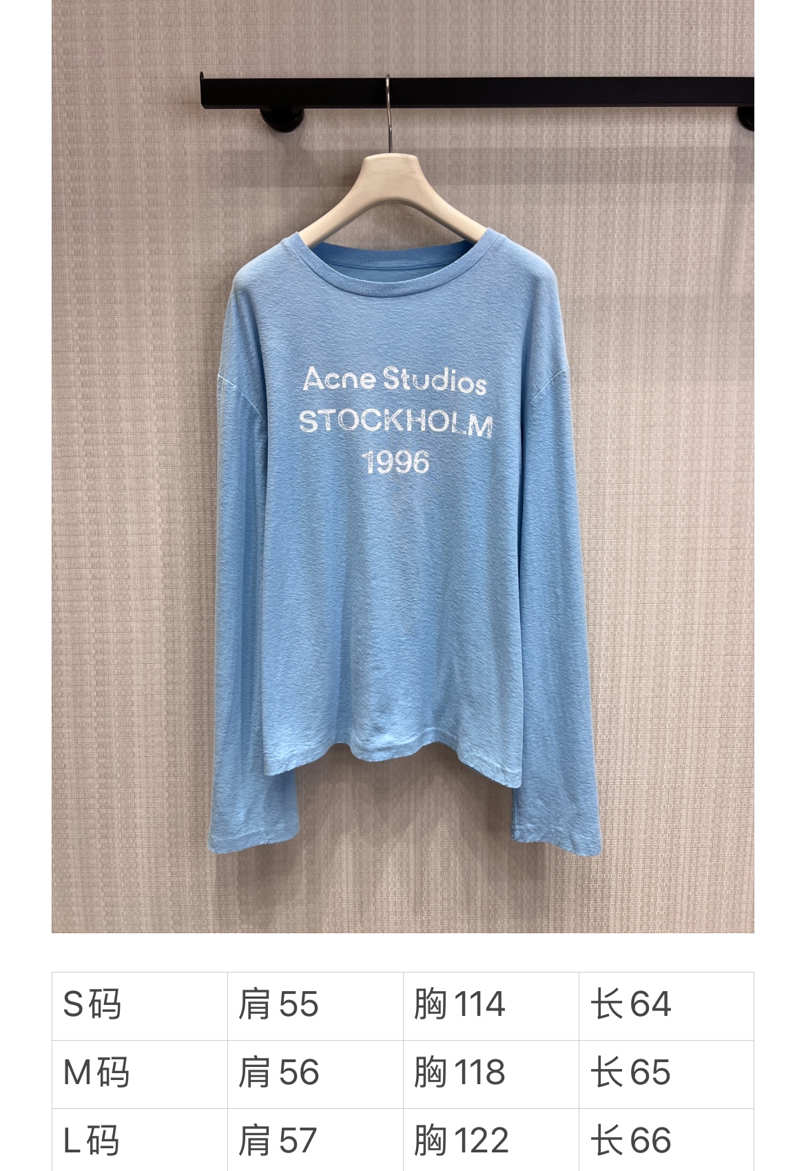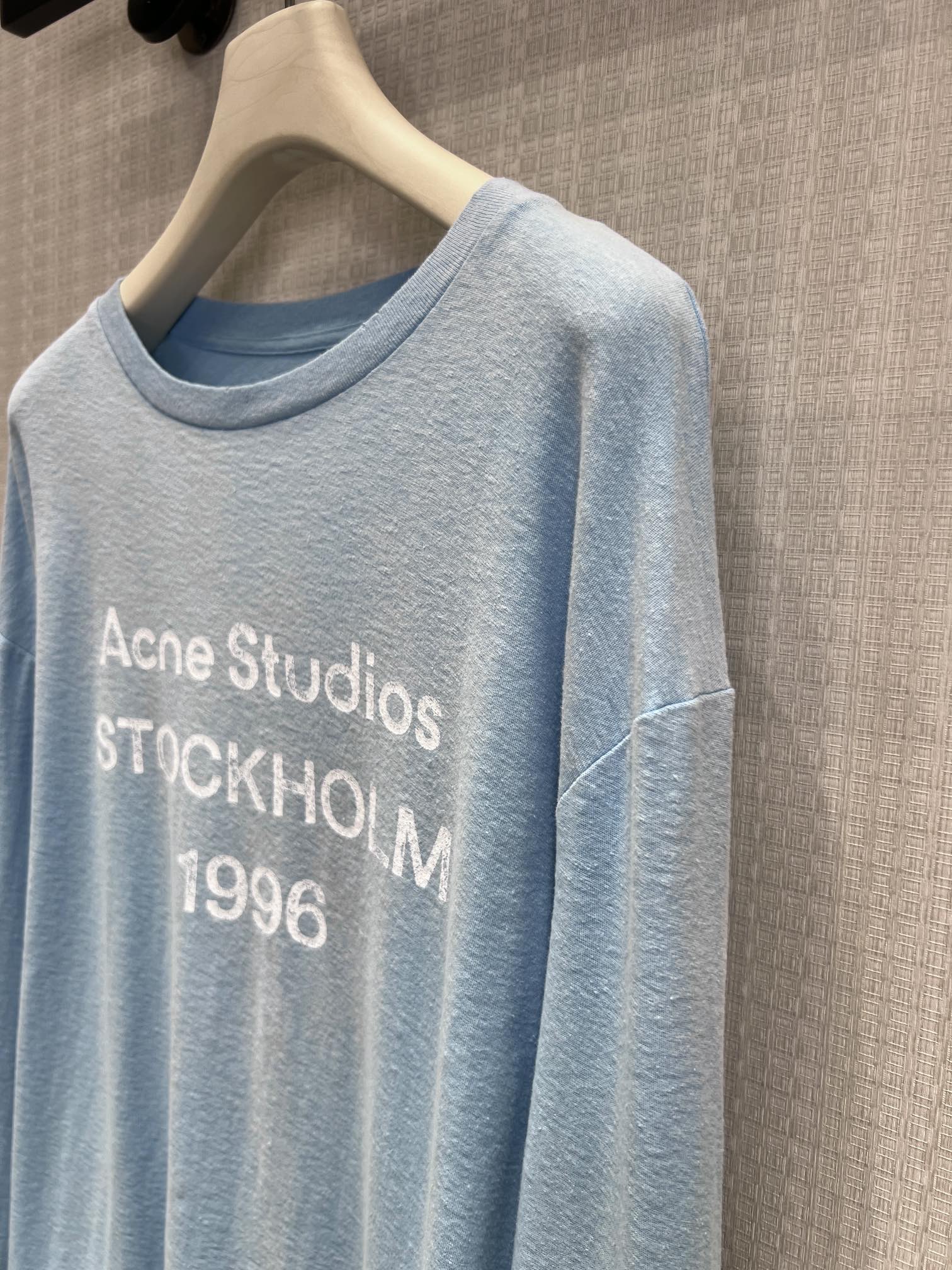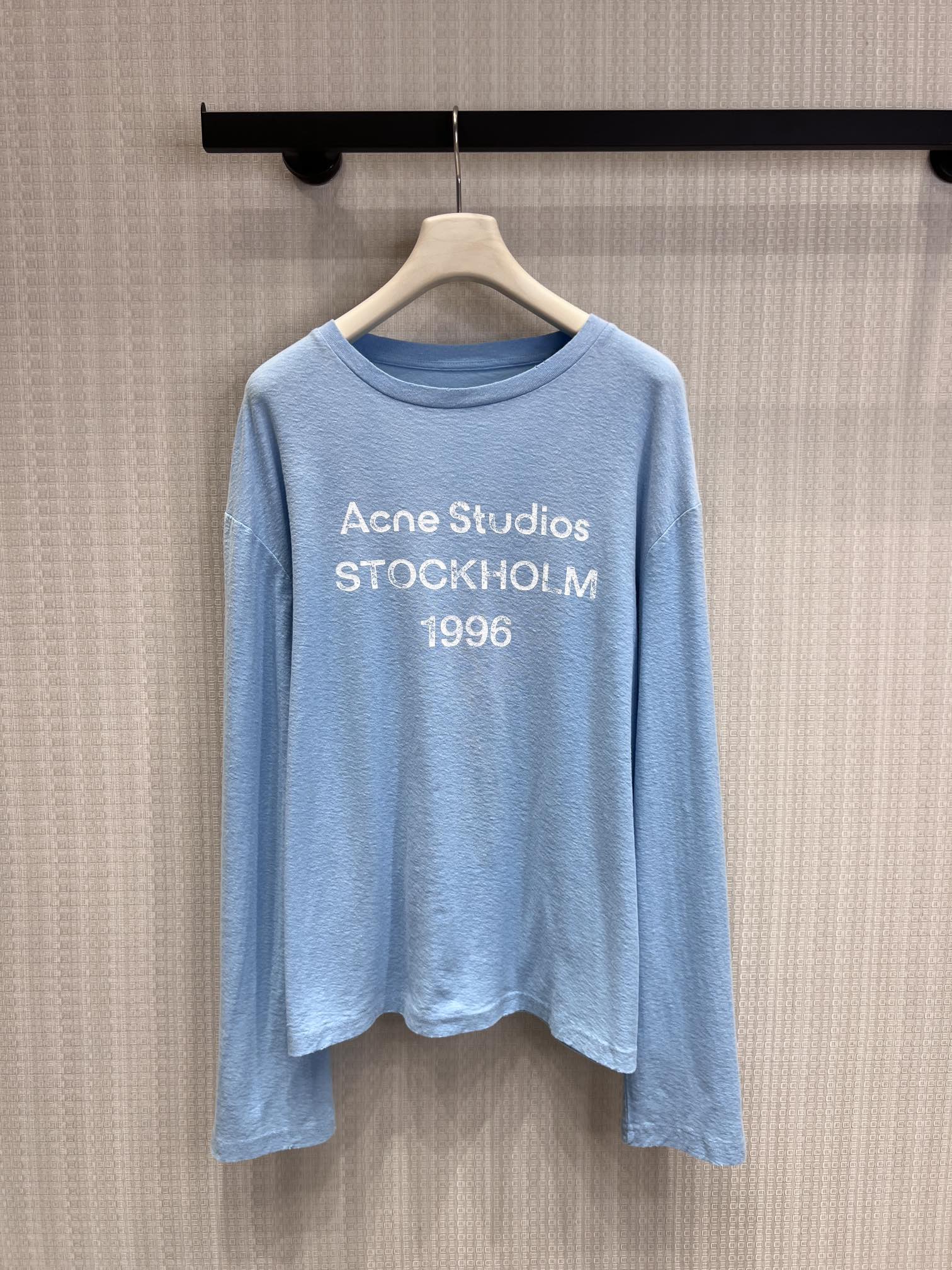 Acn* 26ss春夏新款 湖水蓝做旧1996 logo印花长袖T恤丨⚠独家yb开发!顶级高版出品!温柔的湖水蓝像把斯德哥尔摩的蓝天穿在身上,黄皮白皮都能直接冲。做旧水洗棉摸起来软fufu的,贴身穿巨舒服,宽松版型对各种身材都超友好,随便塞衣角都好看。胸前的1996字母印花低调又有辨识度,搭配牛仔裤、工装裤都能一键解锁美式复古或北欧极简风,春夏出门套上就走,懒人福音!现货发售S/M/L