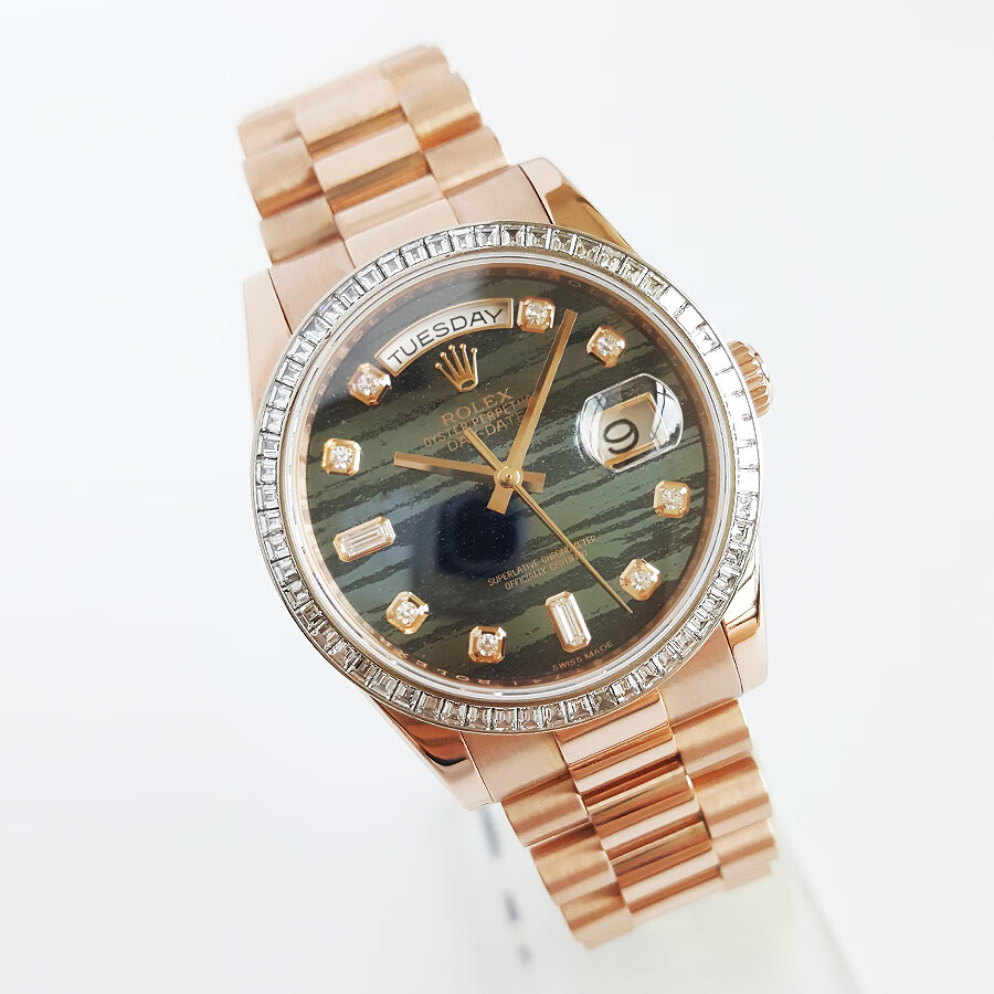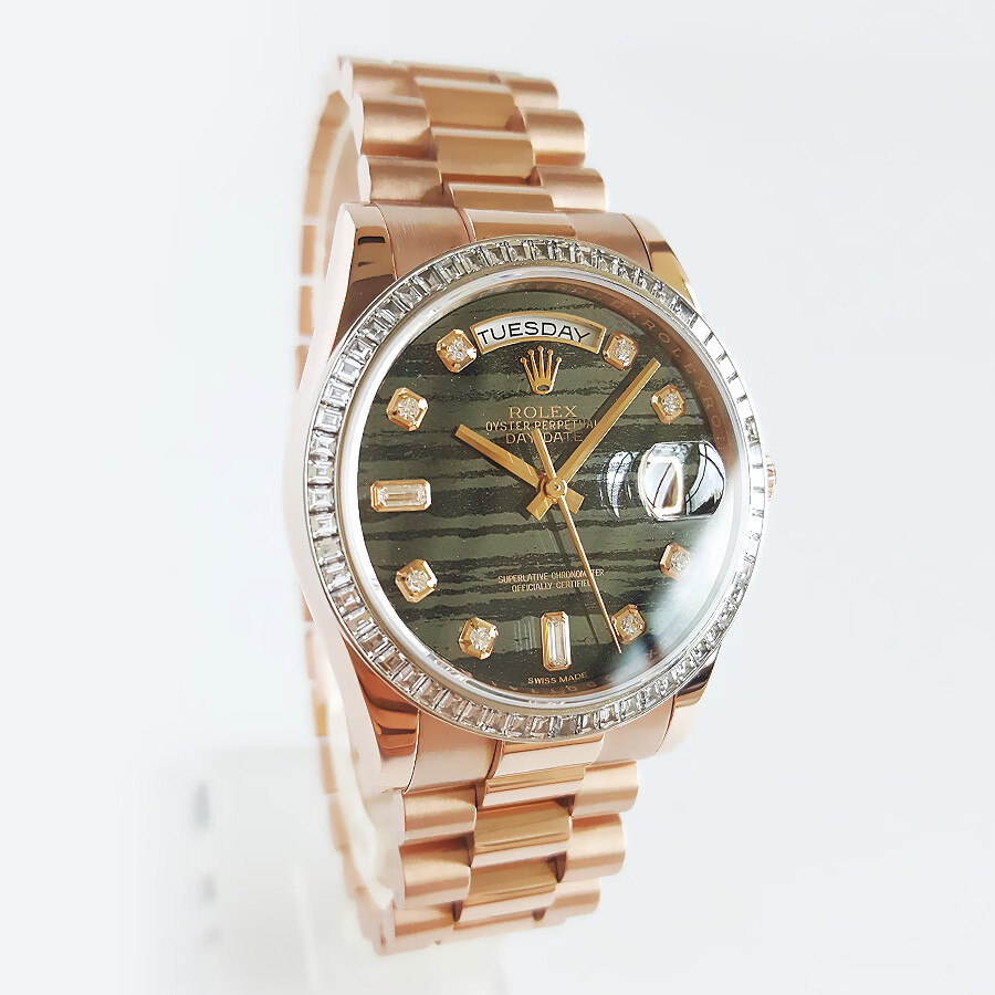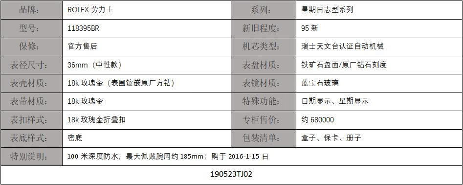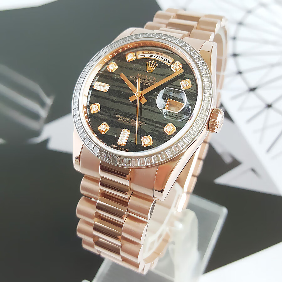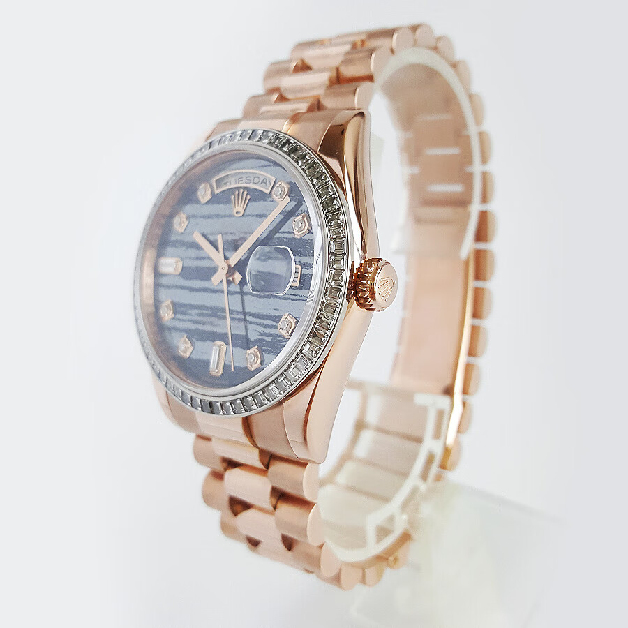 【95新正品】ROLEX劳力士星期日志型系列18k玫瑰金(表圈镶嵌原厂顶级方钻)36mm日期显示星期显示瑞士天文台认证自动机械中性款118395BR 190523TJ02