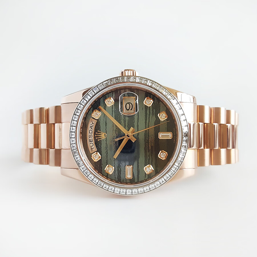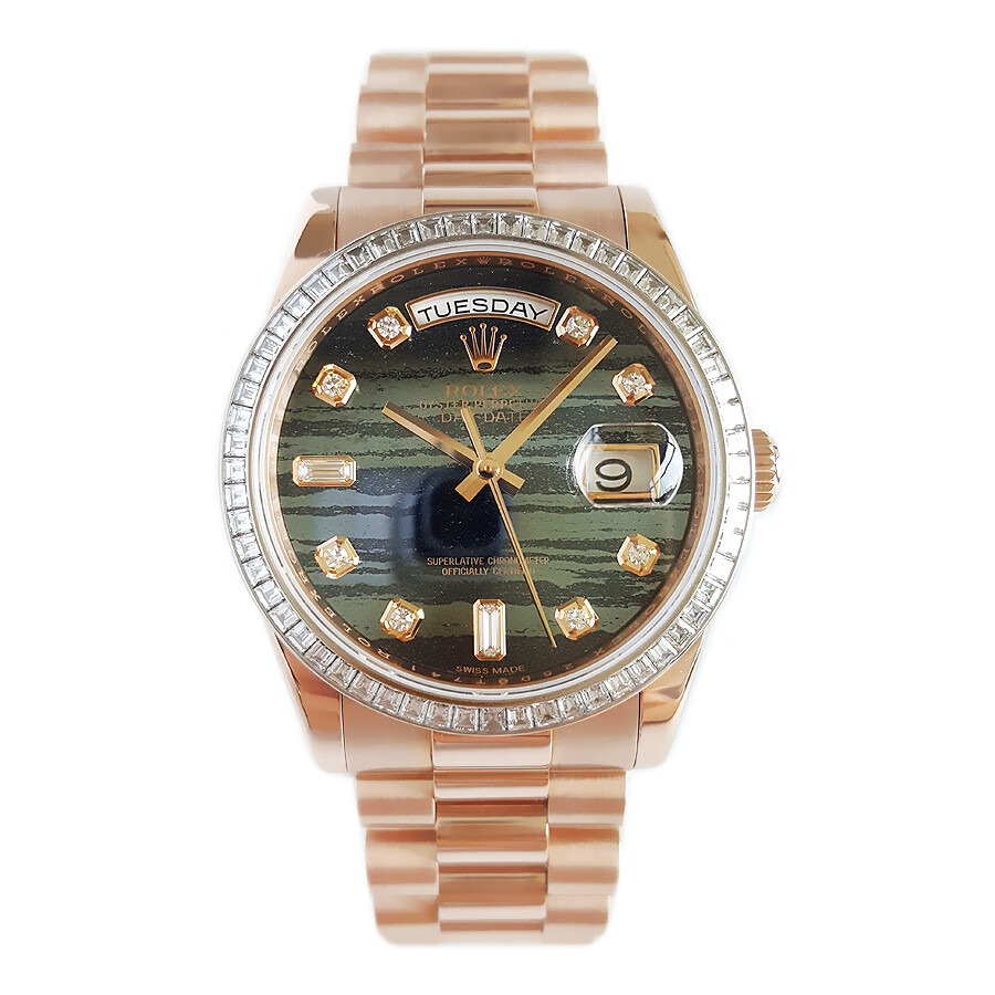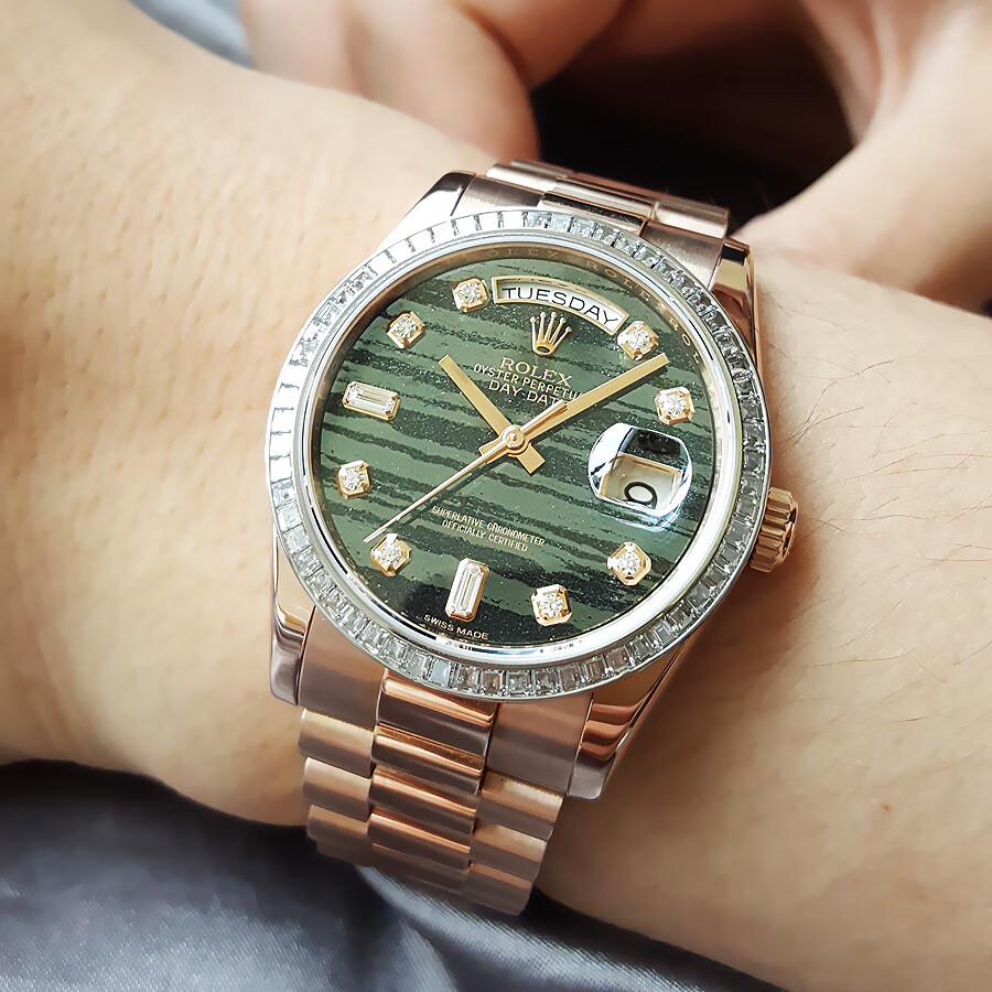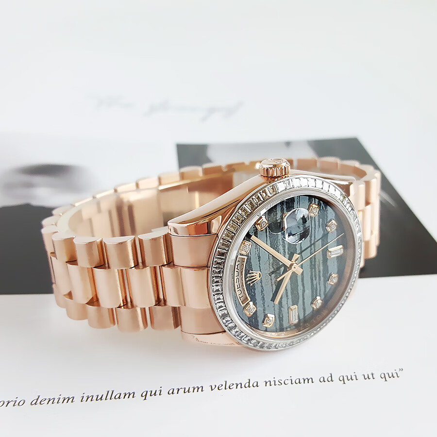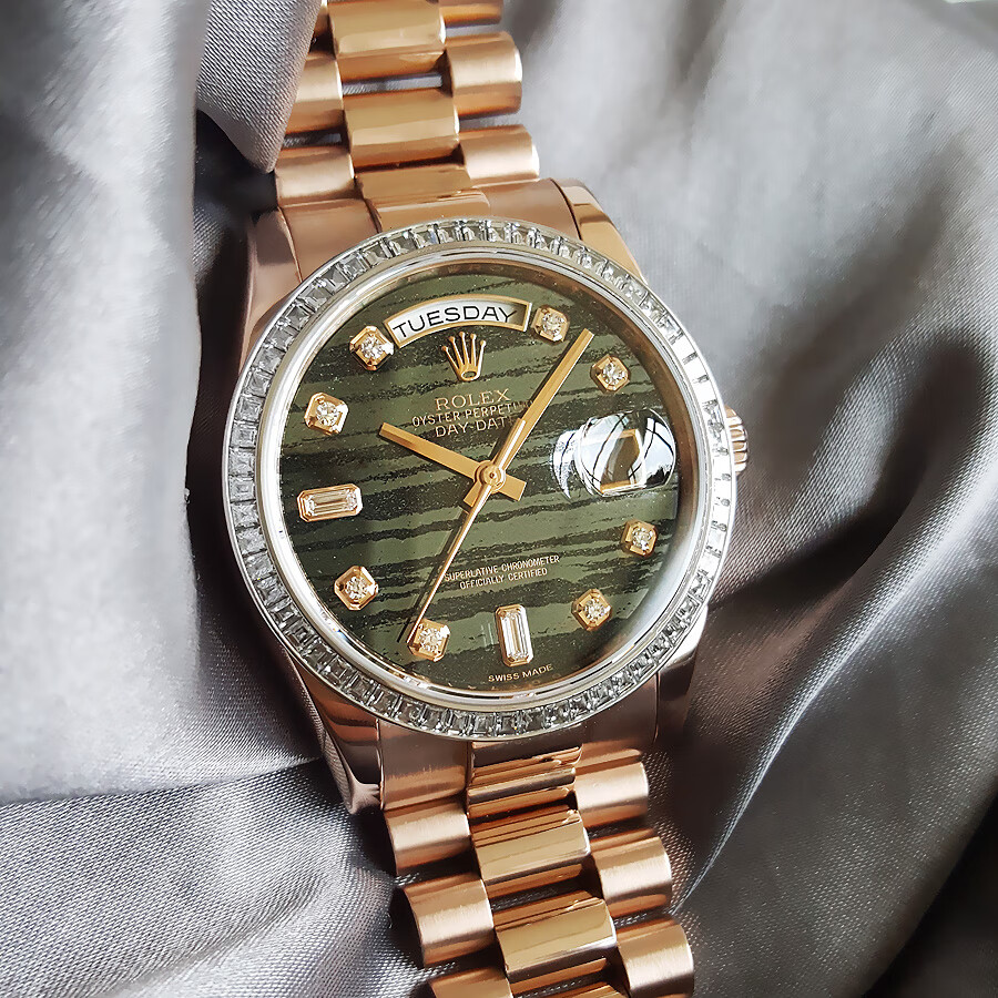 【95新正品】ROLEX劳力士星期日志型系列18k玫瑰金(表圈镶嵌原厂顶级方钻)36mm日期显示星期显示瑞士天文台认证自动机械中性款118395BR 190523TJ02