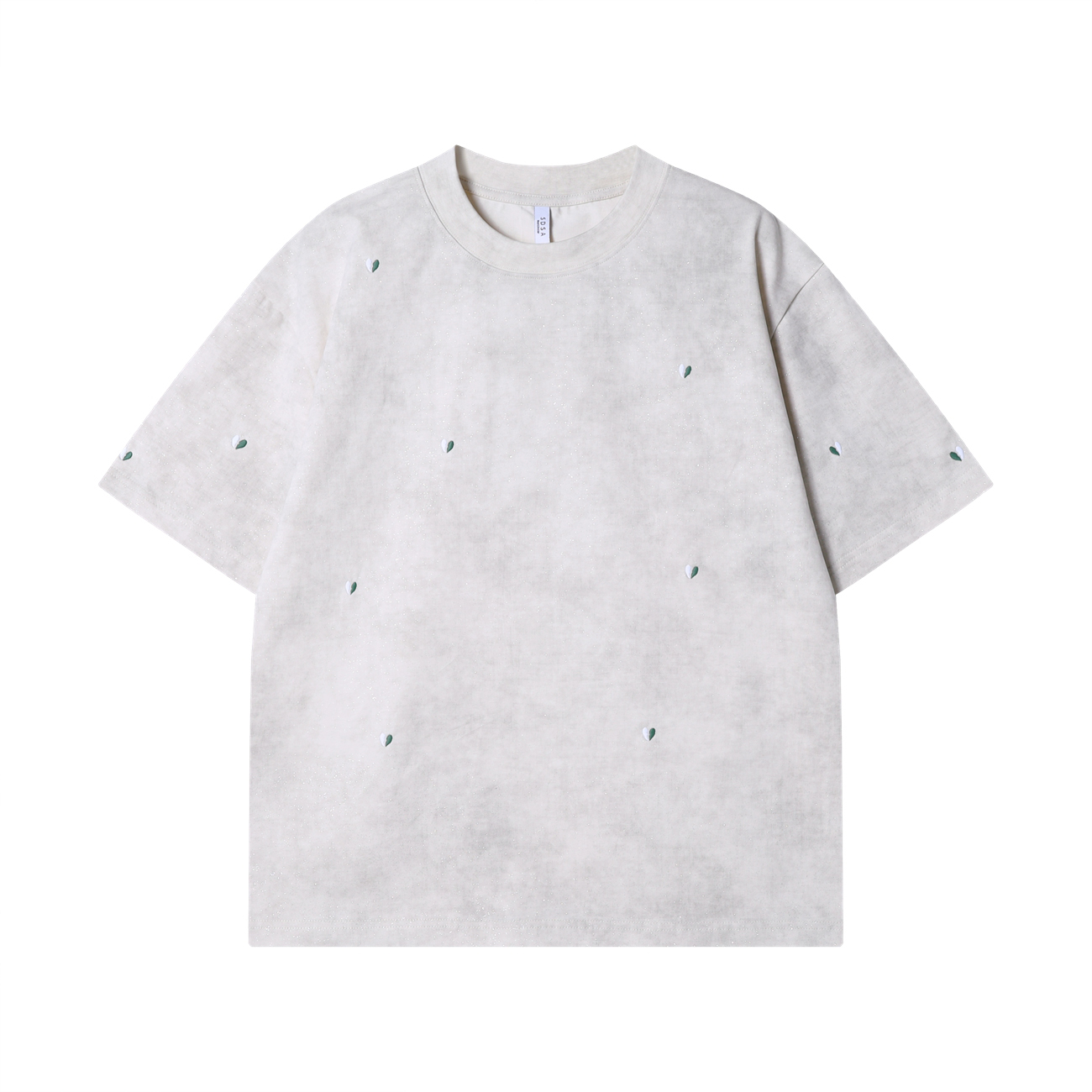 T2823夏季高级感新款韩版时尚细闪刺绣小爱心简约休闲宽松圆领短袖