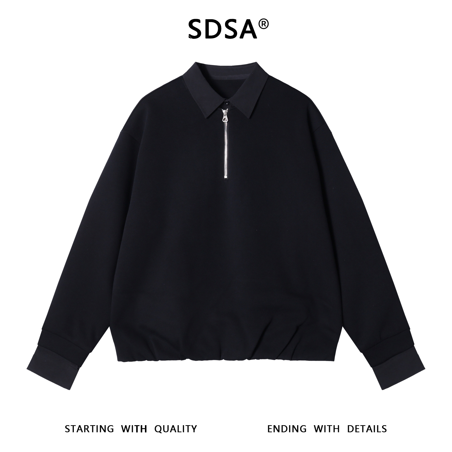 SDSA秋冬新款痞帅男装韩版简约半拉链翻领假两件卫衣百搭舒适上衣