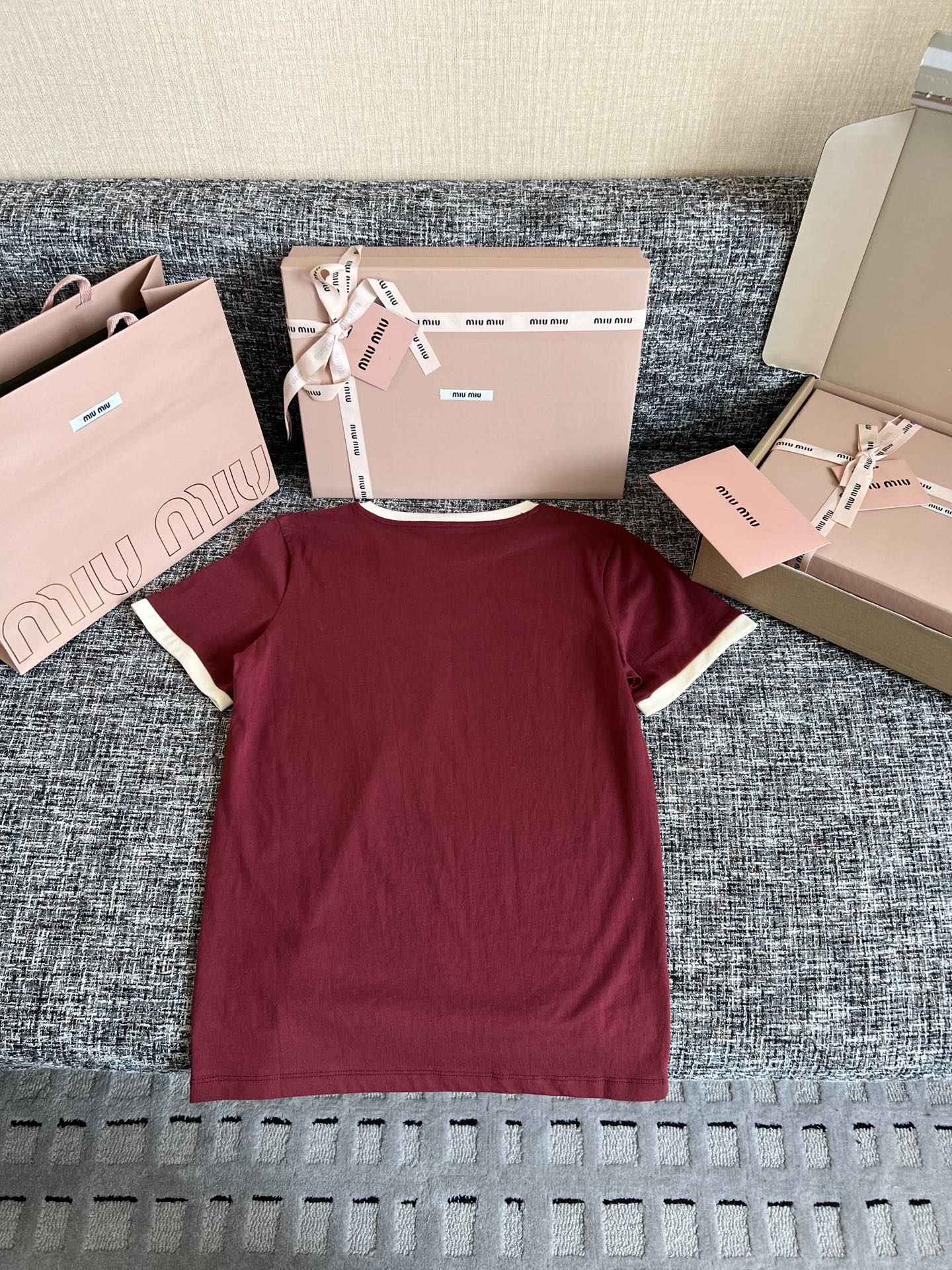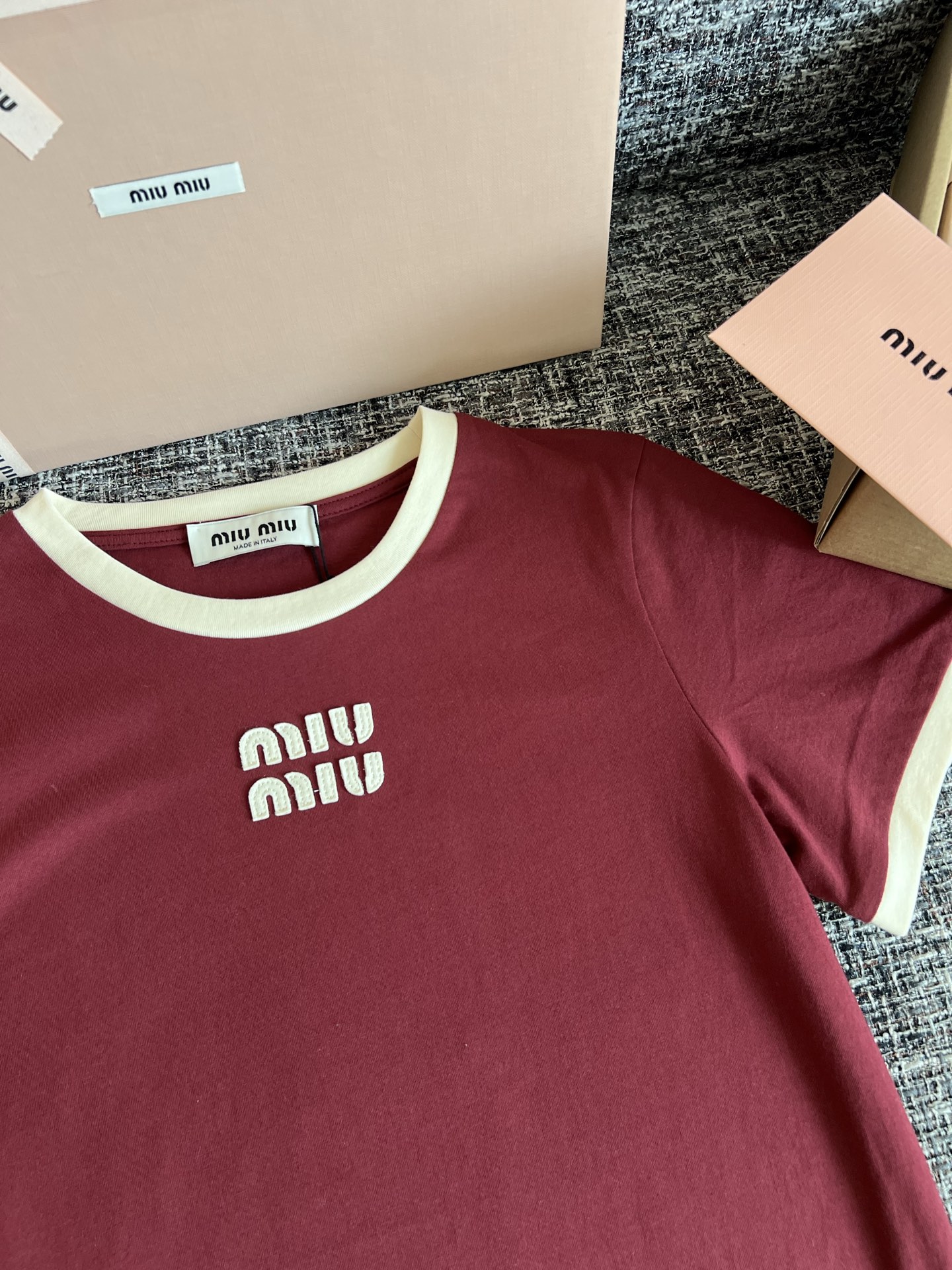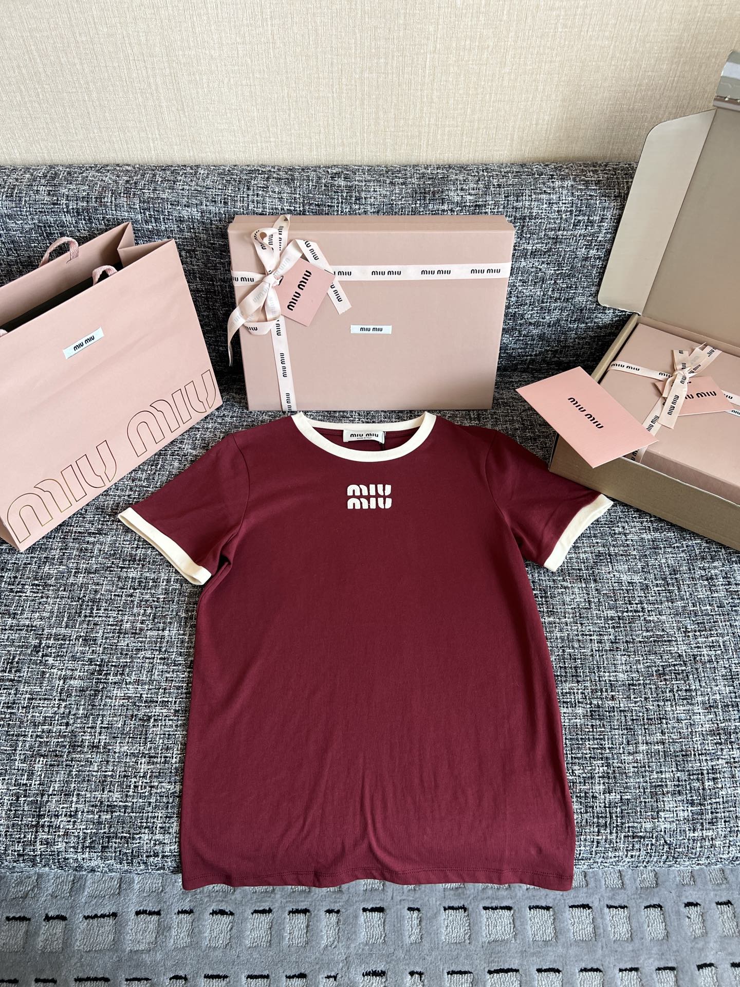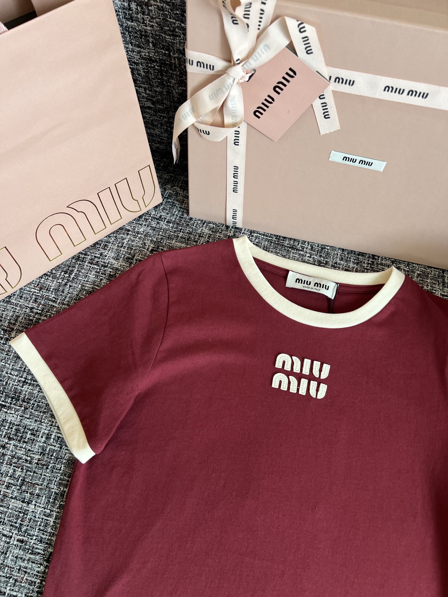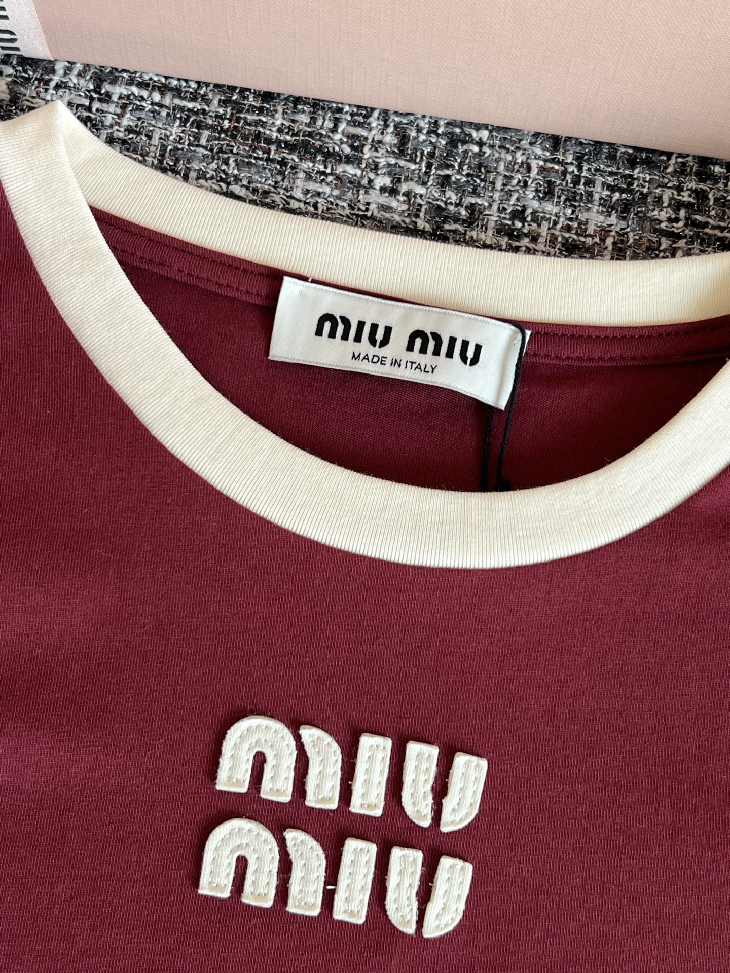MiuMiu 26早春新款短袖🐮5900购买Zp拆解打造,订织订染ROW匹马棉面料🐮 真正用到100%纯棉纱线做到对版出货💪工艺放大看细节除还原度接近98以上 做工也无敌了🔥真正做到1:1还原 直接闭着眼购买👀码数:S M L