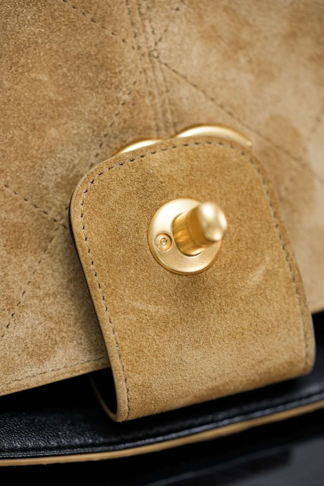 原版皮面高清鉴赏⚠️自带复古滤镜的质感✨ 麂皮也就是“反绒小牛皮🐂”拼接黑色小🐑羊皮!很和谐的撞色搭配;两种不同材质形成哑光与亮面的反差‼️剪裁拼接干净利落!层次感拉满👏🏻配备皮质短肩带;