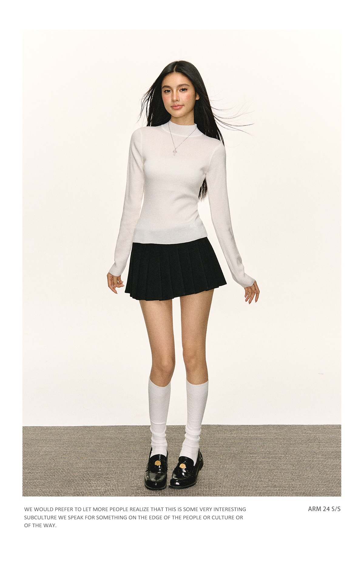 Ariseism 美式亨利领白色修身长袖T恤女秋季紧身上衣内搭打底衫
