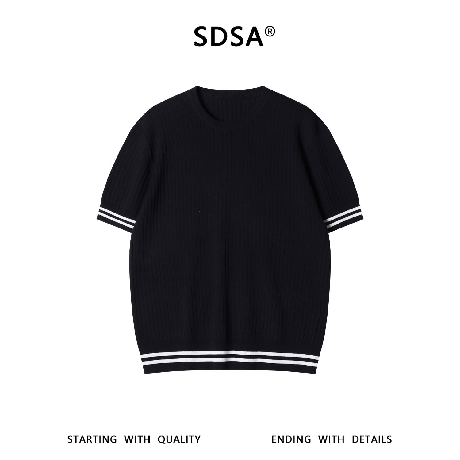 SDSA男装2026新款高贵轻奢日系简约竖纹撞色针织圆领短袖T恤休闲