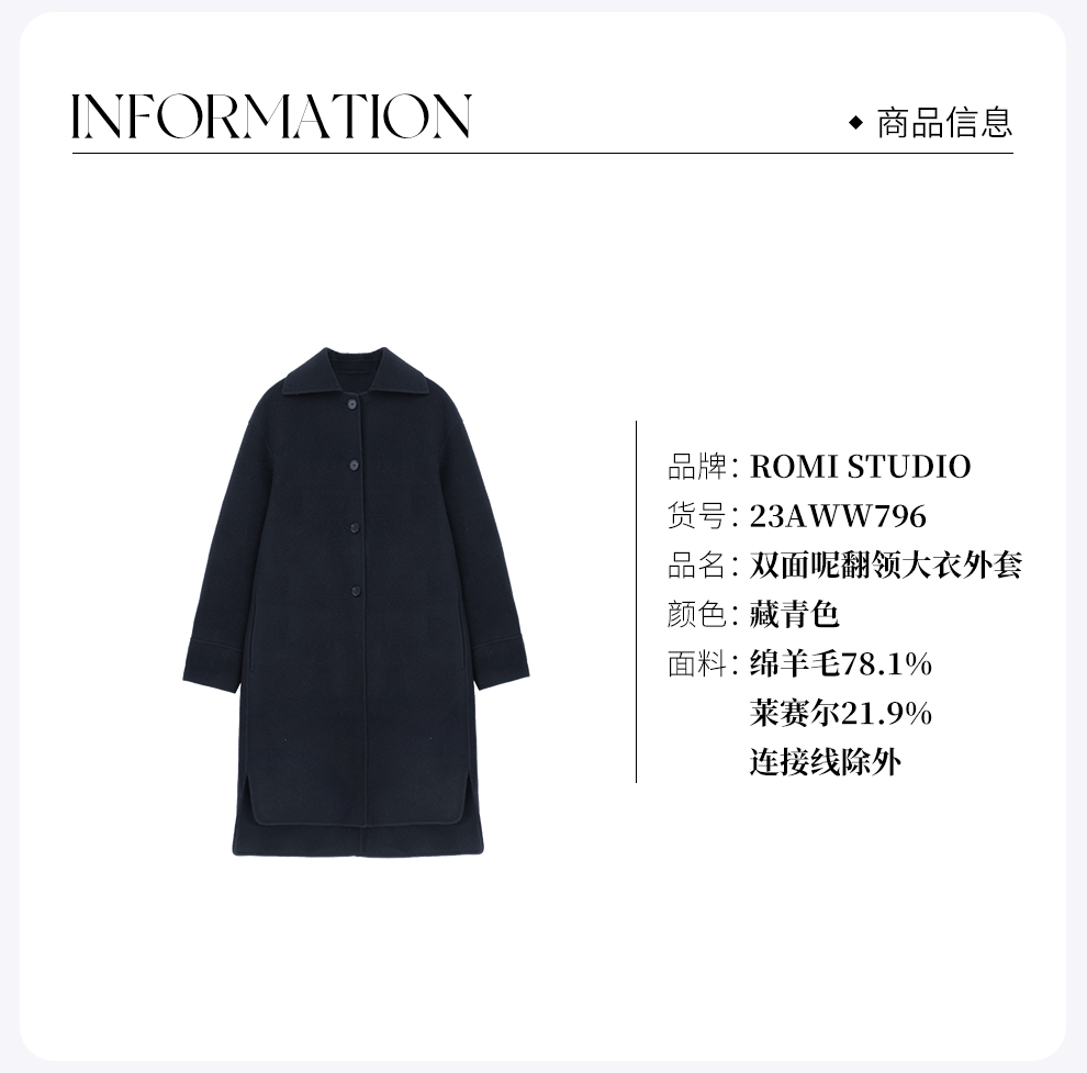 ROMI STUDIO“随性优雅”气质天丝混纺双面呢翻领大衣外套 23AWW796