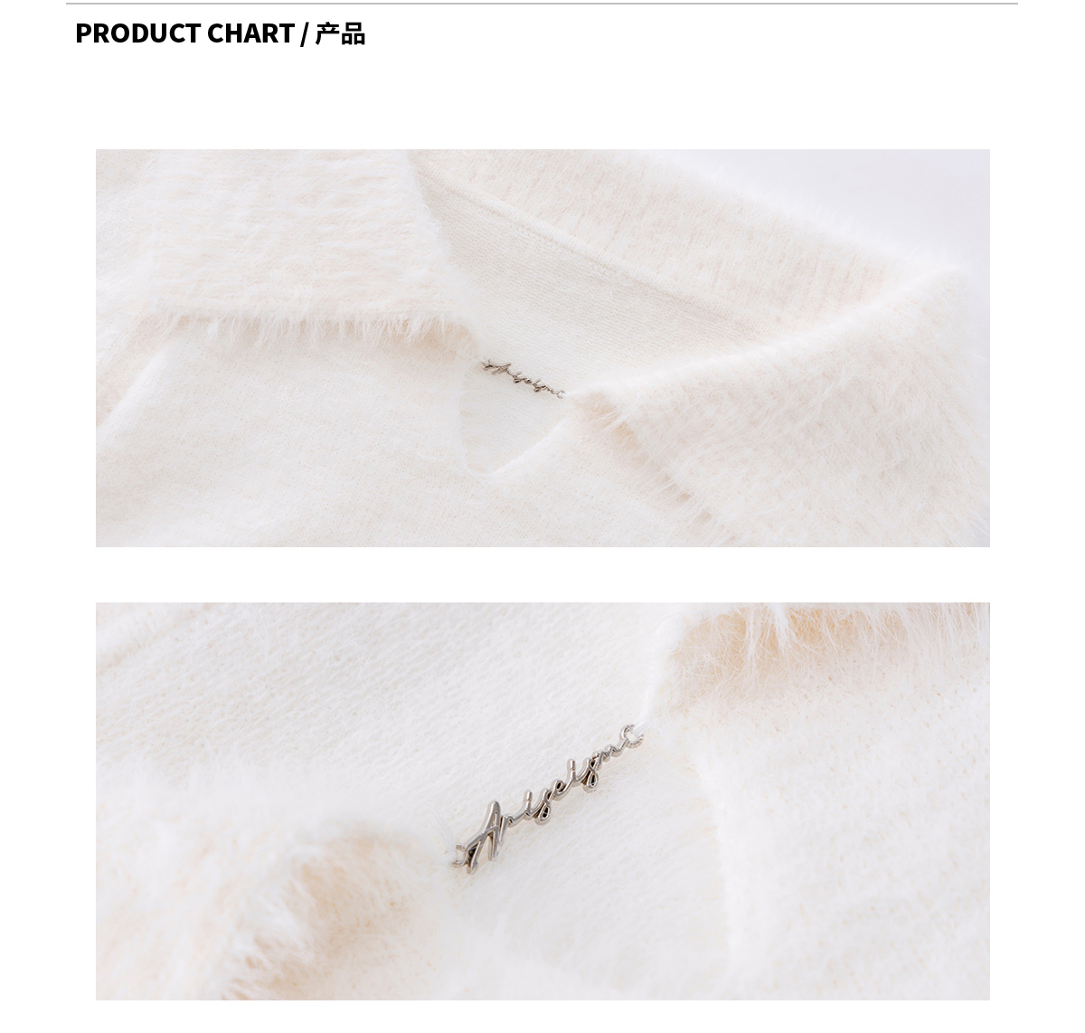 Ariseism 美式复古设计感翻领露肩软糯长袖针织衫女春季新款毛衣