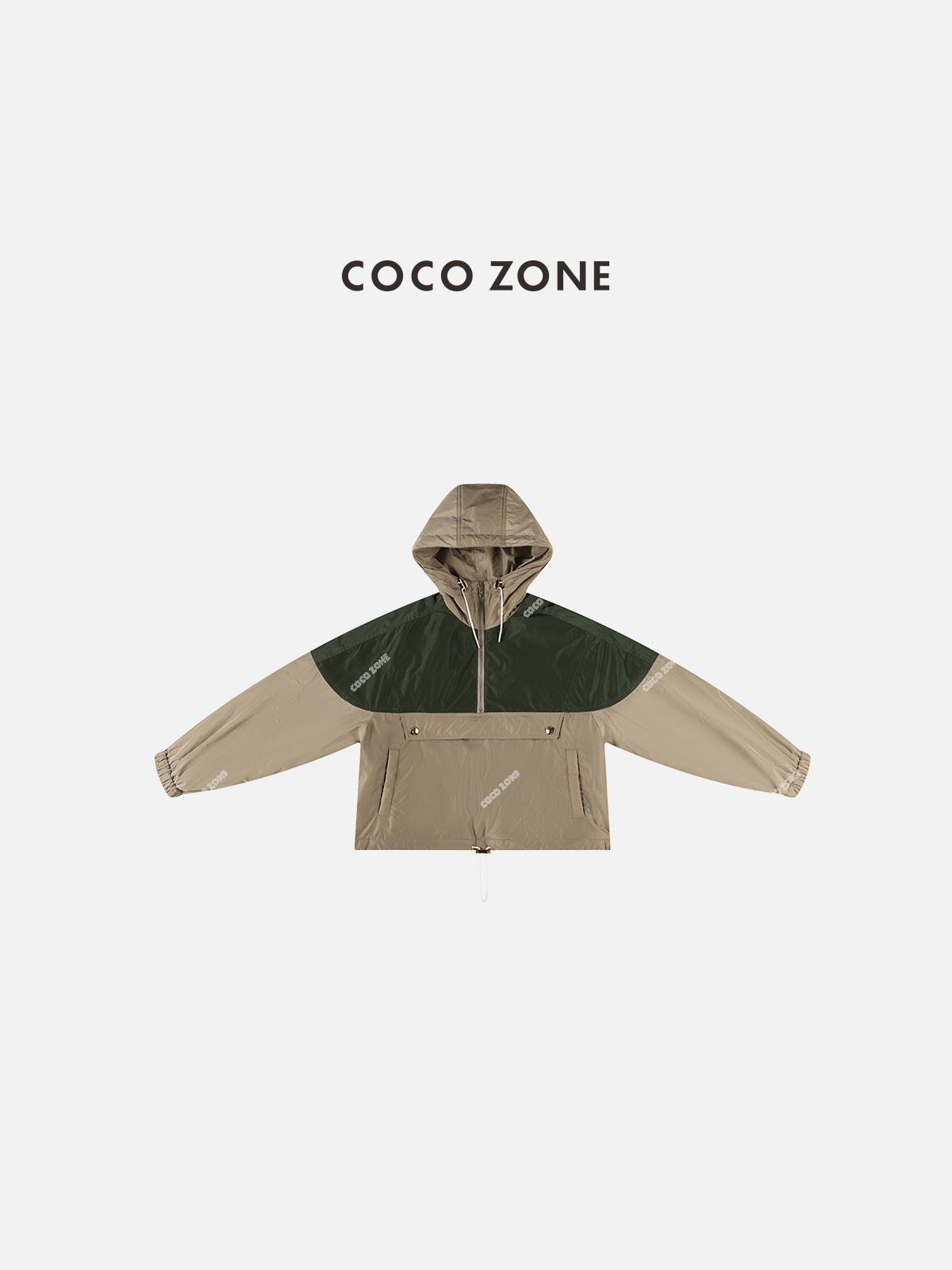 COCOZONE秋季拼色冲锋衣抽绳连帽户外出游风衣23C19403