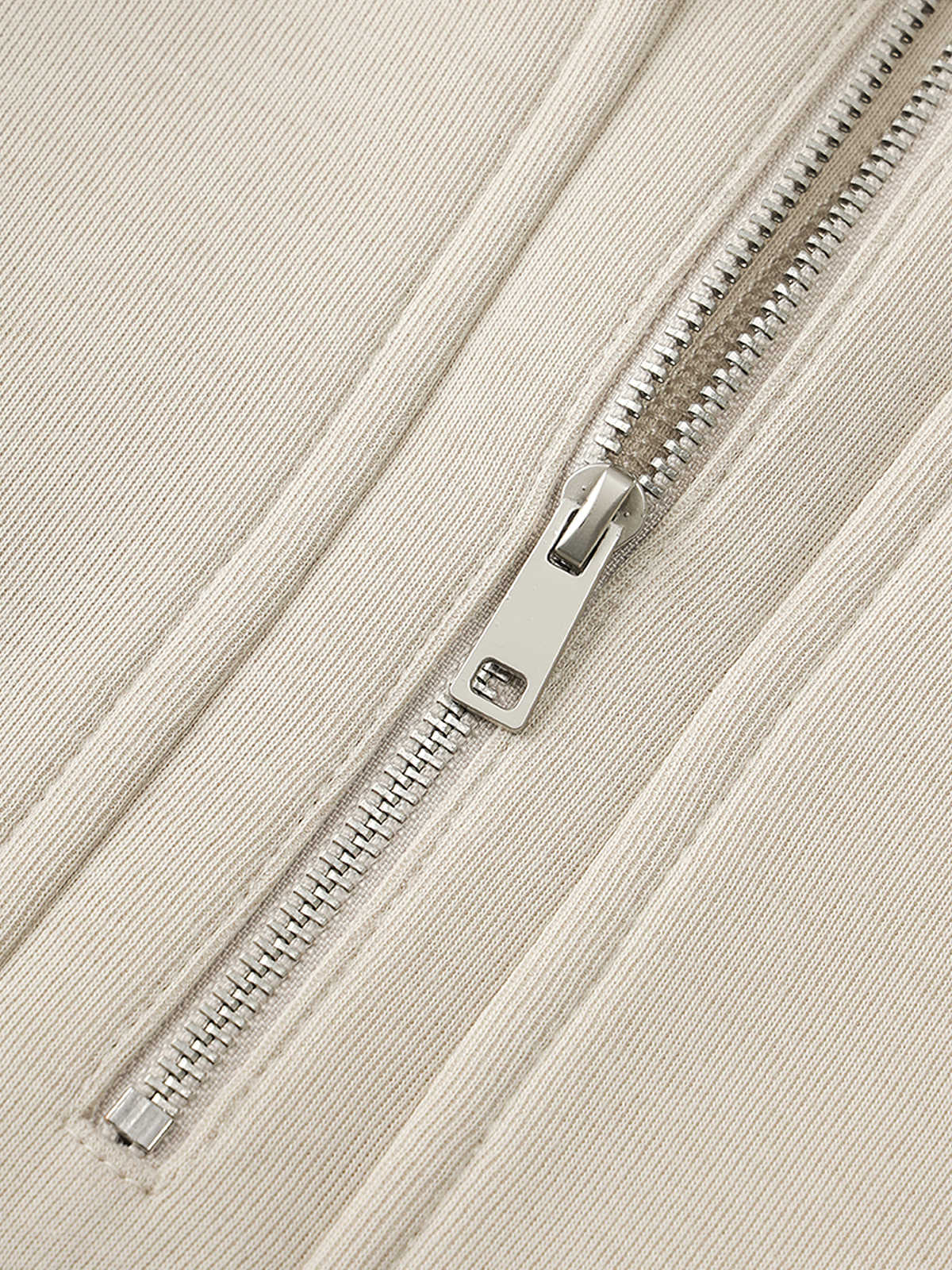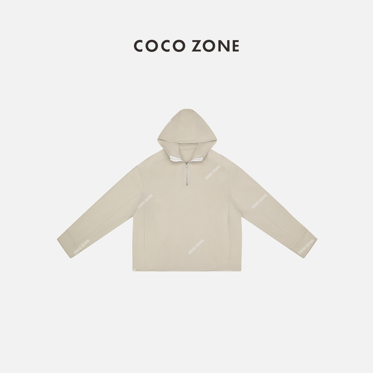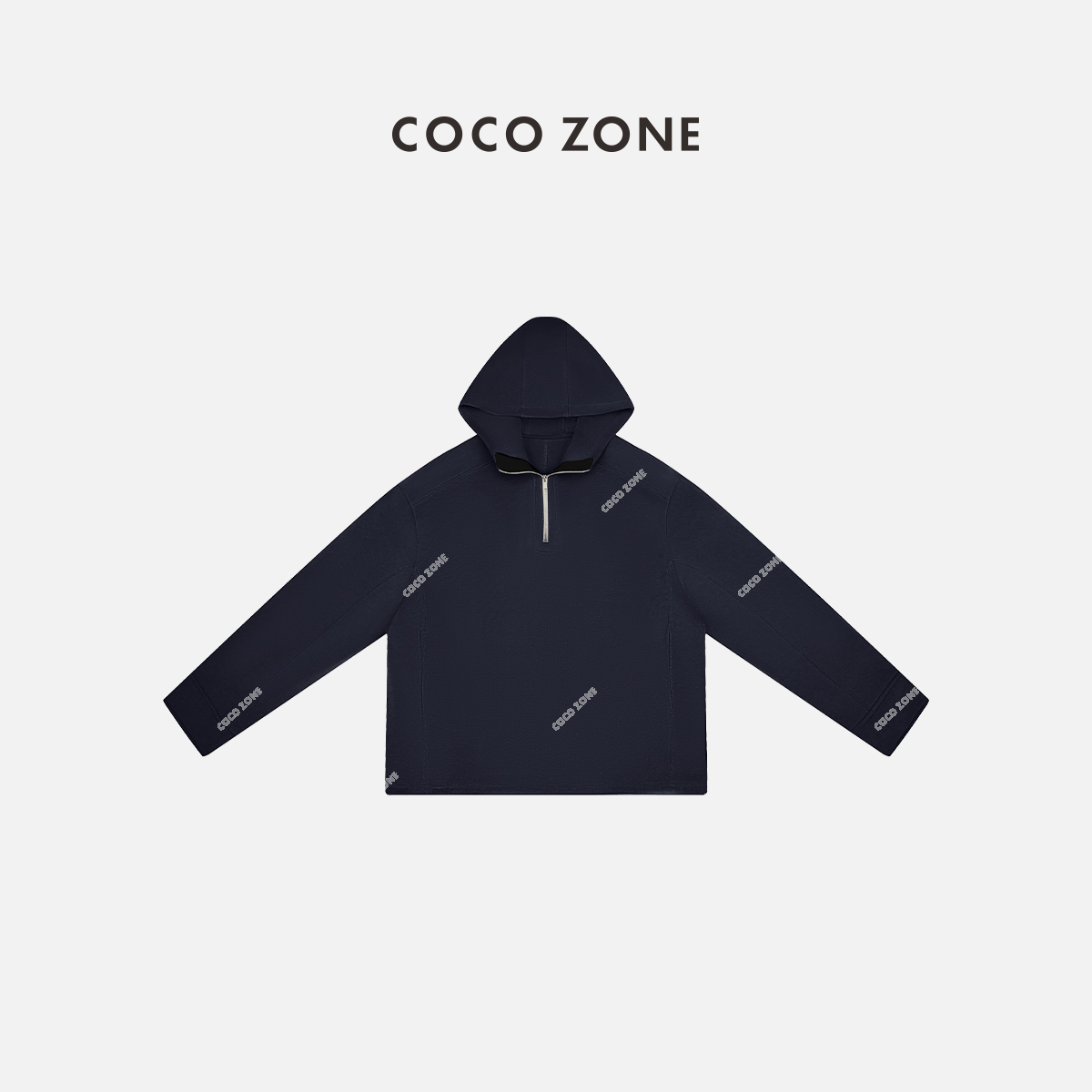 COCO ZONE 高级设计感休闲连帽半门襟拉链百搭松紧下摆卫衣24C10146
