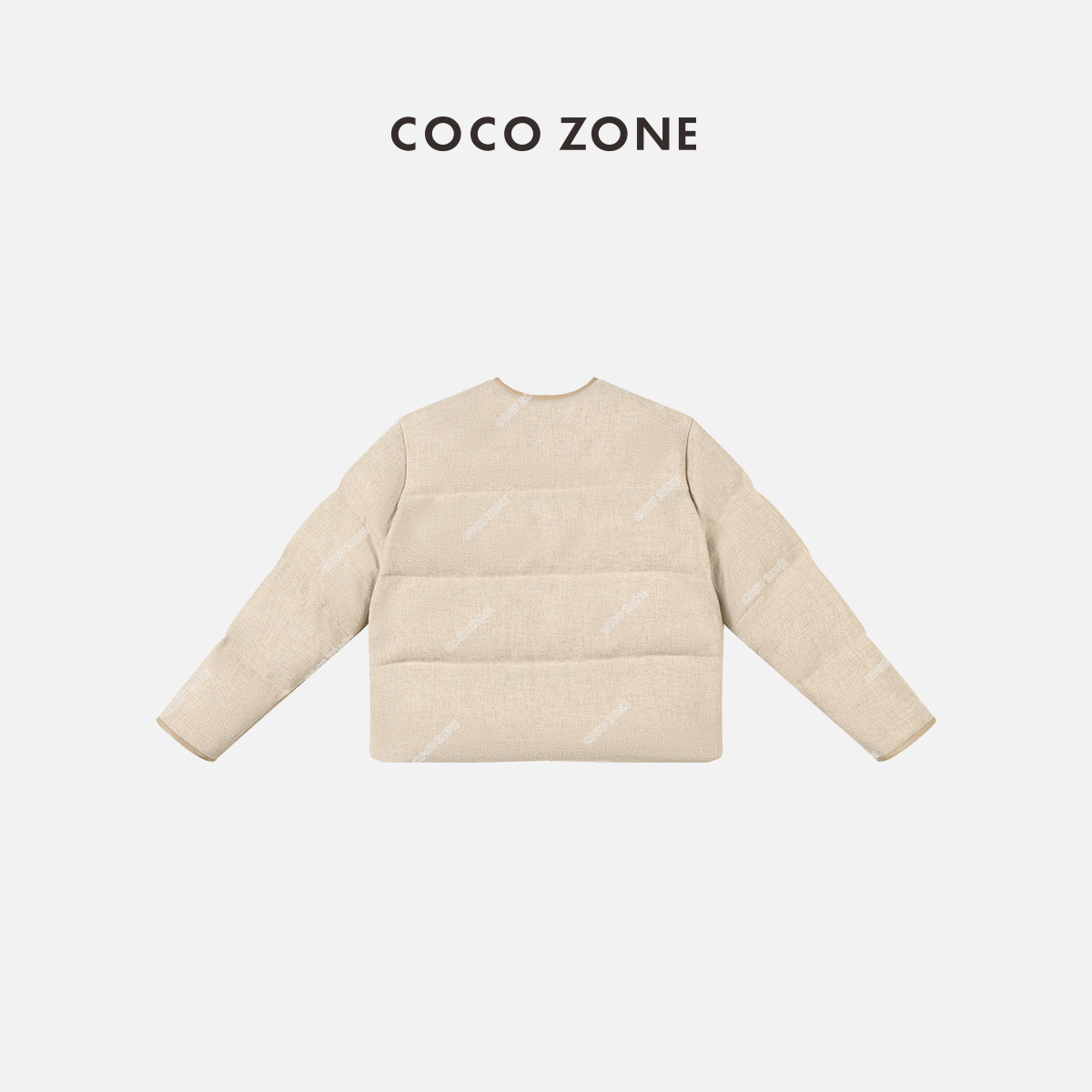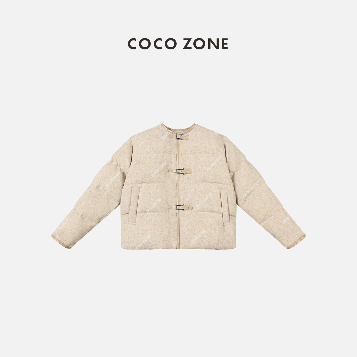 COCO ZONE90鹅绒卡扣圆领长袖冬羊毛短款羽绒服23C19553