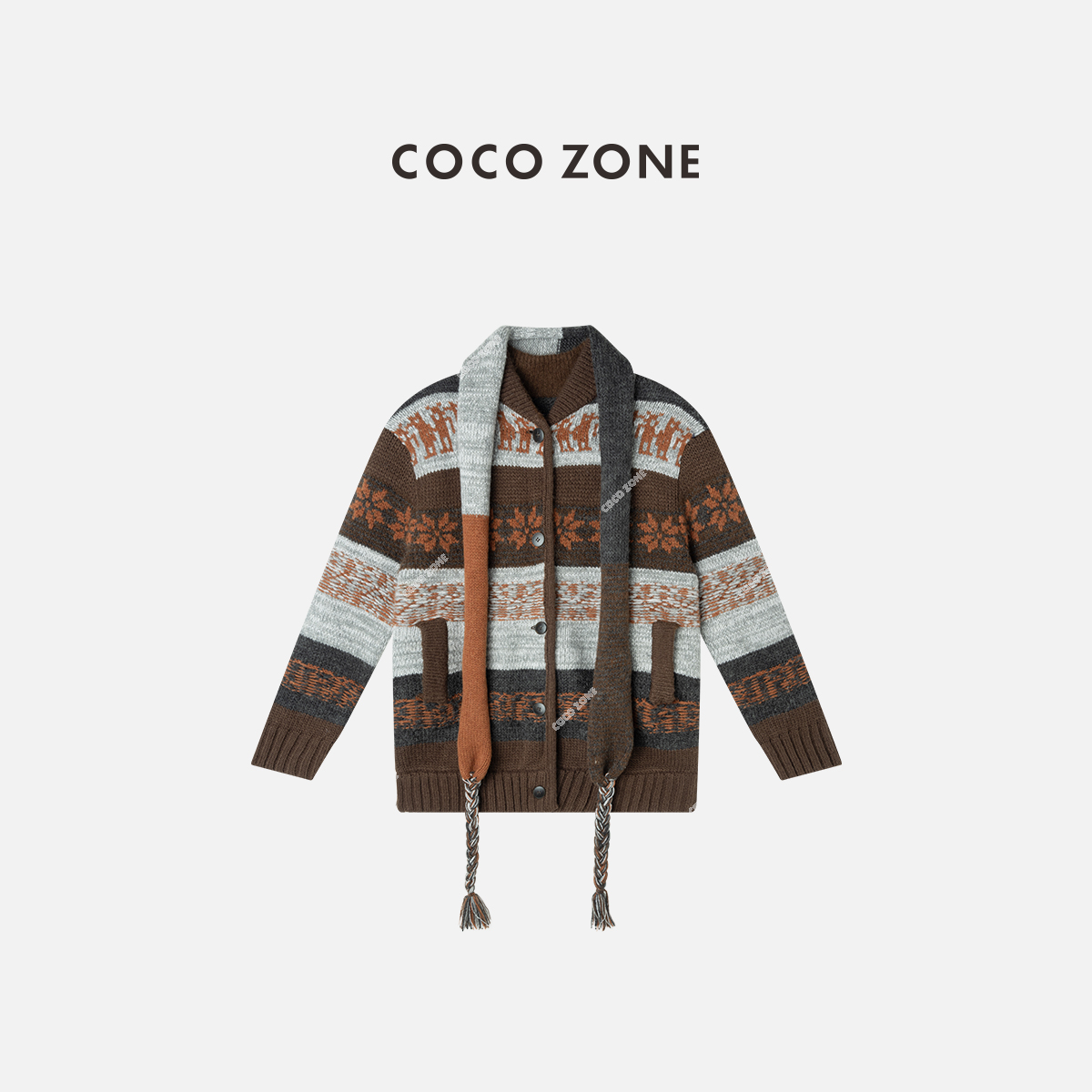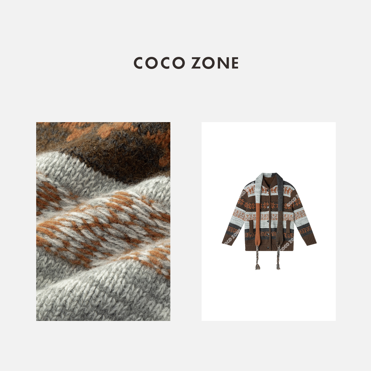 COCO ZONE 秋冬设计感拼色圆领单排扣针织开衫CC1D2510