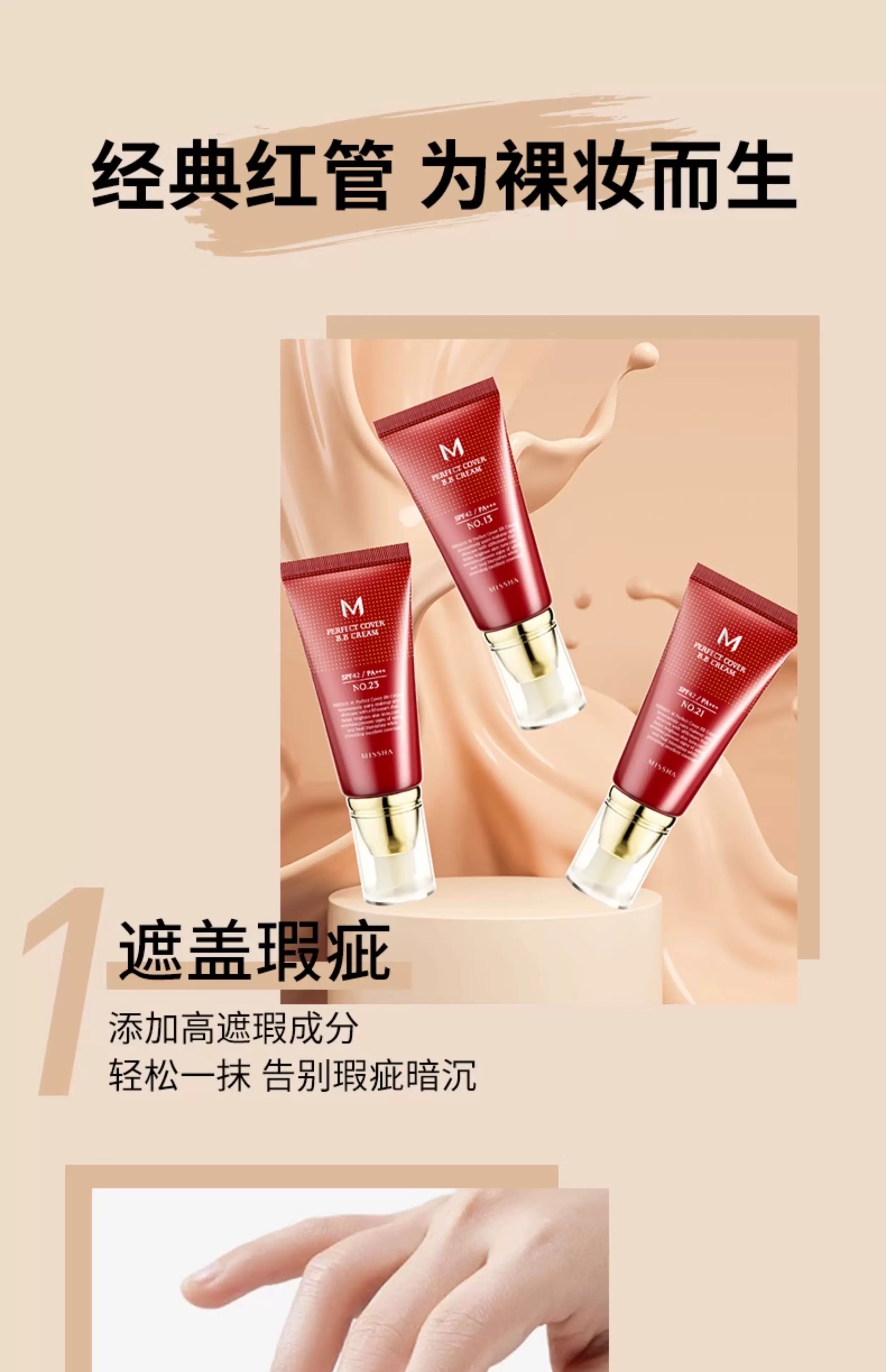迷尙大红BB遮瑕保湿持久不易脱妆防晒养肤粉底液 经典21号
