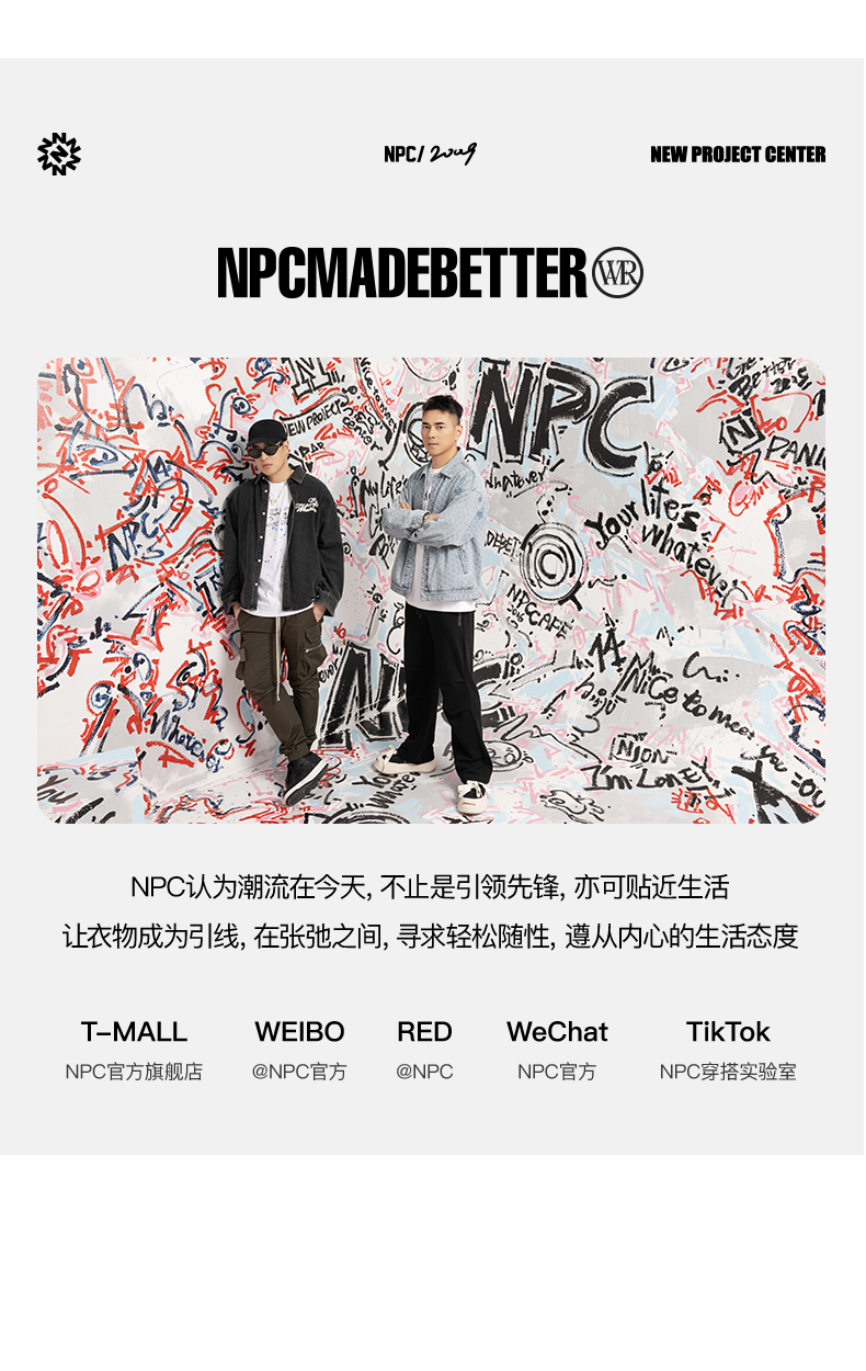 NPC潮牌100%棉水洗廓形立领牛仔夹克外套男潮流休闲秋冬NP47DC52