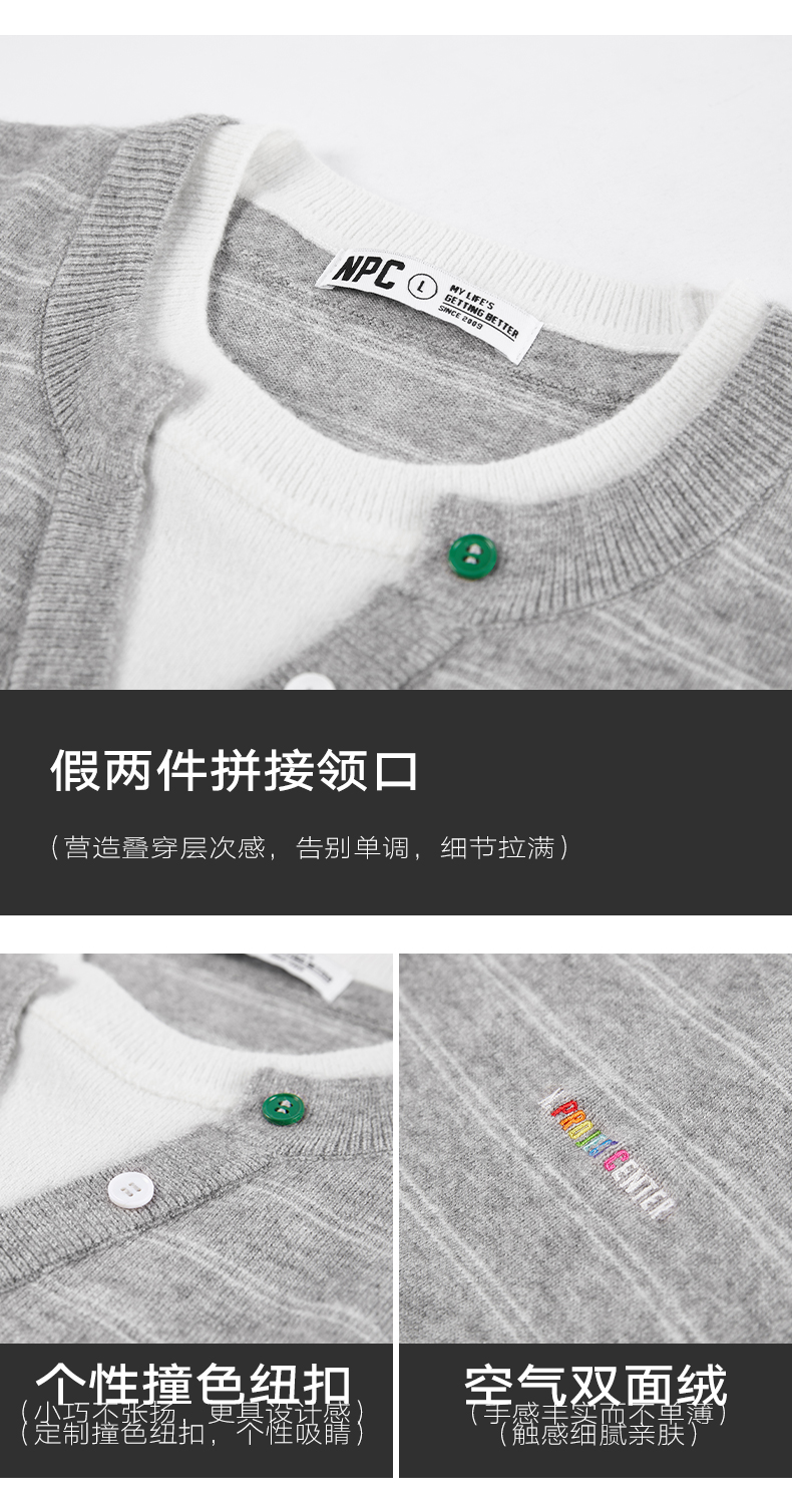 NPC潮牌环保纱线开衫立领毛衣柔软情侣撞色秋冬休闲上衣NP38SW37
