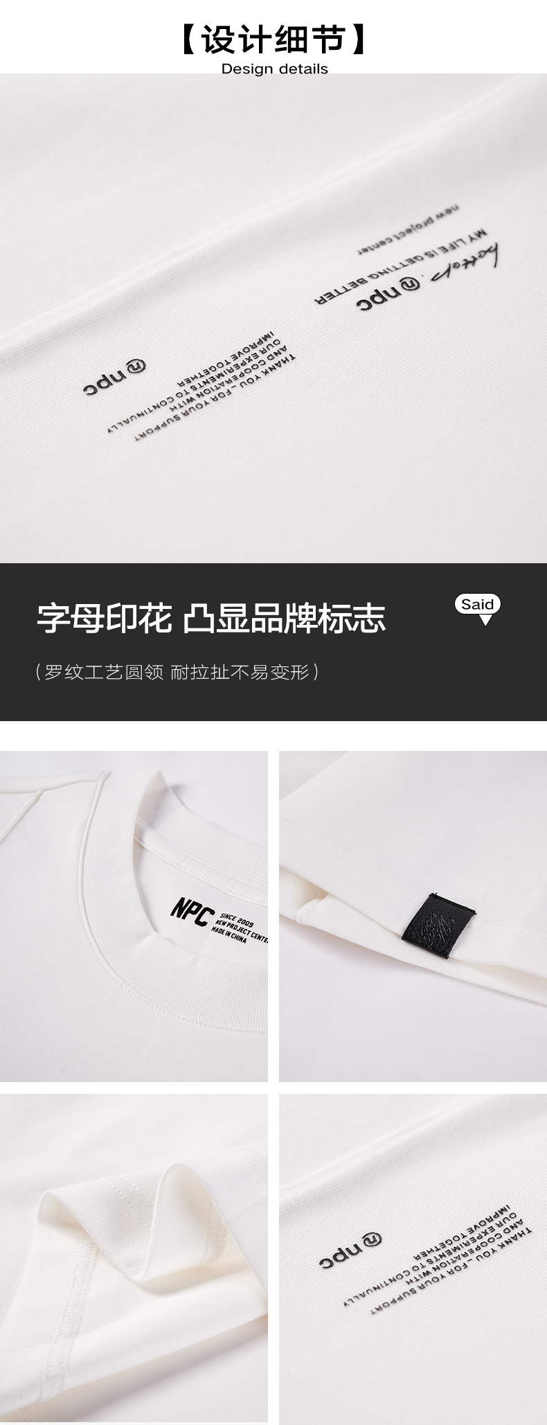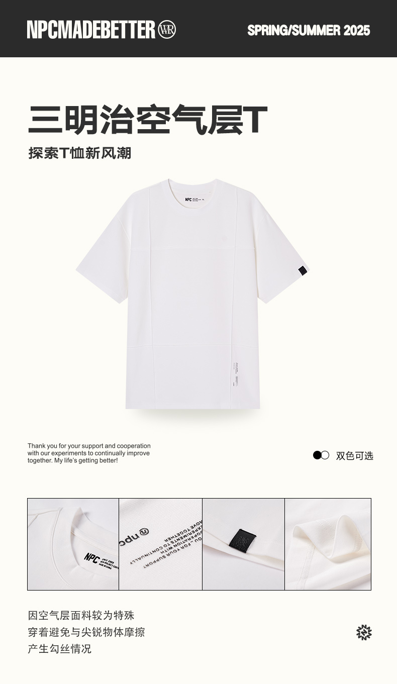 NPC潮牌字母印花空气层基础短袖T恤男立体剪裁宽松舒适NP55TE57