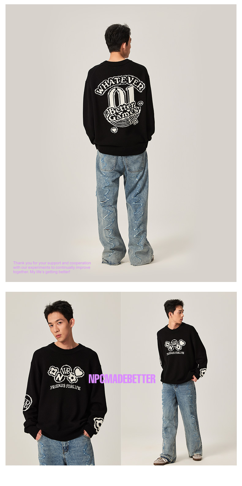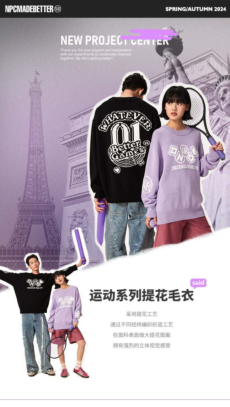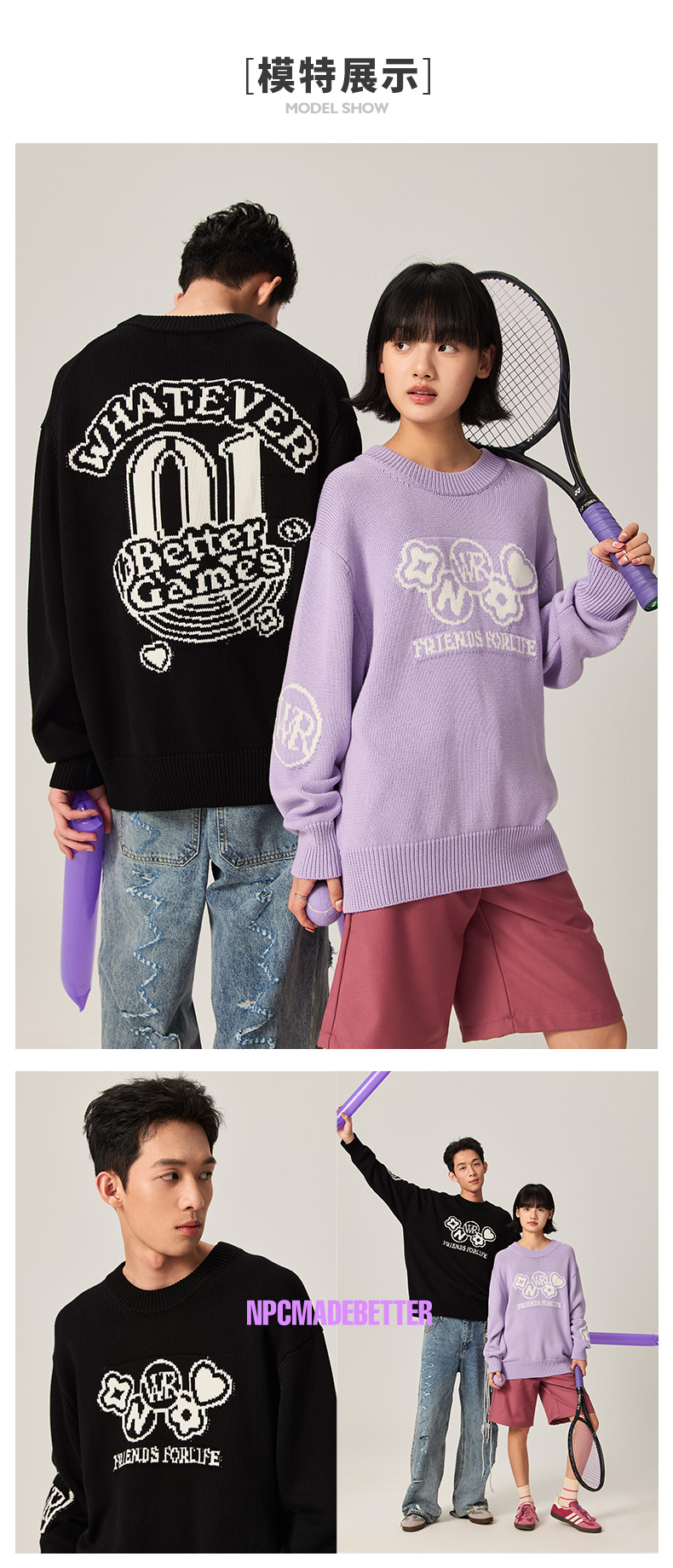 NPC潮牌运动系列爱心跑道01号码牌【优莱特】提花毛衣男NP47SW04