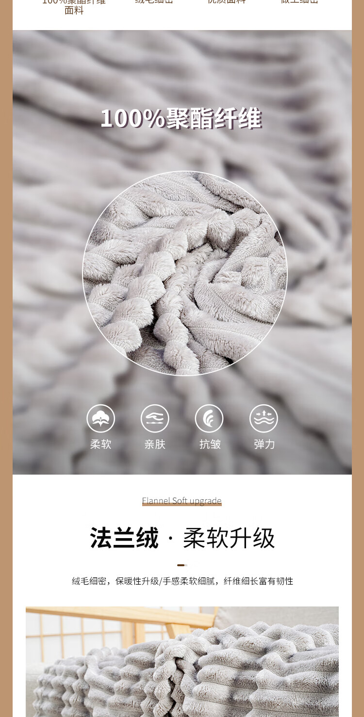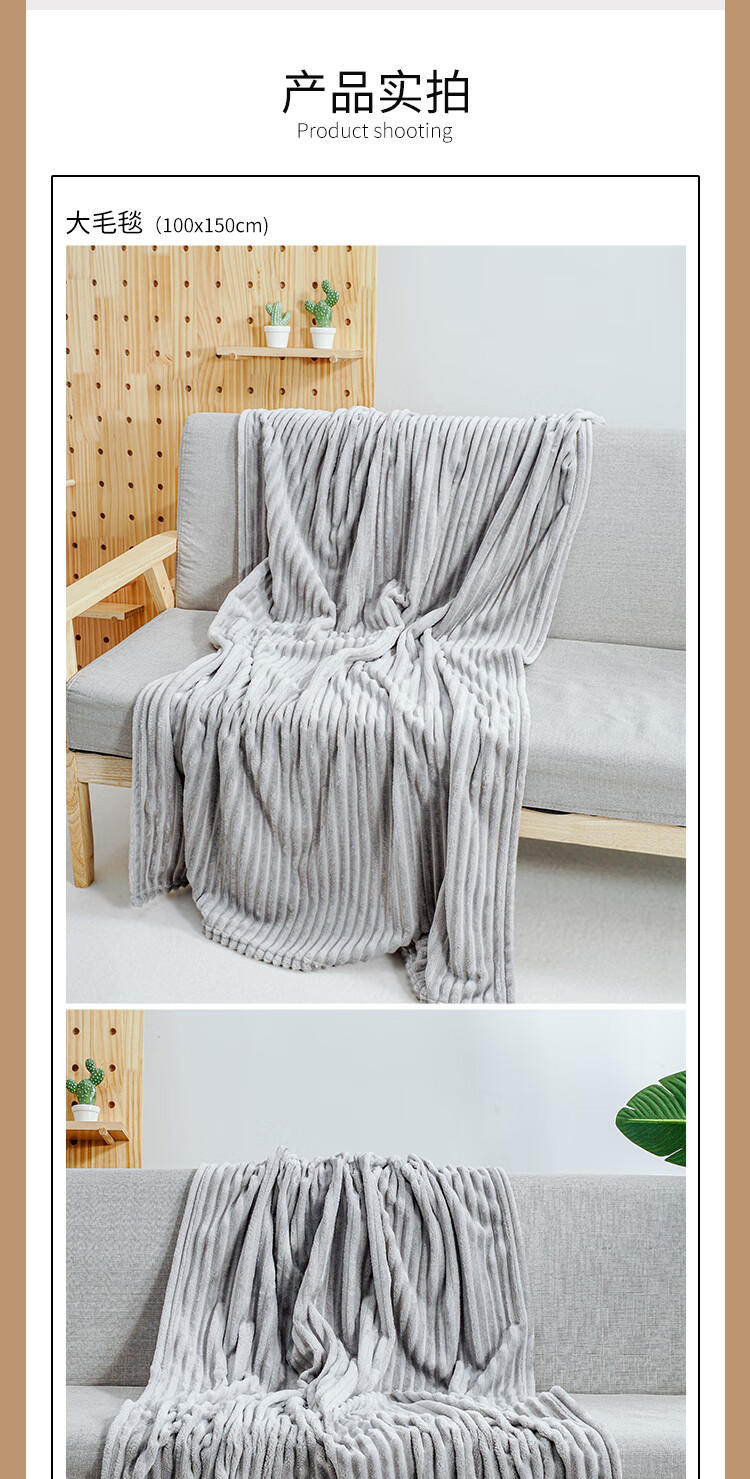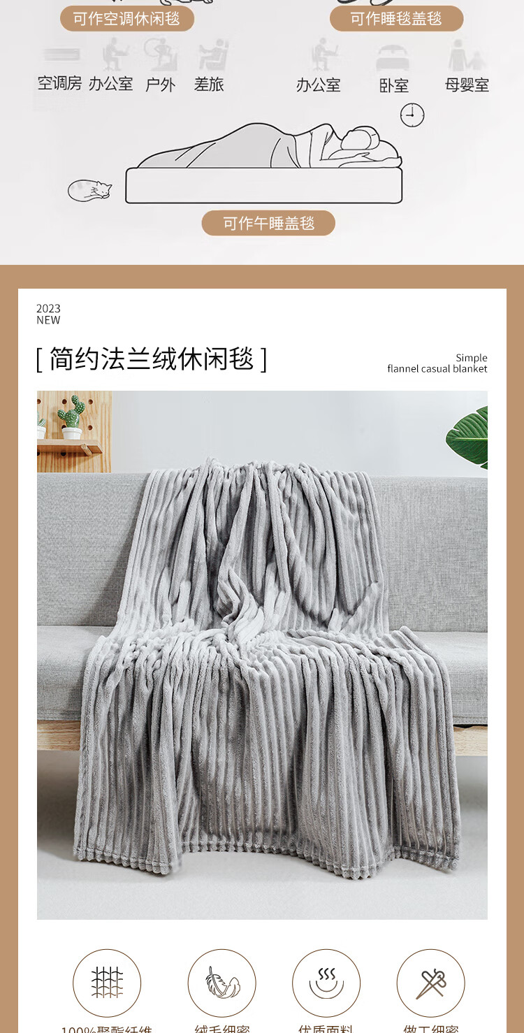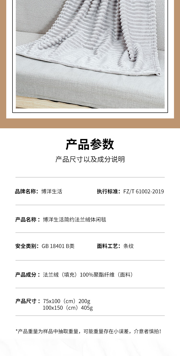 博洋生活 简约法兰绒休闲毯100*150cm/450g