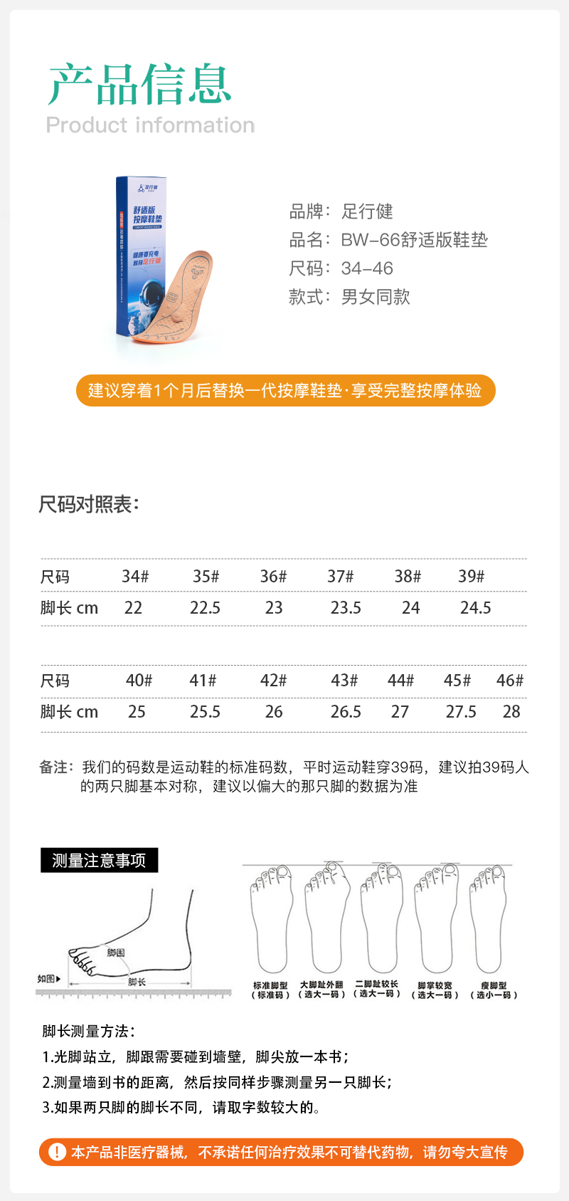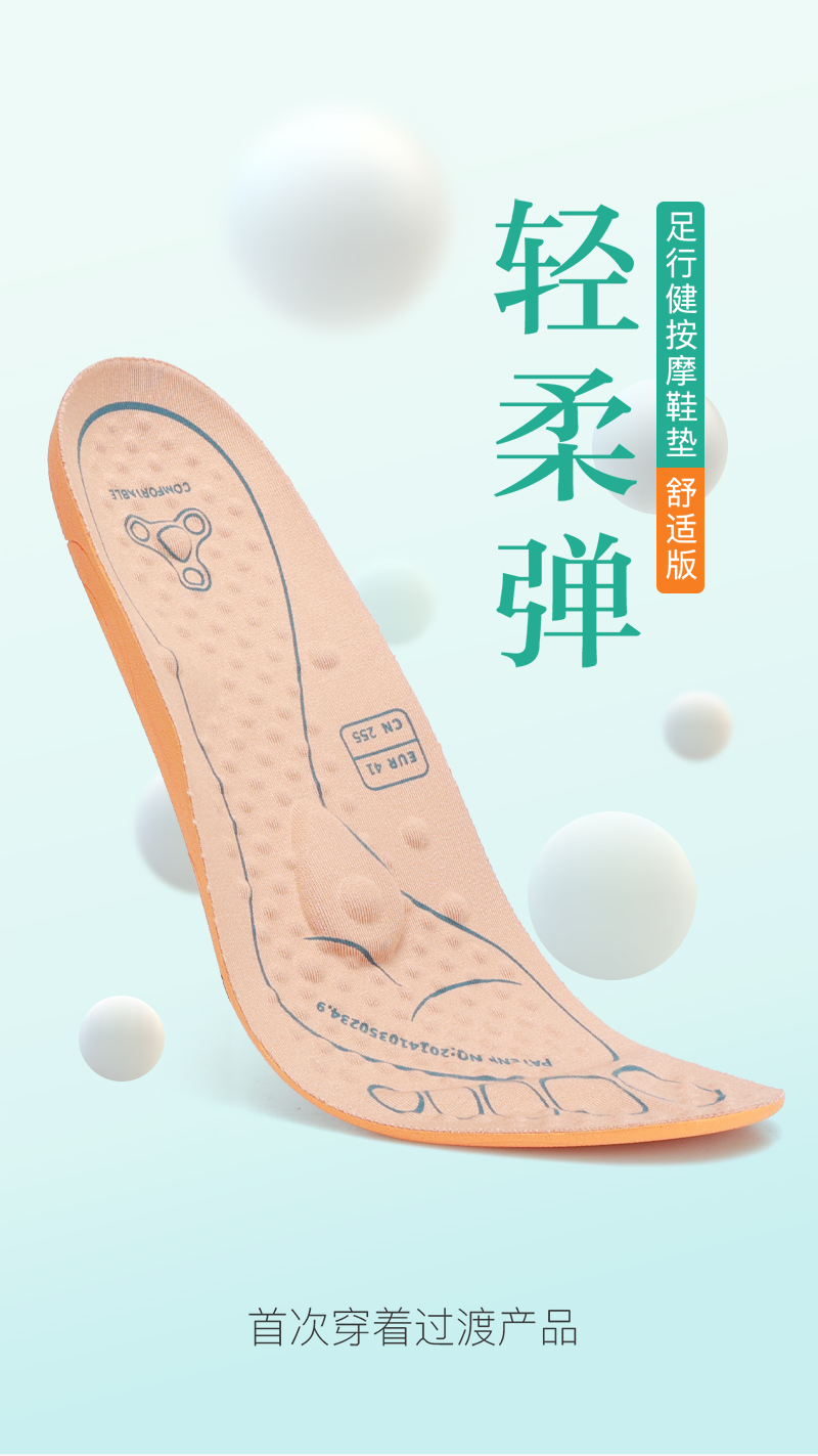足行健舒适版鞋垫-扁平足穴位按摩吸汗透气抗菌防臭男女款