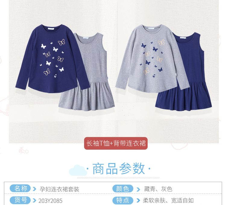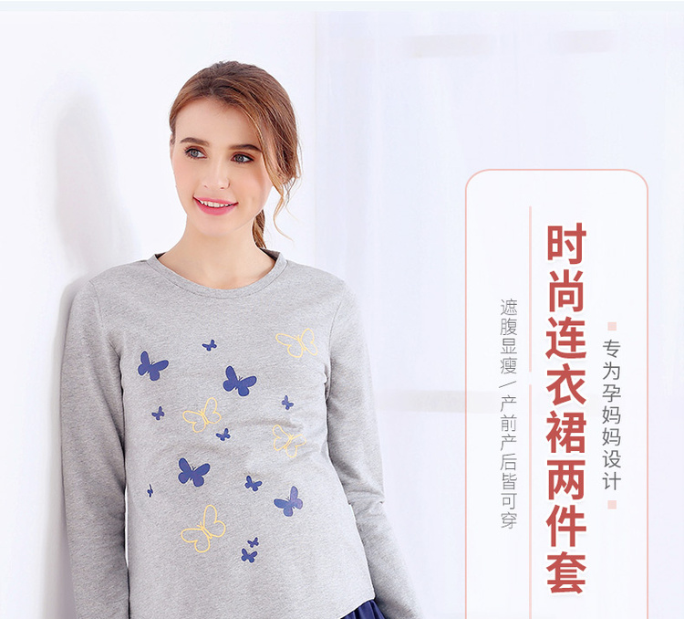 贝贝怡孕妇装春秋新款连衣裙长袖韩版裙装潮妈洋气2件装套装