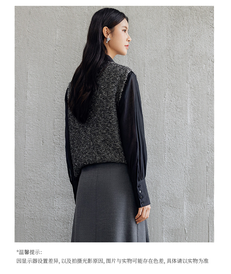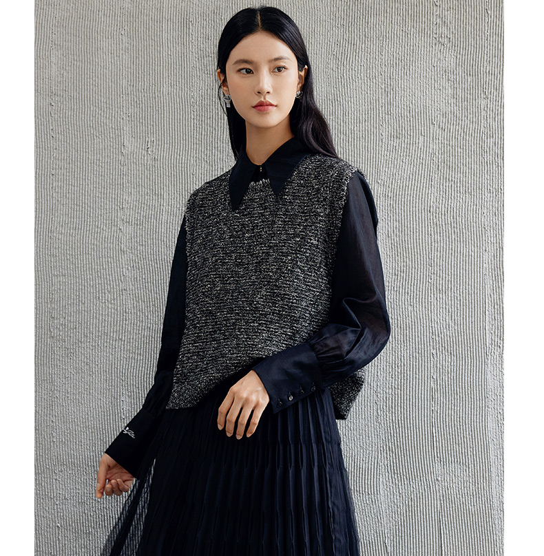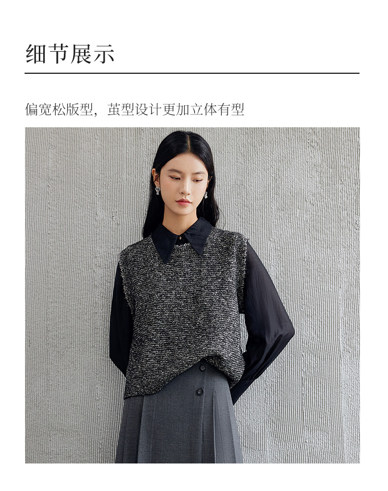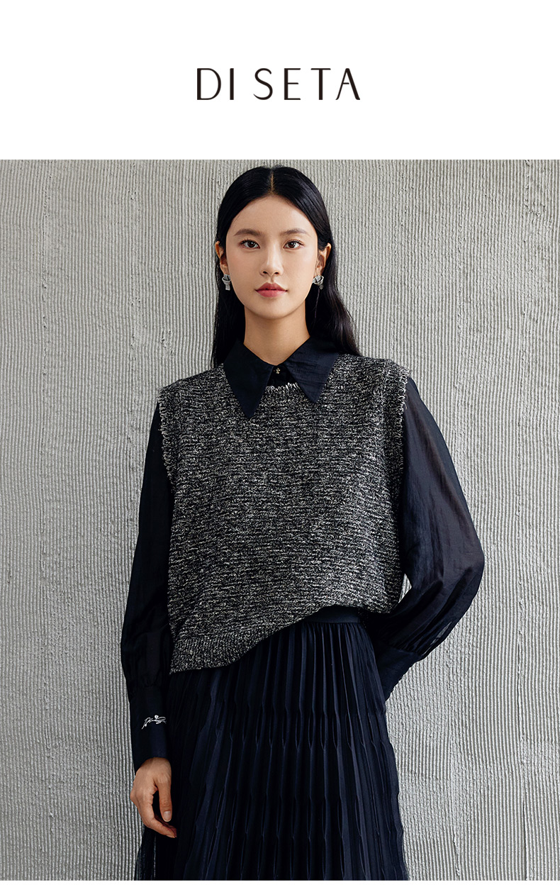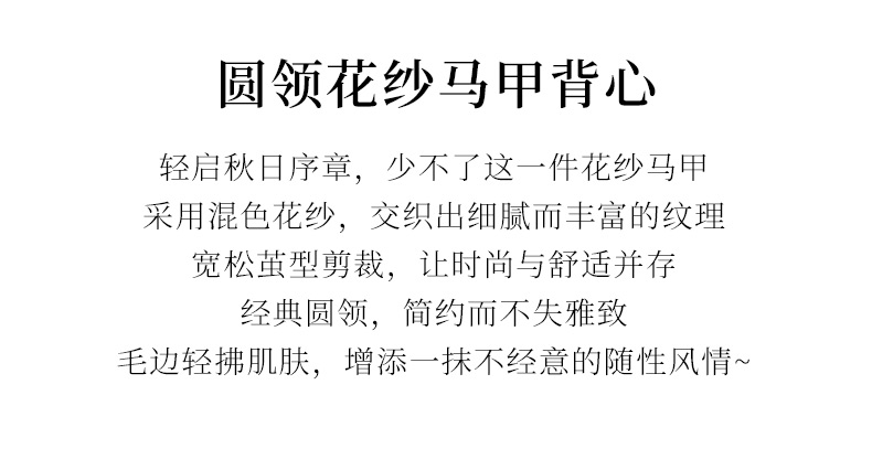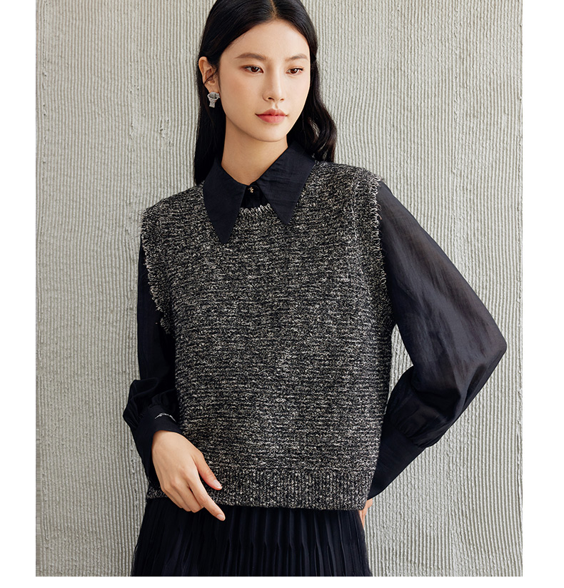 玳莎无袖圆领针织背心女2024年秋季新款毛边高级感设计感外搭上衣 EC33001