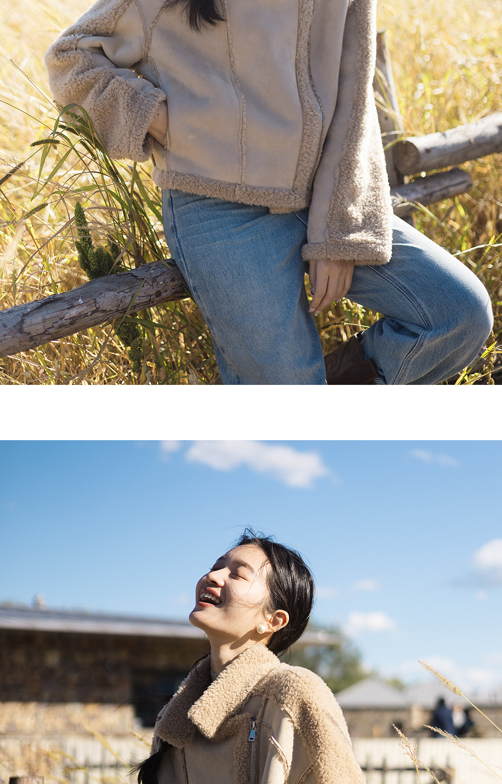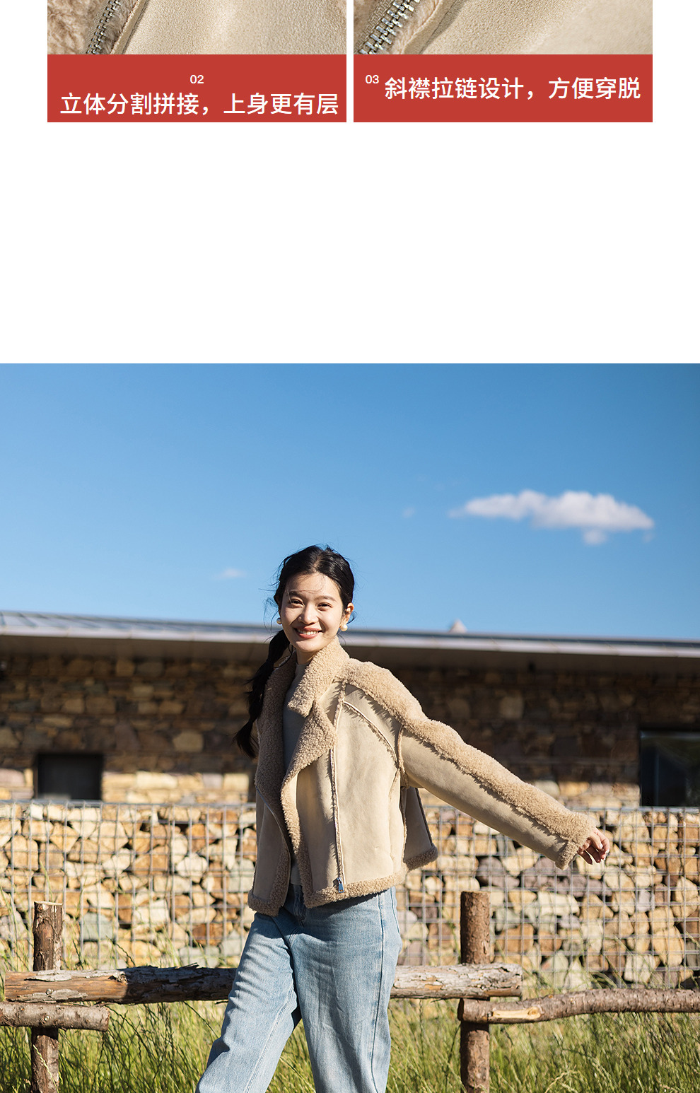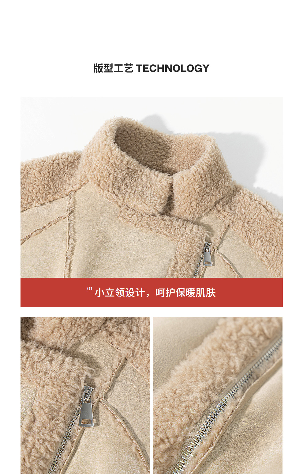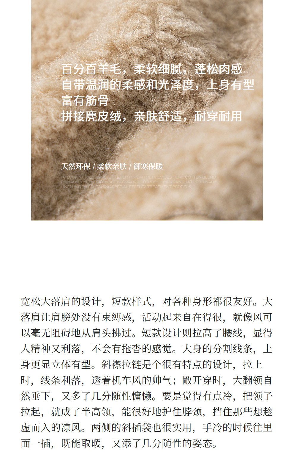 绽放691朵/羊羔毛麂皮绒拼接拉链落气质肩袖立领短外套女秋冬新款