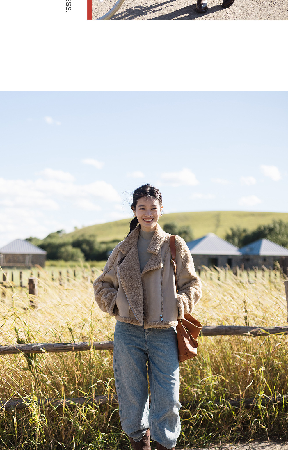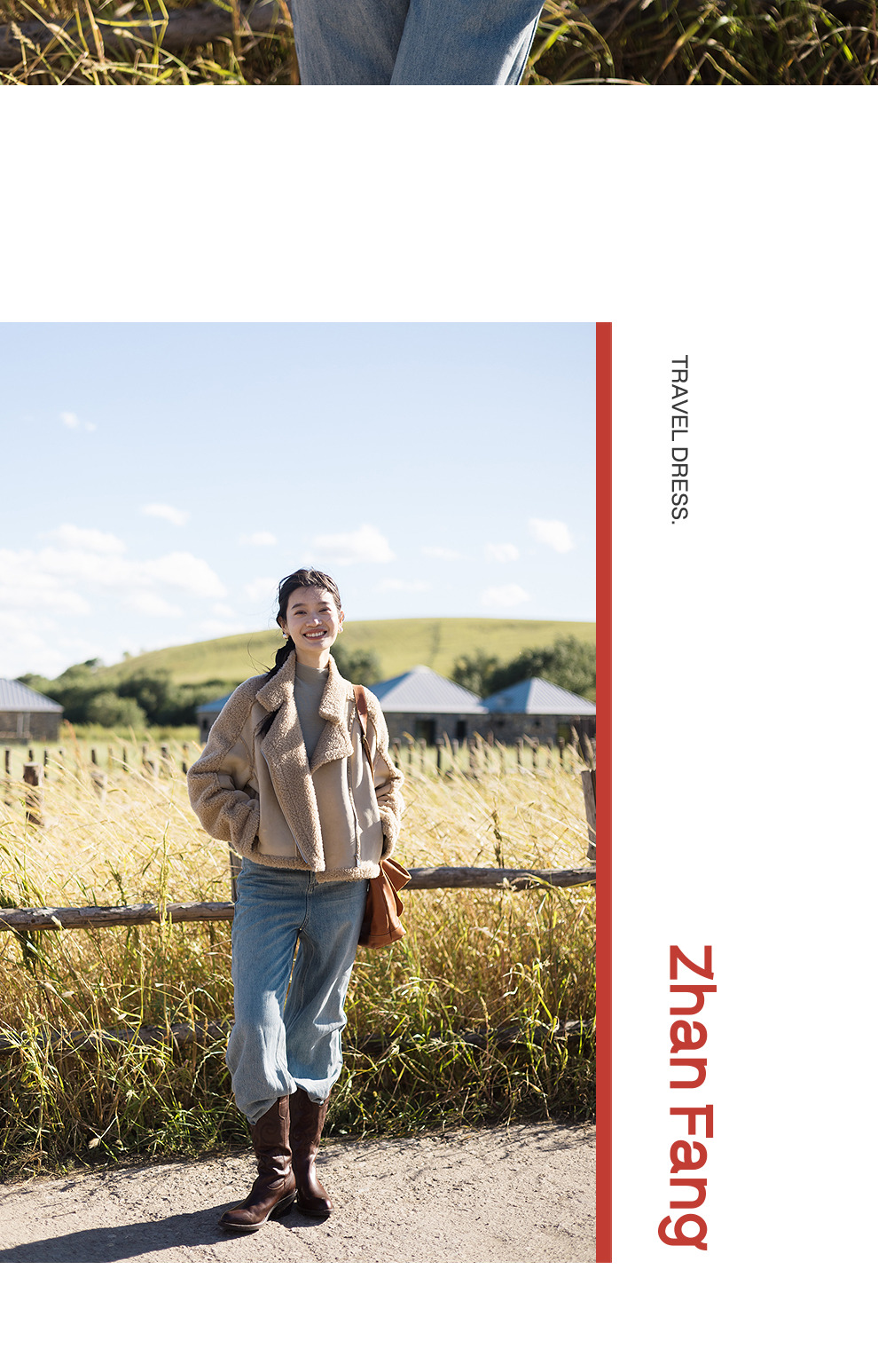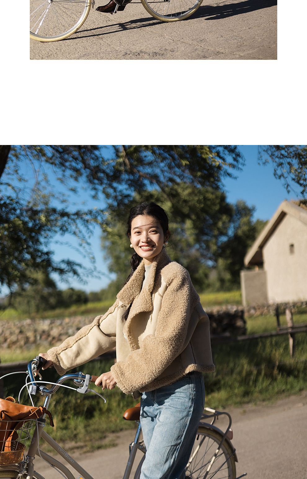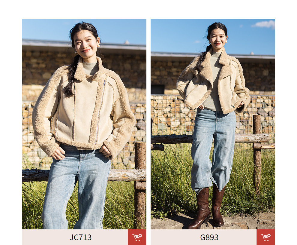 绽放691朵/羊羔毛麂皮绒拼接拉链落气质肩袖立领短外套女秋冬新款