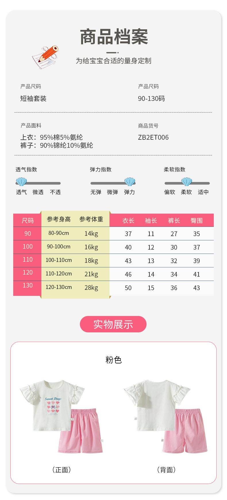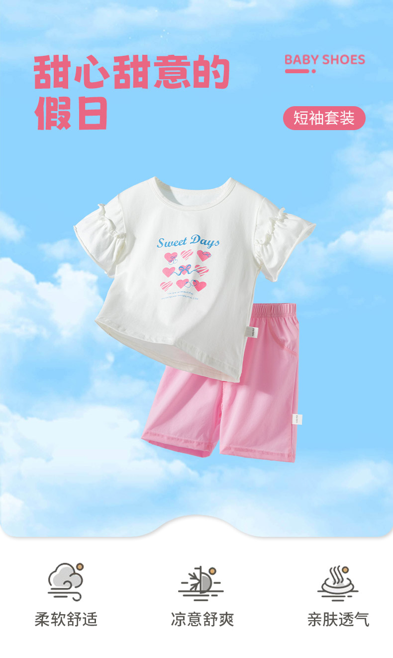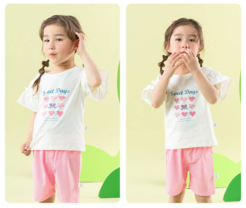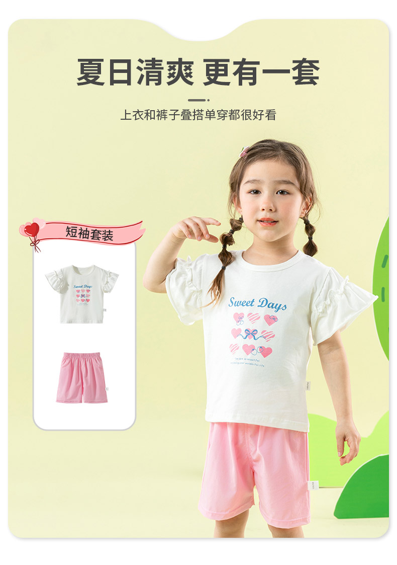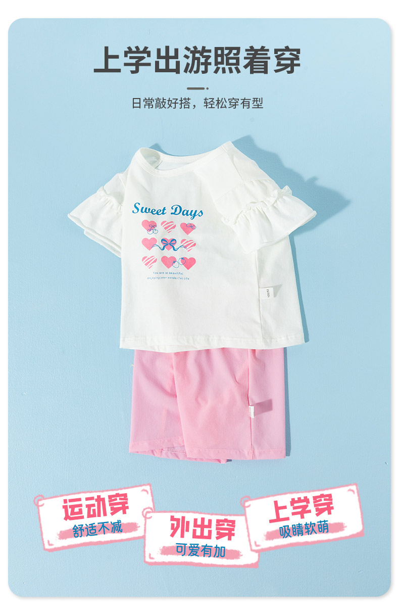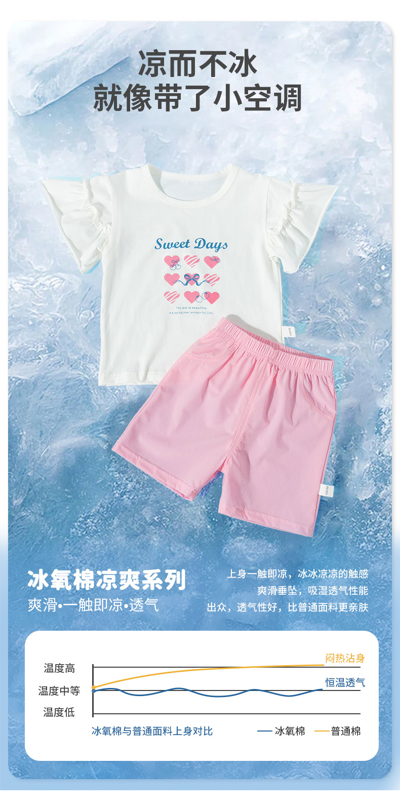 ZB2ET006贝贝怡【小飞袖凉感套装】夏季新款女童冰感短袖T恤宽松透气短裤两件套