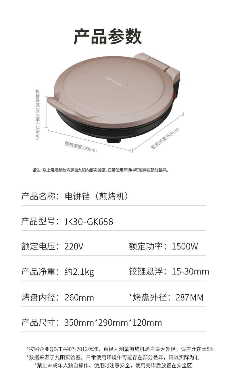 Joyoung/九阳30GK658A电饼铛家用多功能双面悬浮加热煎烤机加深烤盘烙饼锅
