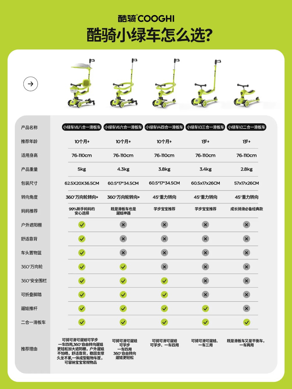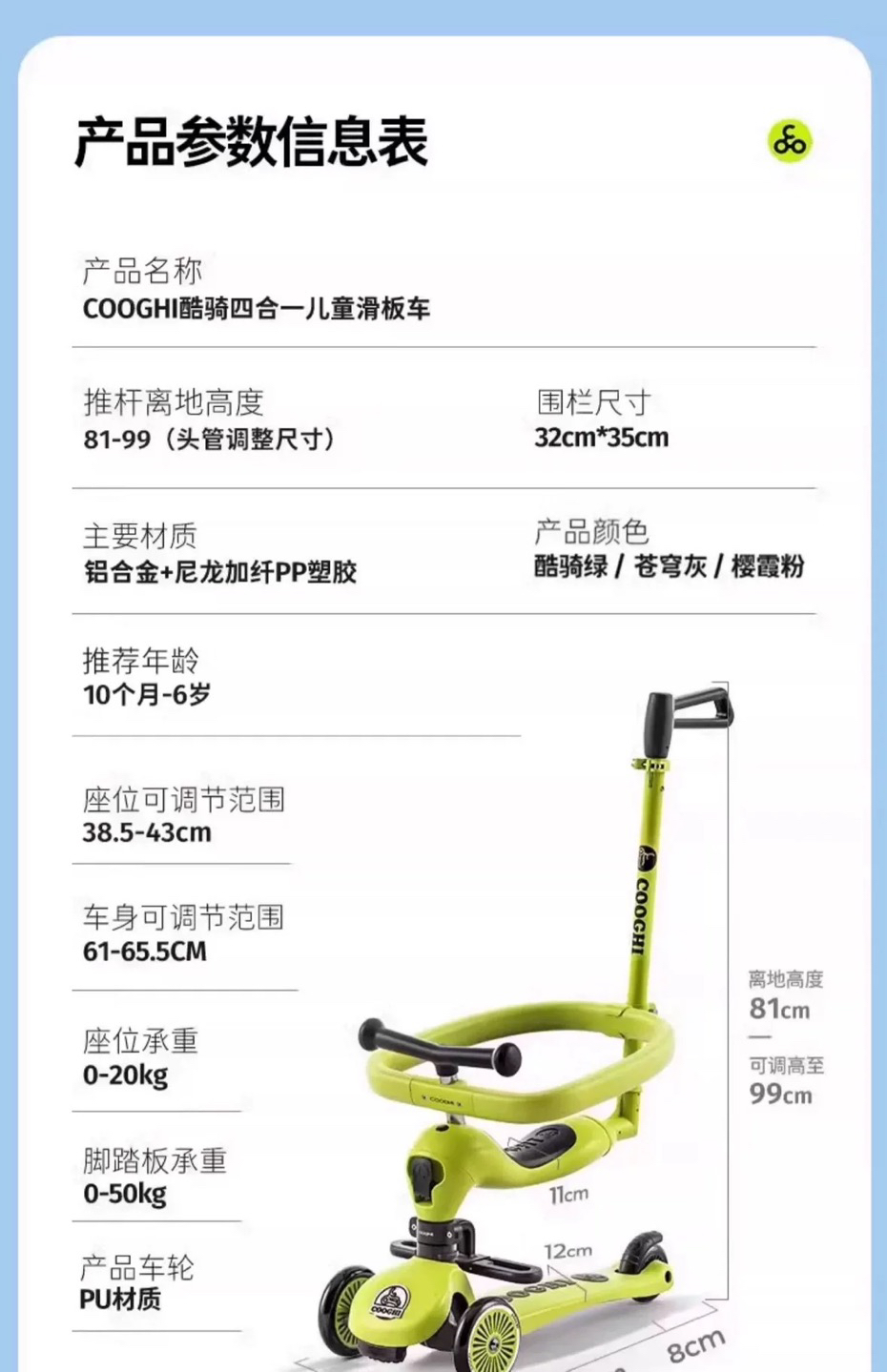 【品牌方直发】英国Cooghi酷骑V2/V4高端平衡车/滑板车/遛娃神器 可调节高度 一物三用