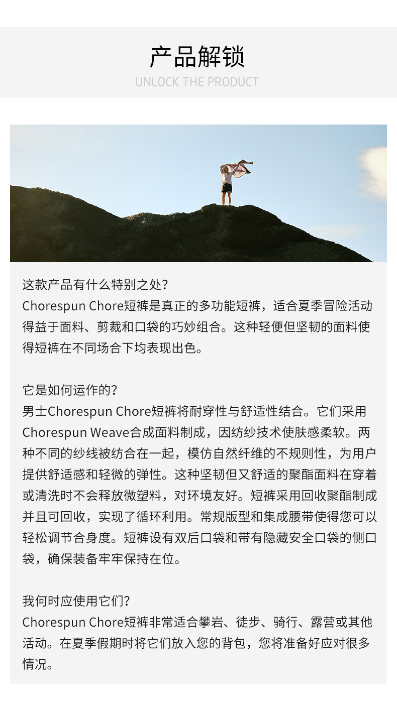 HOUDINI胡丁尼Corespun Chore考丝邦26户外男夏新徒步休闲短裤 860065