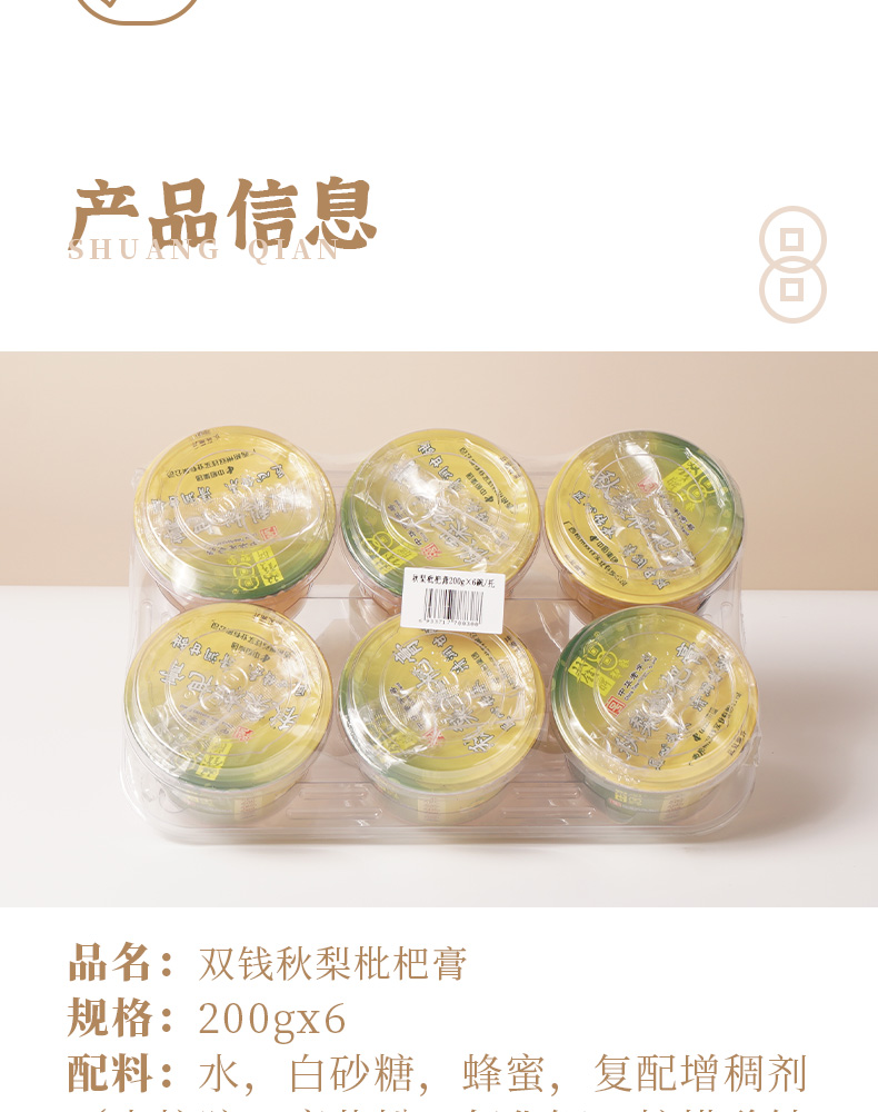双钱 秋梨枇杷膏200g*6碗