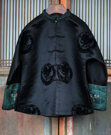盛唐牡丹| 真丝漳缎手绣对襟外套