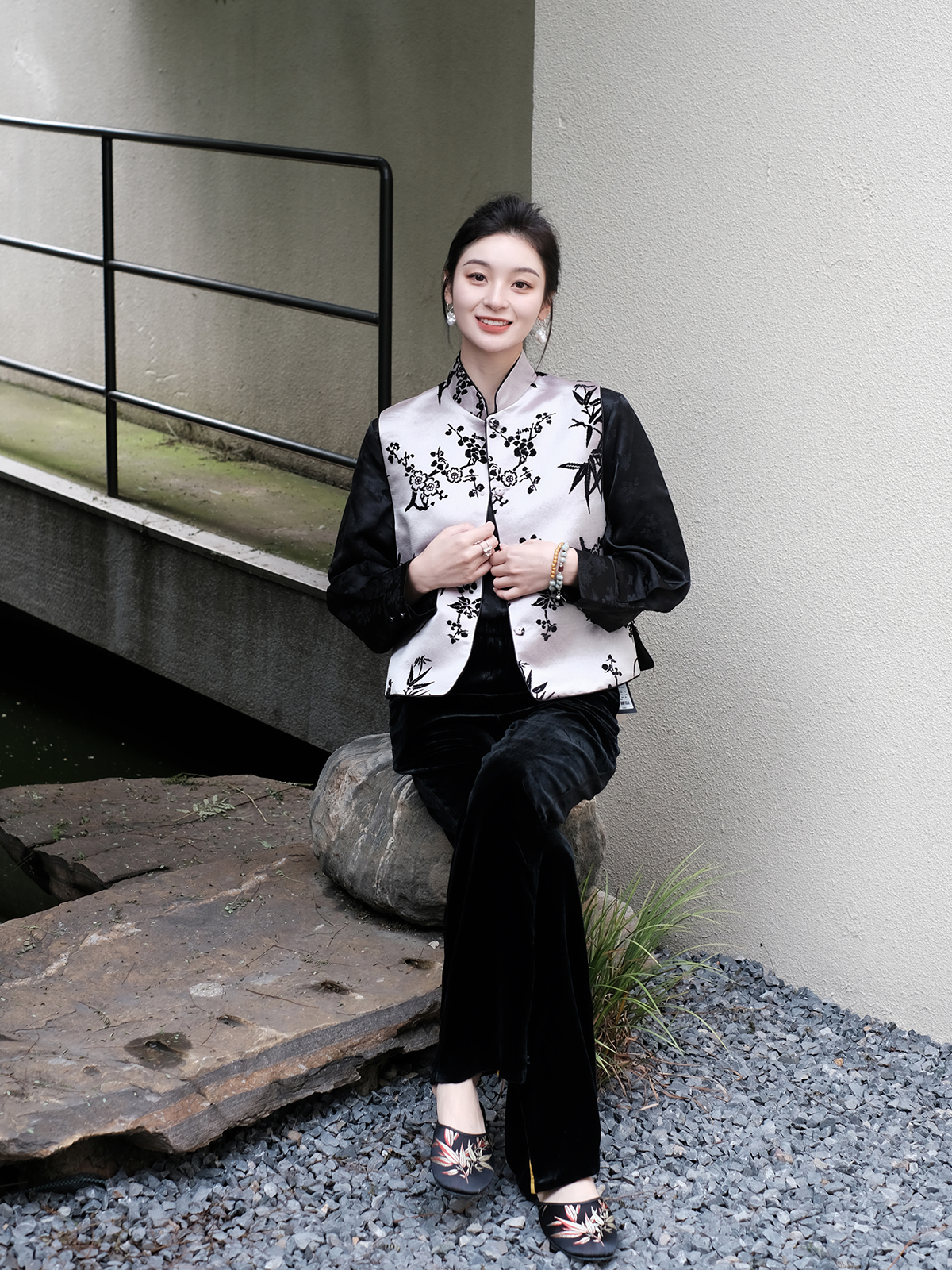 盛唐牡丹| 胭脂雪真丝漳绒对襟马甲