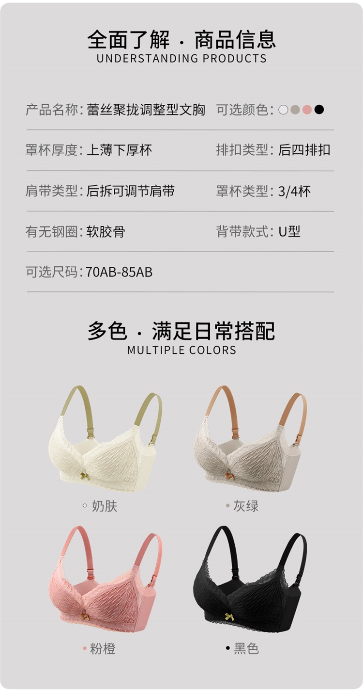 雅黛丽内衣小胸聚拢显胸大文胸软钢圈性感美背收副乳放下垂胸罩女