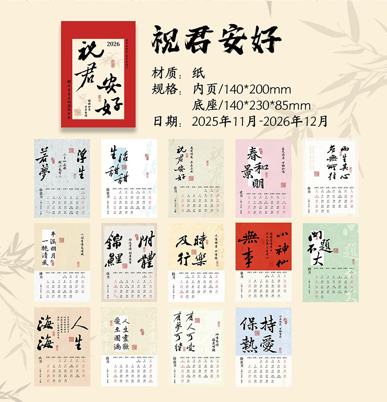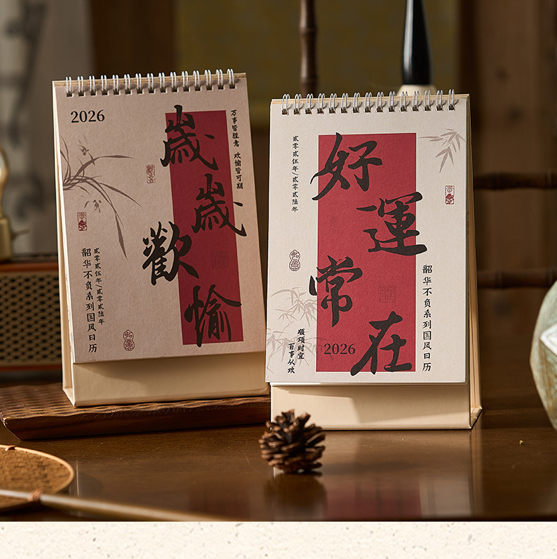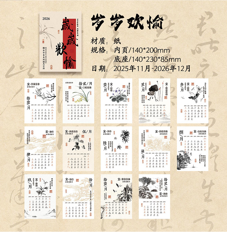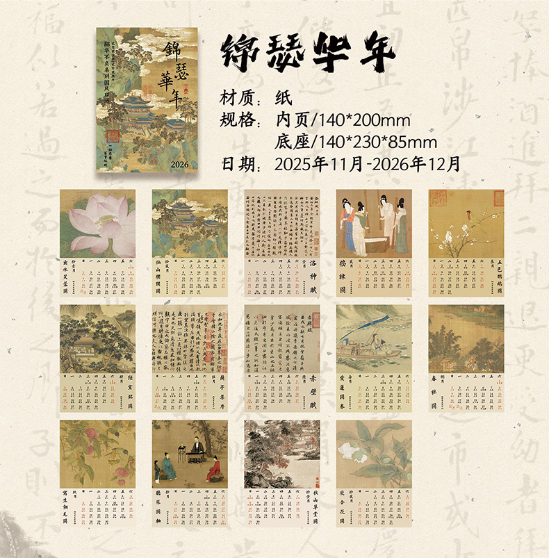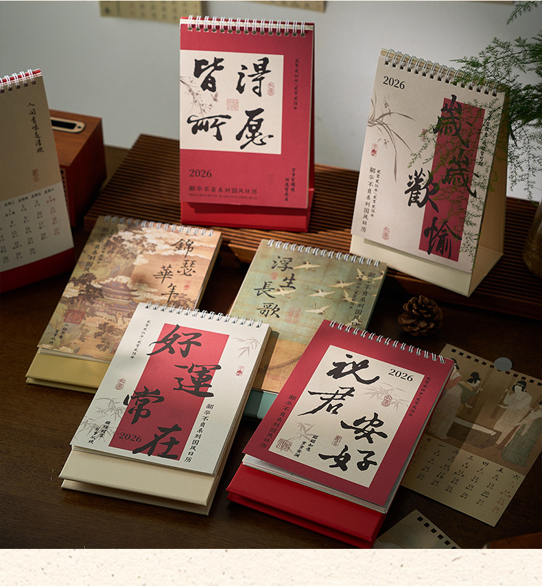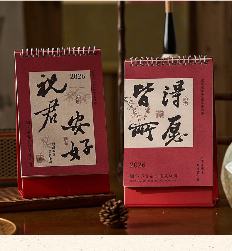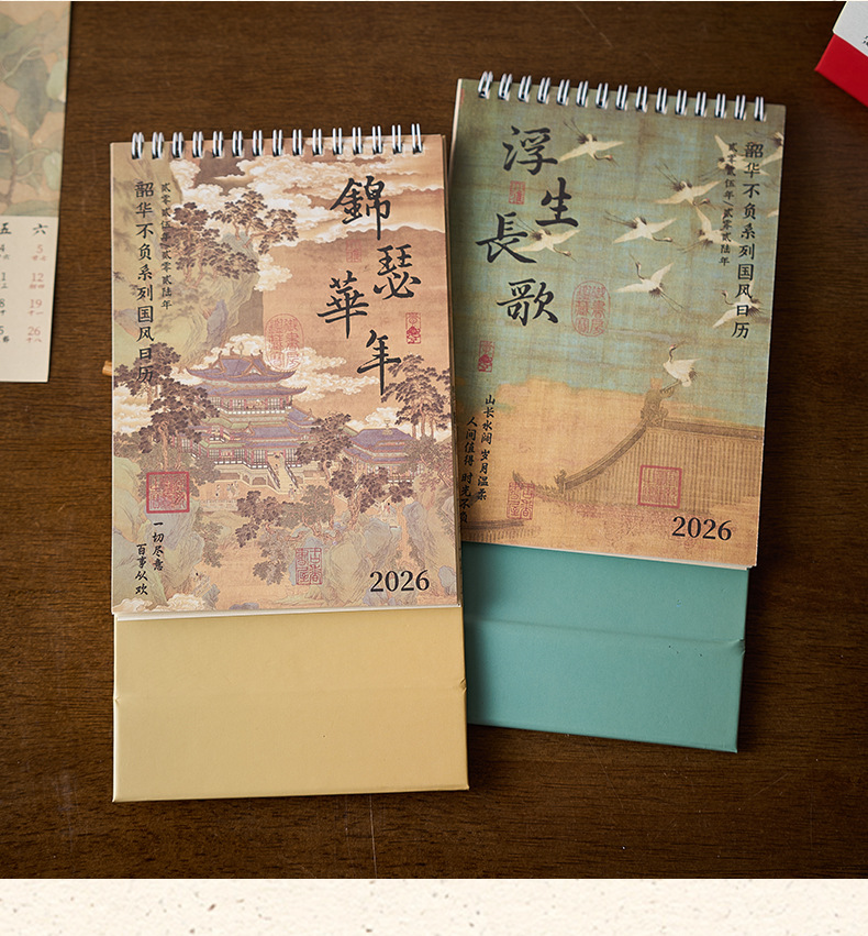 【韶华不负系列❗️2026款国风日历】诗意东方美,古典淡雅,早沫白牛皮纸,随意折叠,站力稳固,中式复古计划本桌面摆件台历QQ2026马年新年款