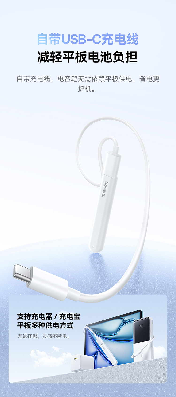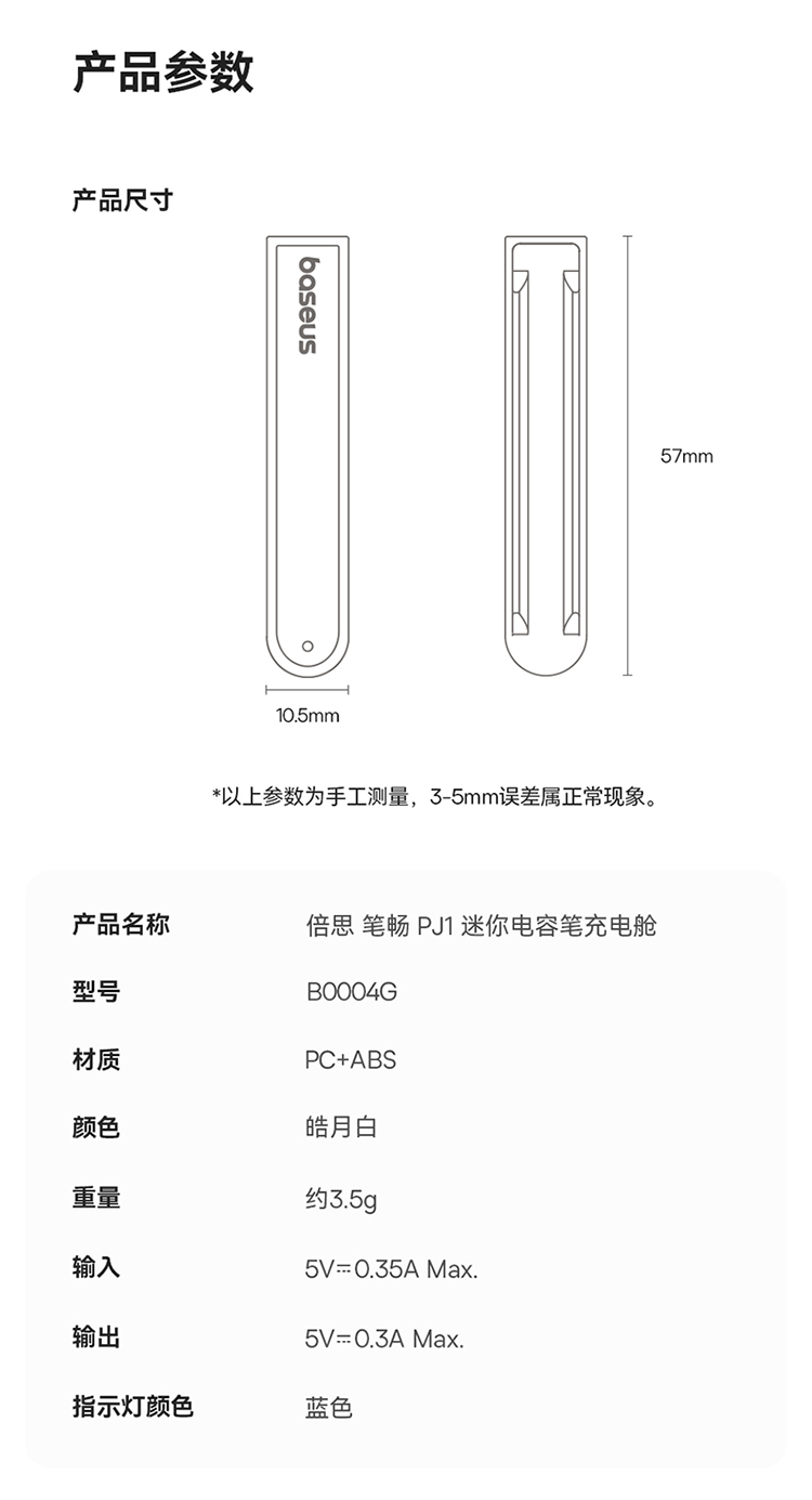 倍思 笔畅 PJ1 迷你电容笔充电舱 皓月白