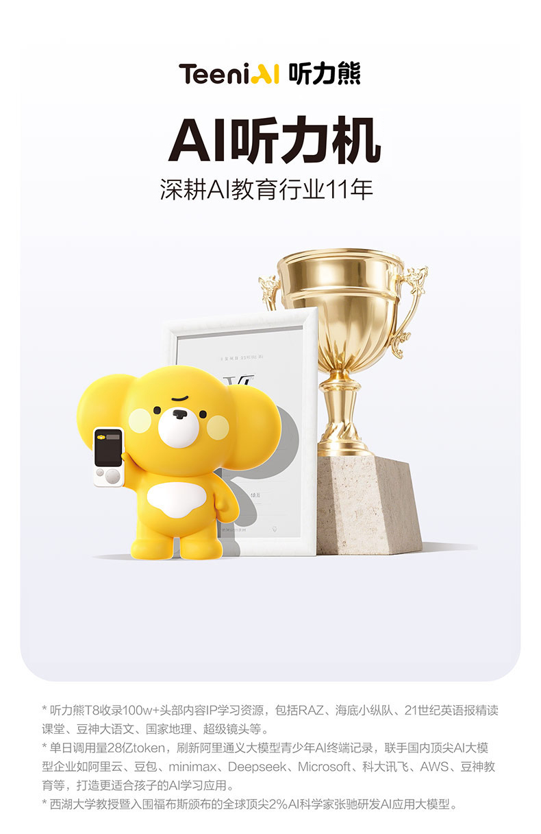 低于618国补【不伤眼磨耳 免费百万资源】听力熊AI随身听力机T8学习机礼盒英语复读机【0-16岁】紧贴新课标 可投屏可拍照