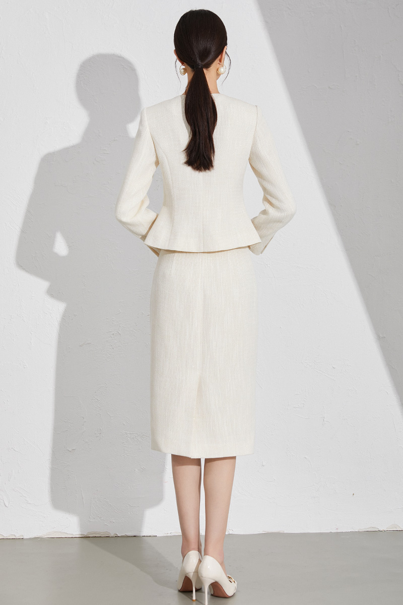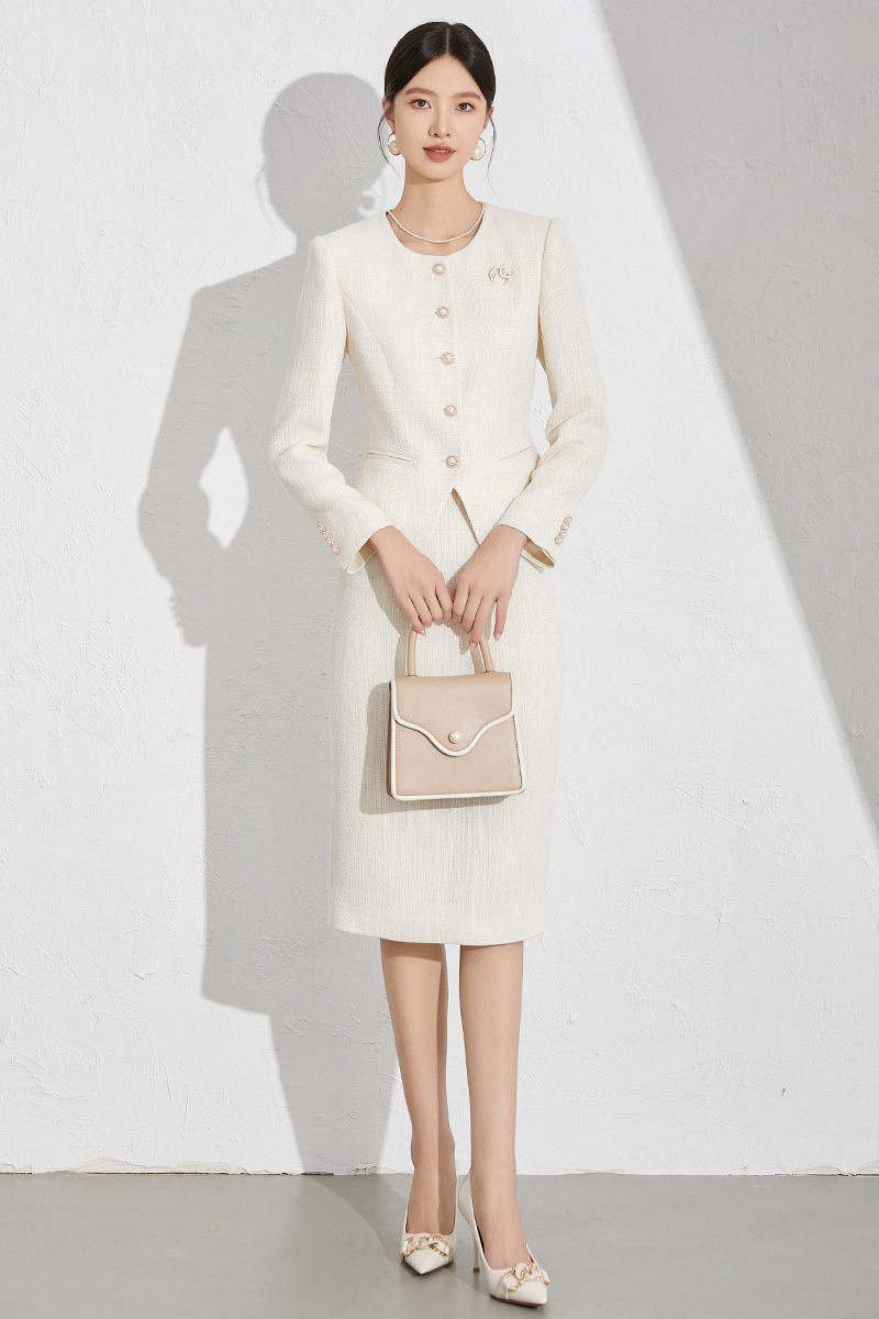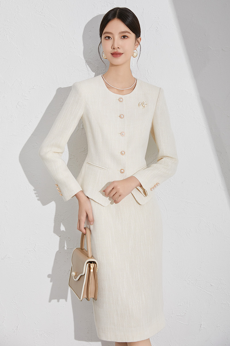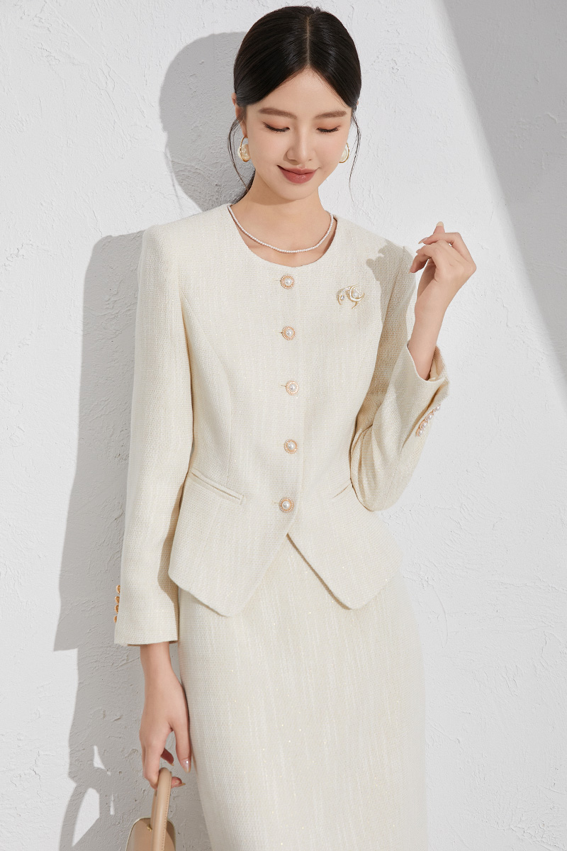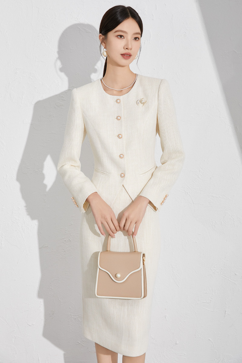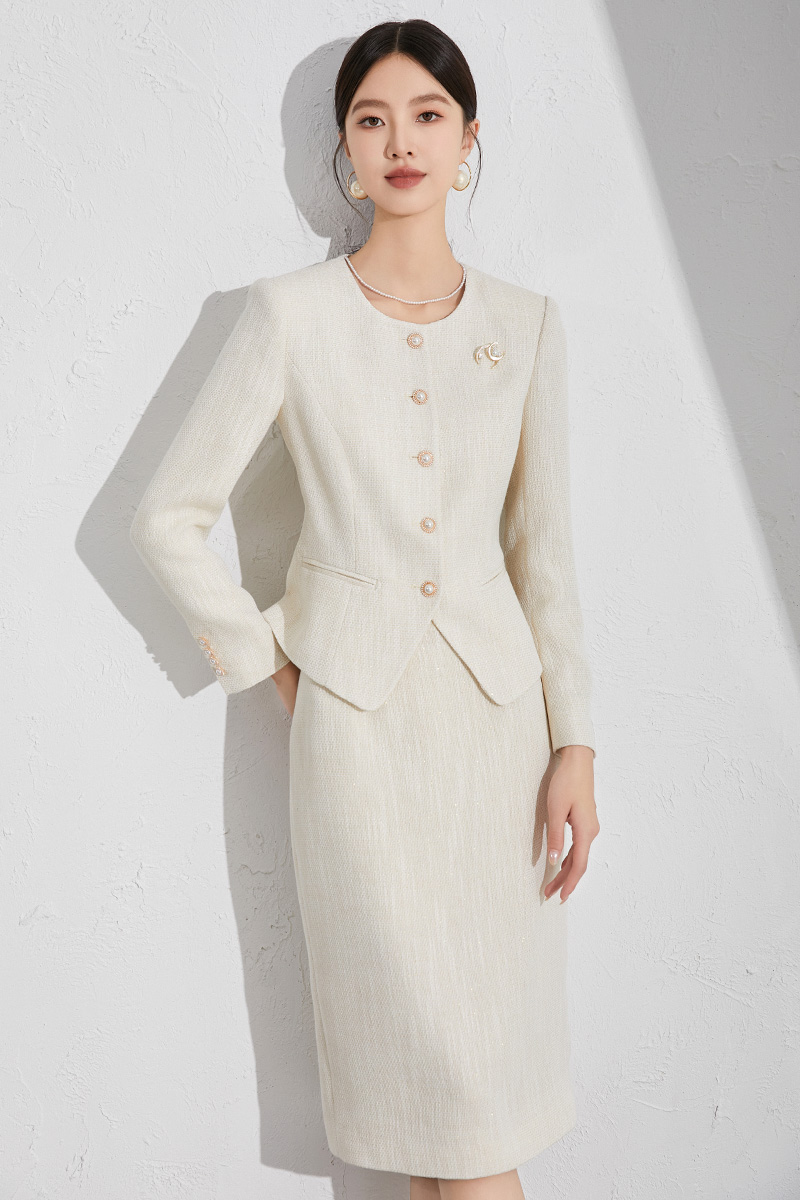 艾尚臣米色小香风套装洋气减龄秋季新款女装收腰显瘦职场两件套裙