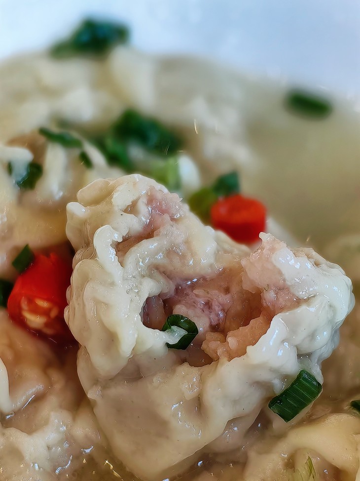 每盒抄手30颗,冷冻保存可以放6个月,大家可以放心囤囤!吃法也简单。大火将水烧得翻滚跳珠,下入抄手时像放河灯般轻柔,转中火等汤面冒泡,加三次凉水醒一醒,煮上十分钟就好。掀开锅盖的瞬间,蛋脂香混着麦香直钻鼻腔。面皮透光,能隐约映出内里粉嫩的肉色,汤勺轻托不烂,筷尖提起不坠。咬上一口,皮滑嫩、馅弹润,鲜汁在舌尖炸开,浓郁却不腻口;再加两滴香油、撒几颗葱花,瞬间找回老时光里的至味清欢。