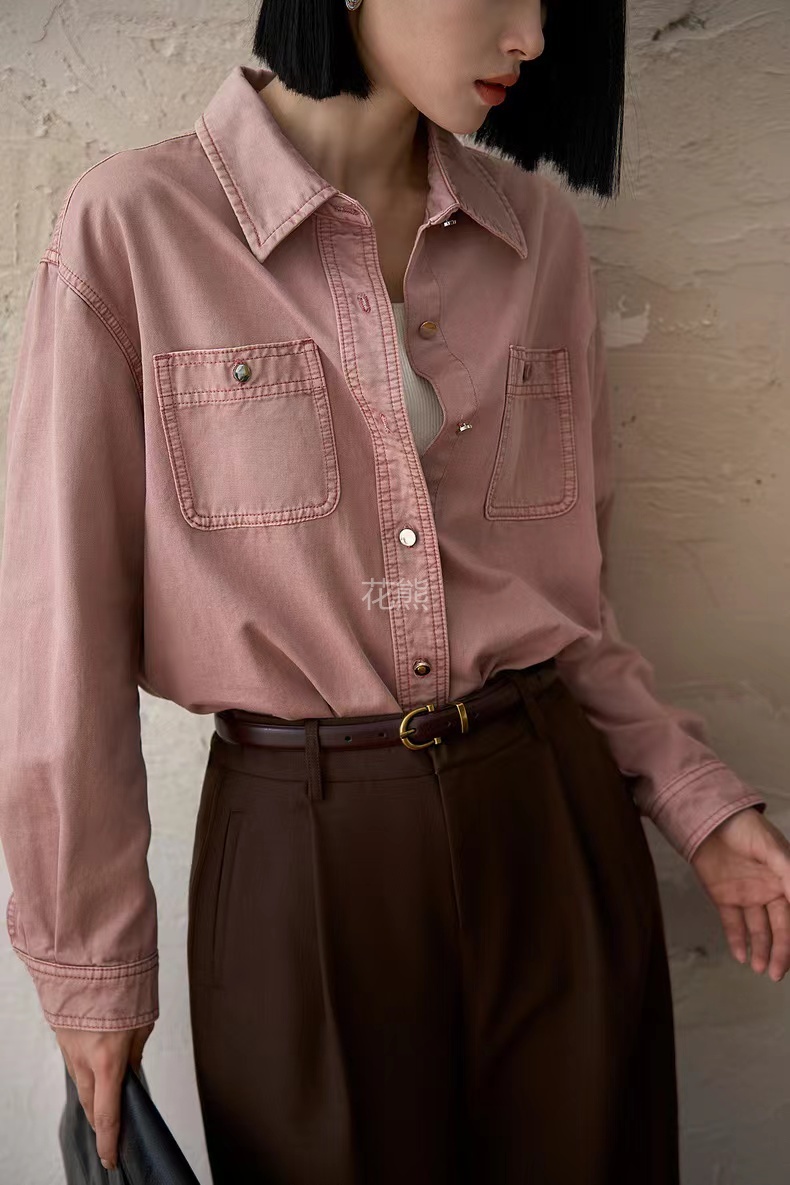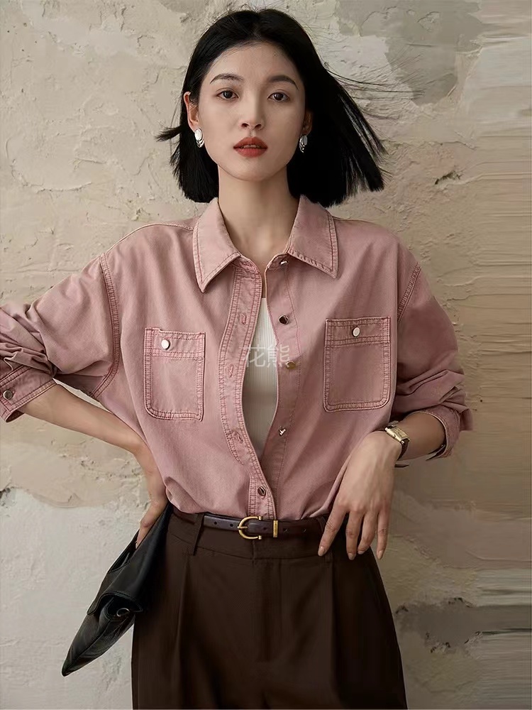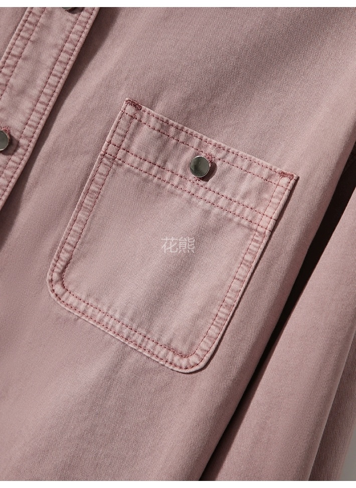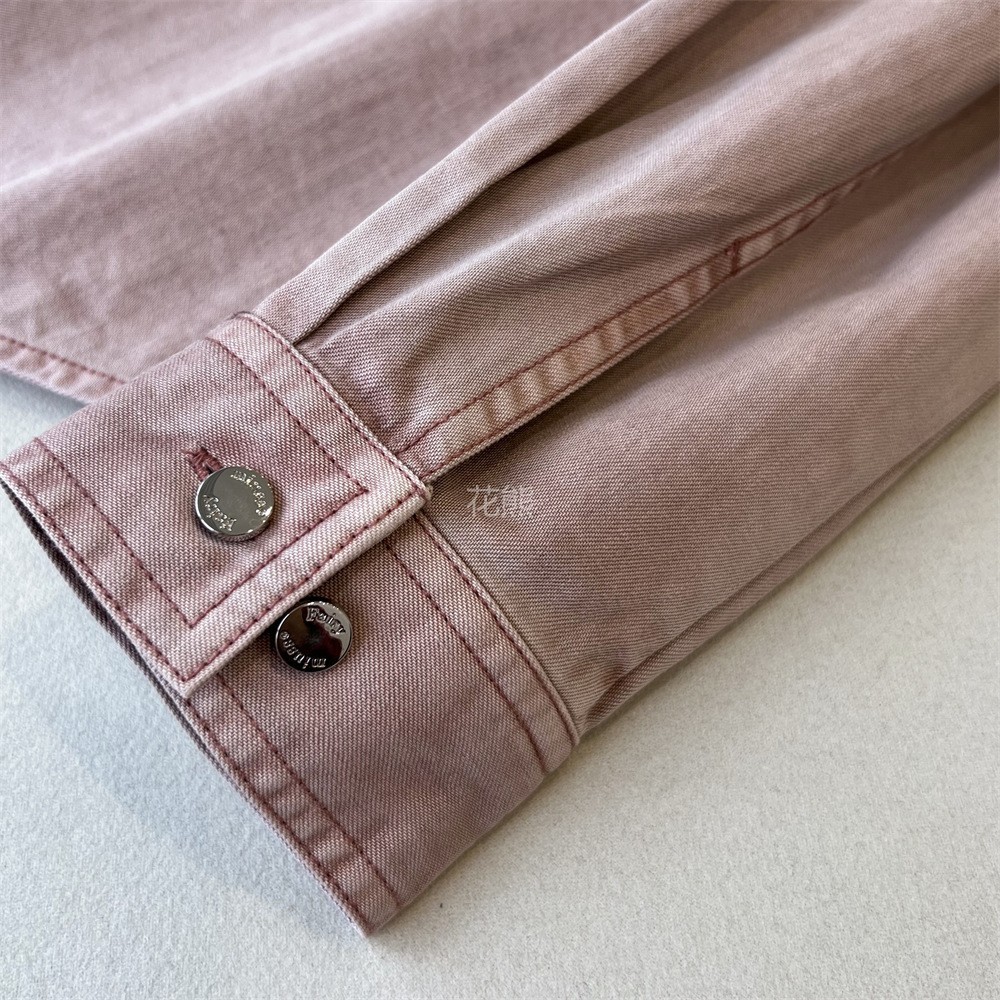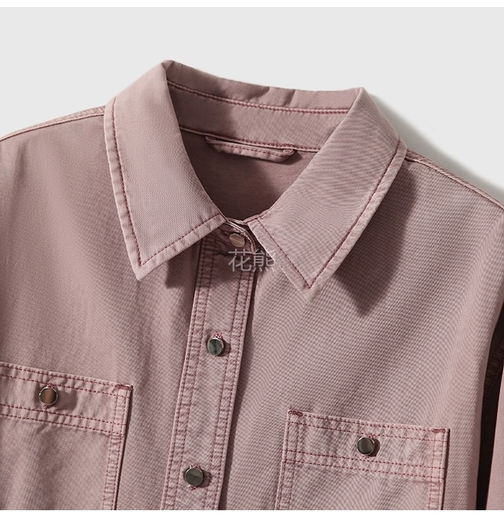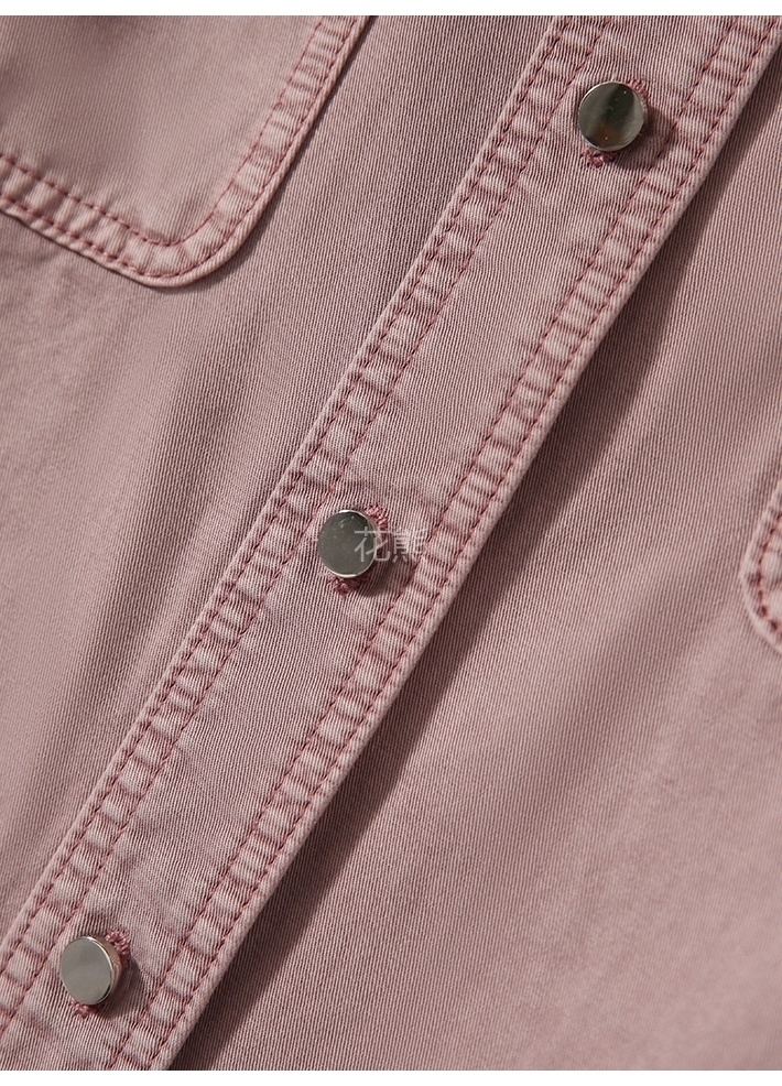 【早春翻糖粉牛仔外套】 设计师款,纯棉的牛仔衬衫也可作为外套两穿 竹节肌理感纯棉面料,上身有筋骨感,