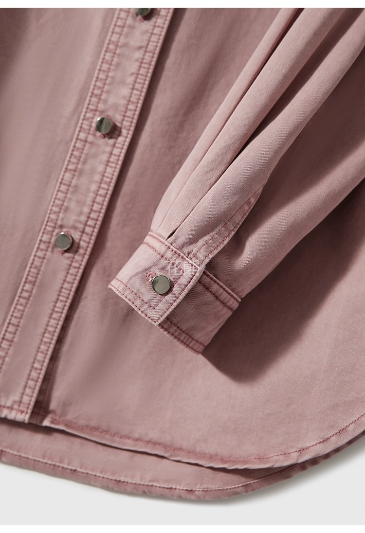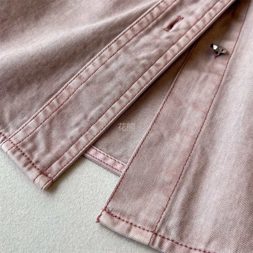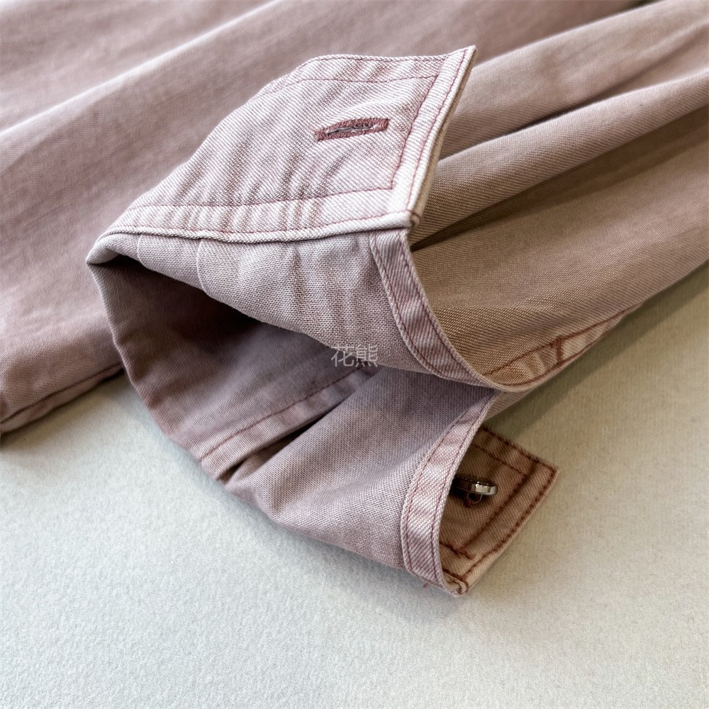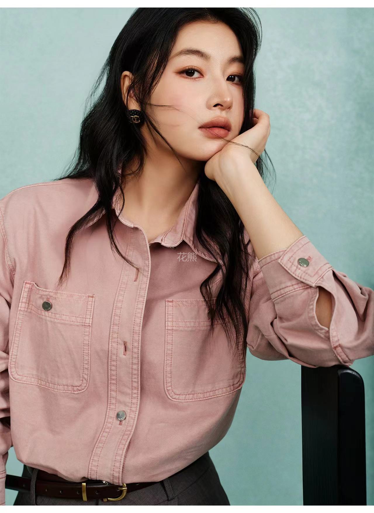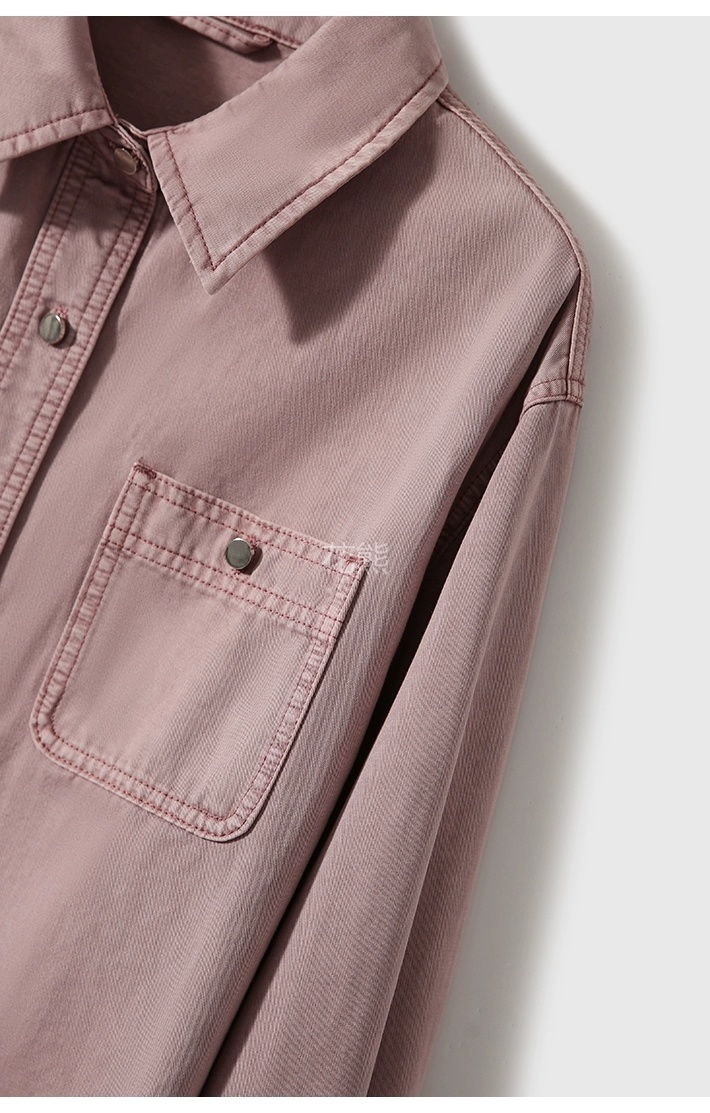 【早春翻糖粉牛仔外套】 设计师款,纯棉的牛仔衬衫也可作为外套两穿 竹节肌理感纯棉面料,上身有筋骨感,