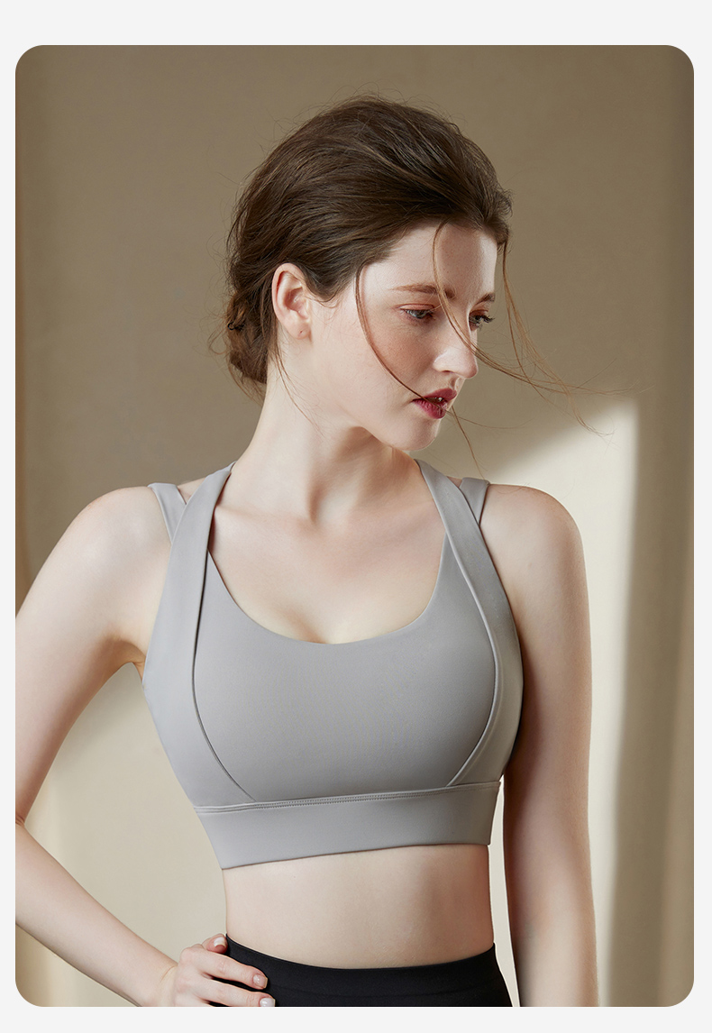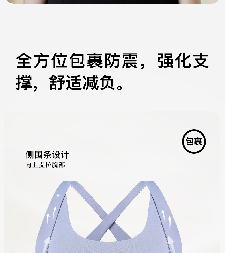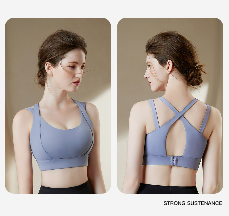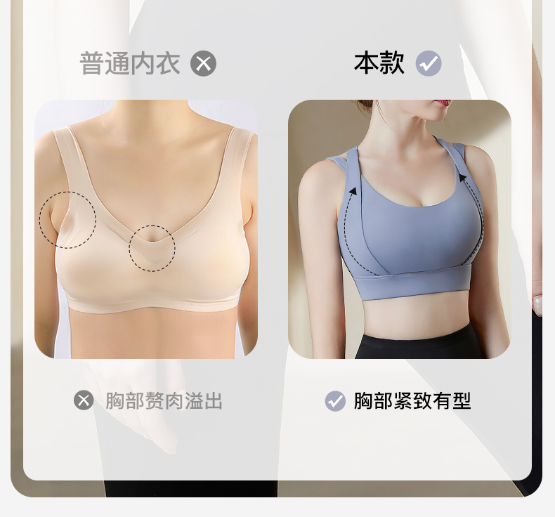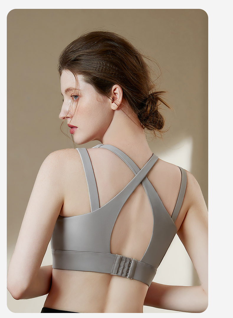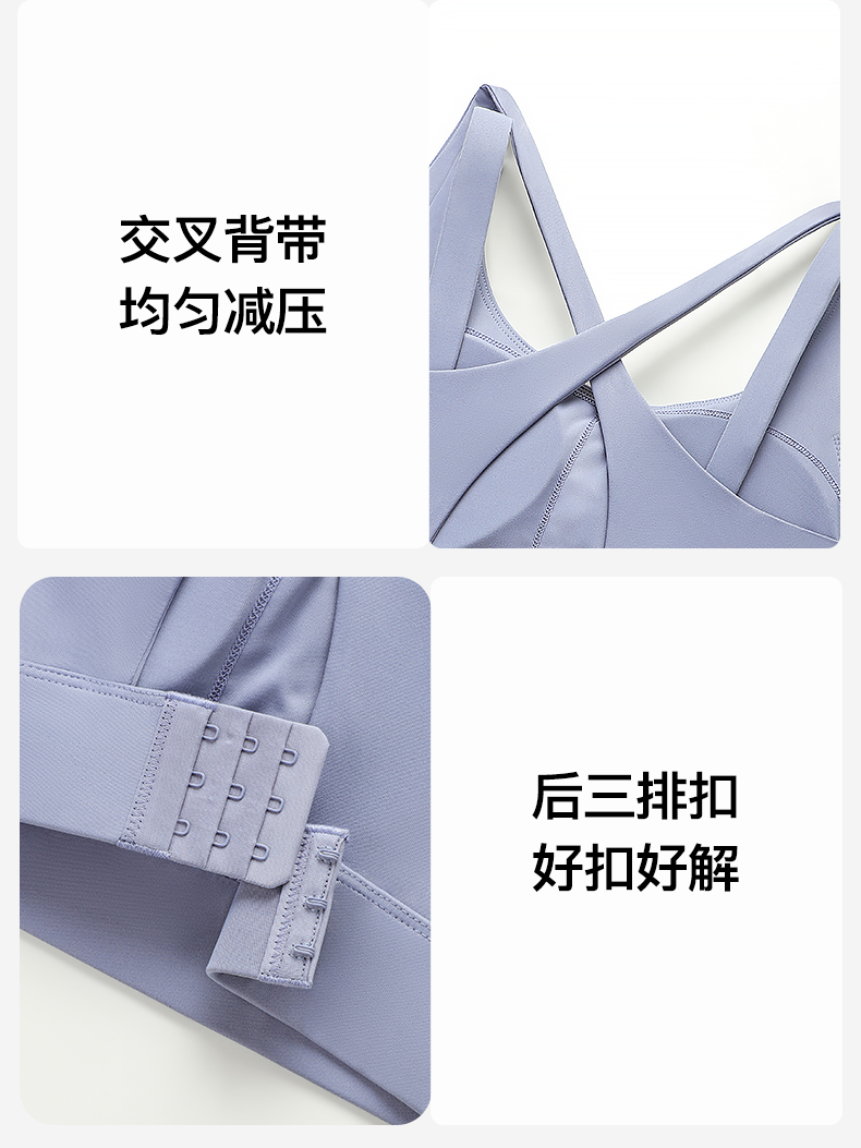 梦芭蒂无痕舒适提拉内衣女薄款交叉美背上托防下垂排扣运动文胸罩