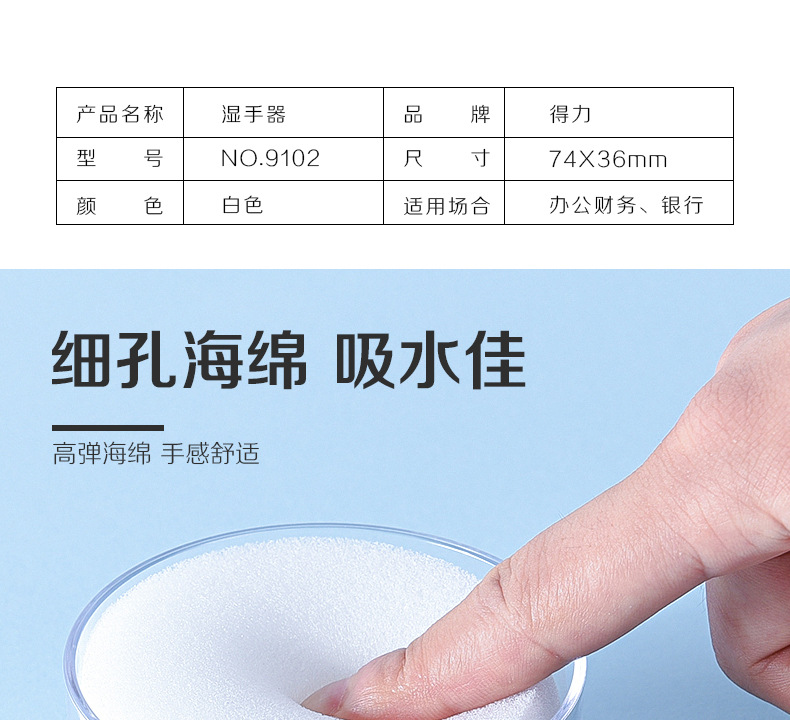 得力9102湿手器海绵沾水器海绵缸沾水缸点钞沾水盒银行考试数钱