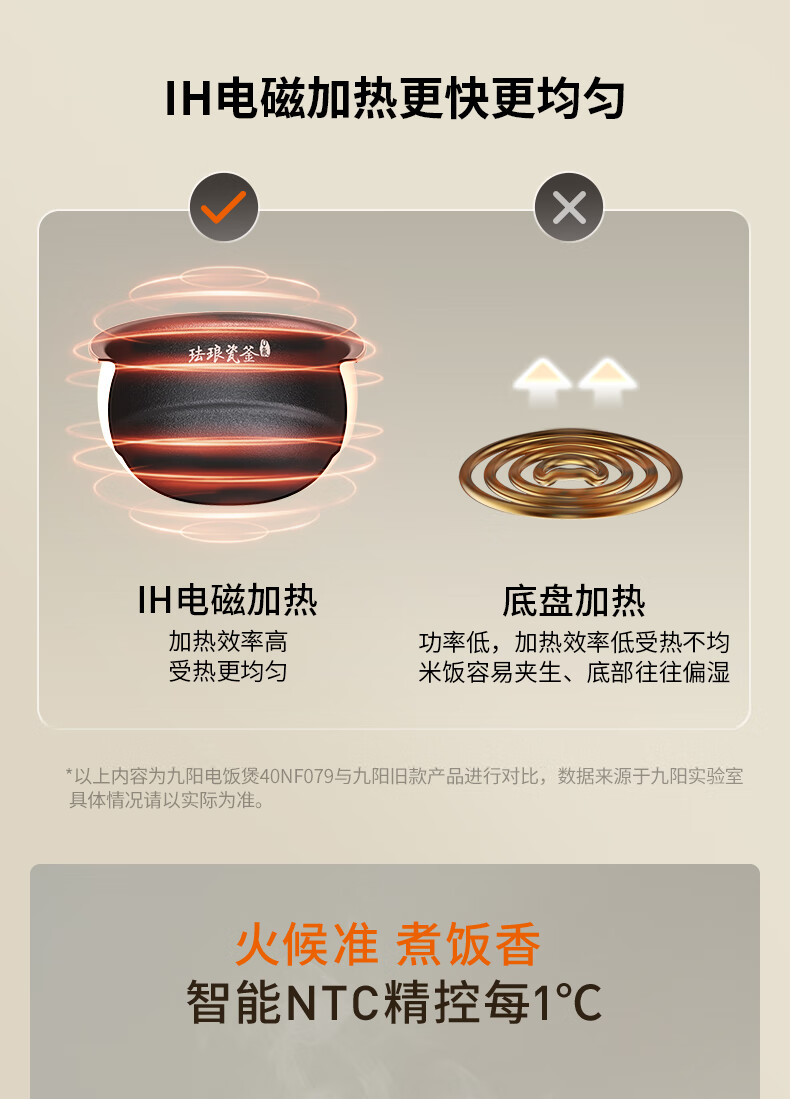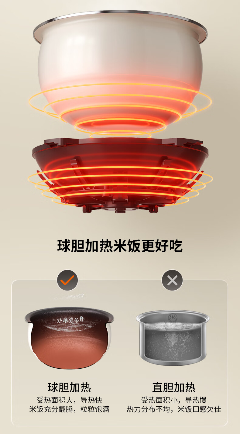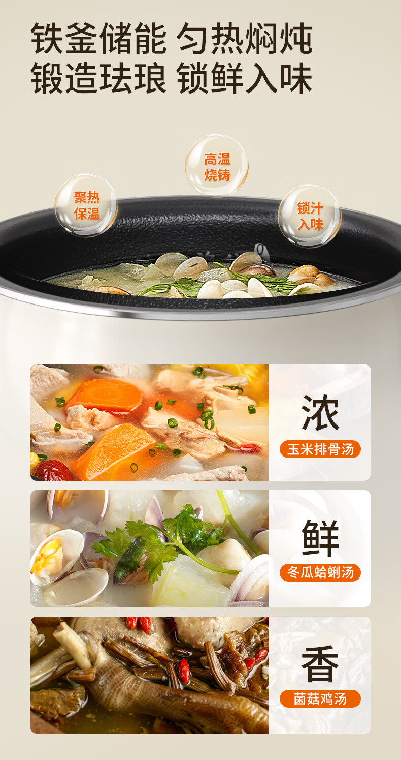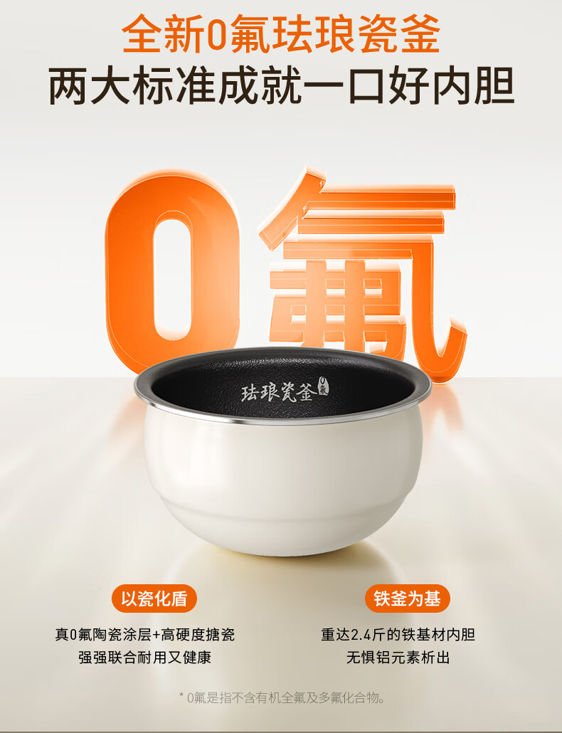 九阳0氟珐琅瓷釜电饭煲4L升家用多功能预约微压快煮电饭锅煮饭锅