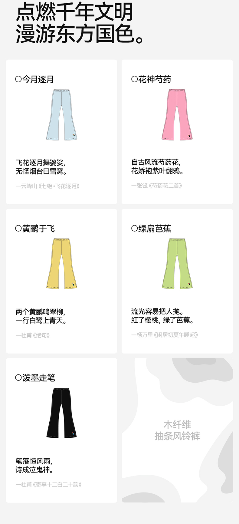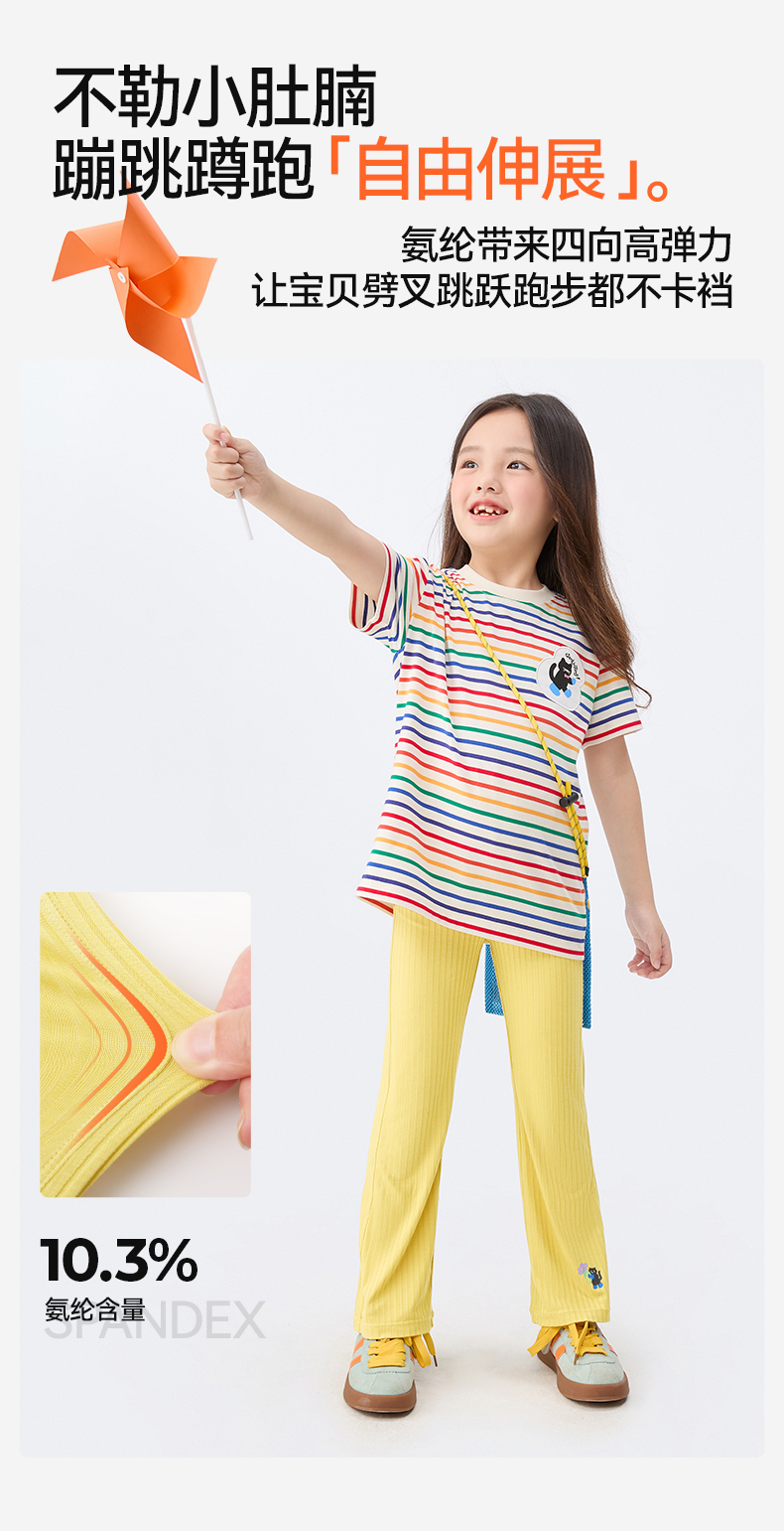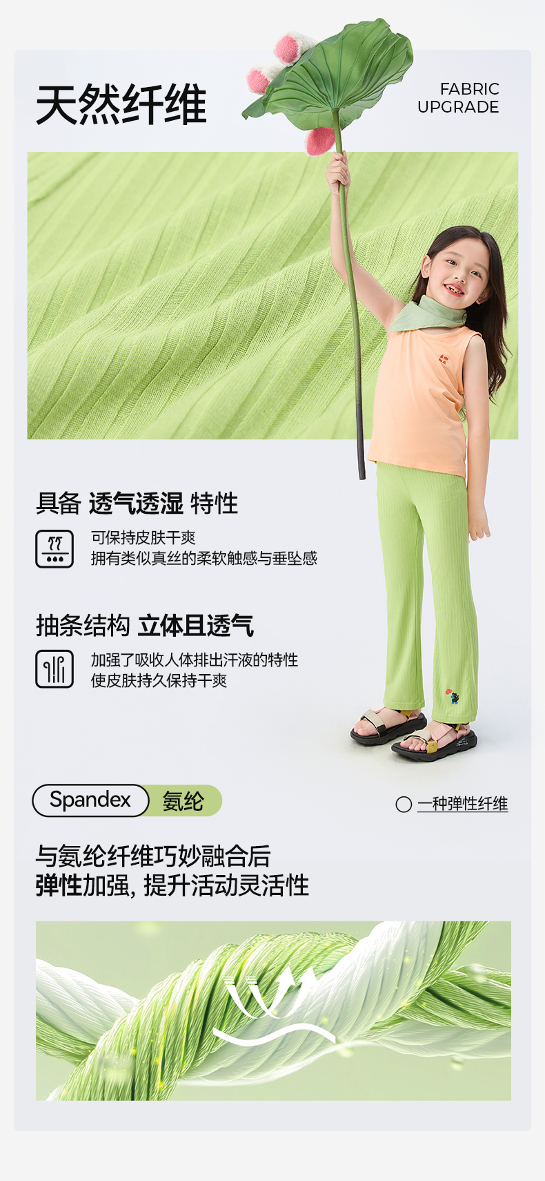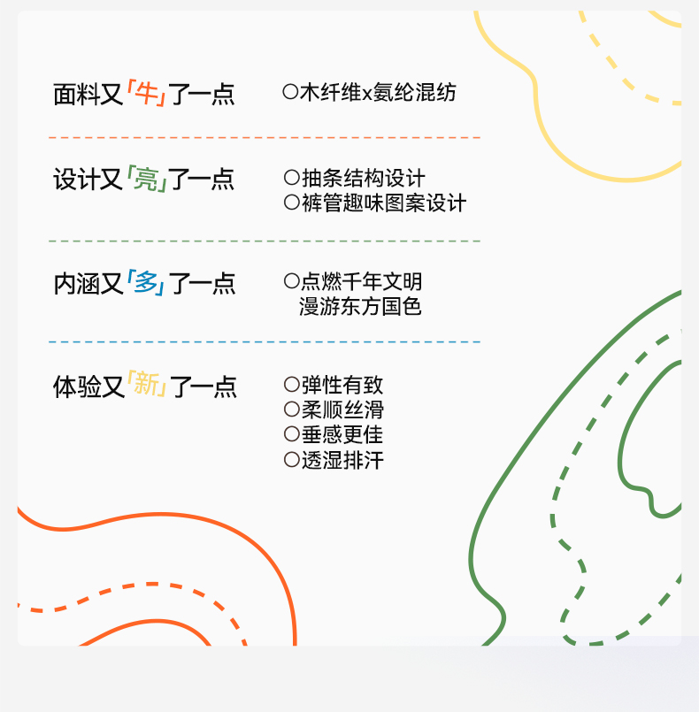 木纤维x高比例氨纶,比棉更加丝滑柔软,亲肤舒适;比棉还要优异的吸湿能力,在夏季能够迅速吸收汗液,保持肌肤干爽:融入10.3%高比例氨纶,增强了裤子的垂坠感,同时更加修饰腿型。
