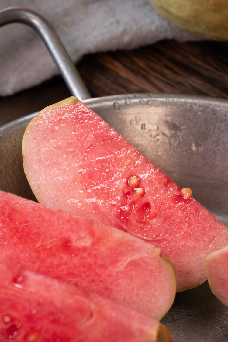 少籽芭乐外观圆润讨喜,淡绿泛白的表皮,轻柔地包裹着内里