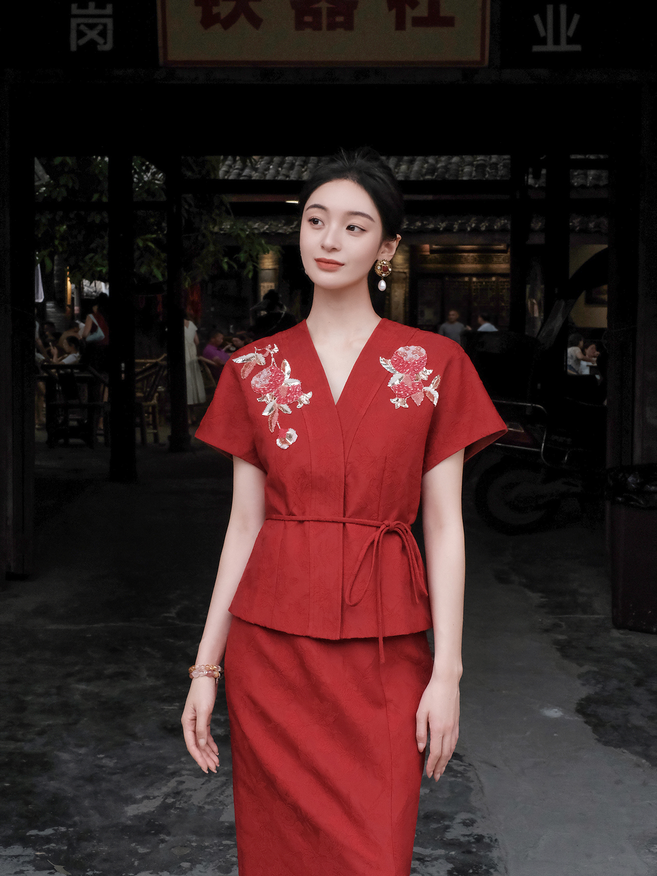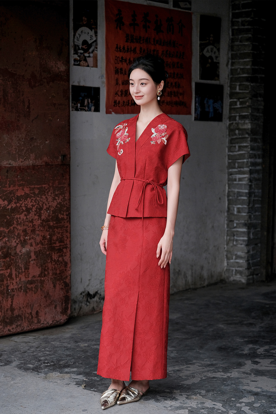 盛唐牡丹 |玉色/香槟金冠乐绉蝶恋花上衣