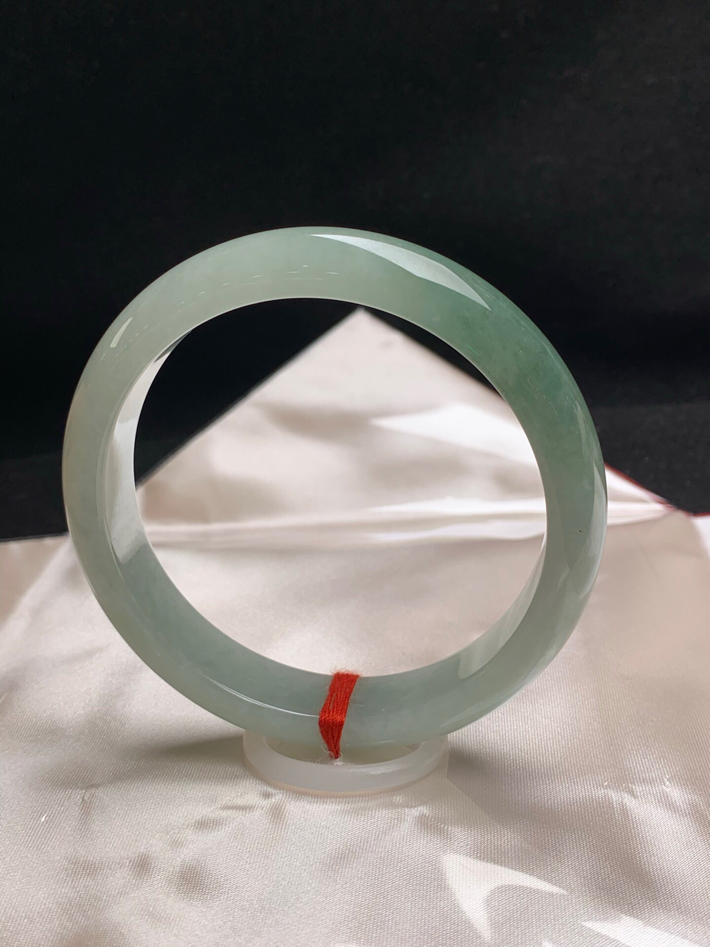 620726,56.3飘绿圆条手镯。12.5mm,条形好,整条带浅绿底,干净清爽,完美的