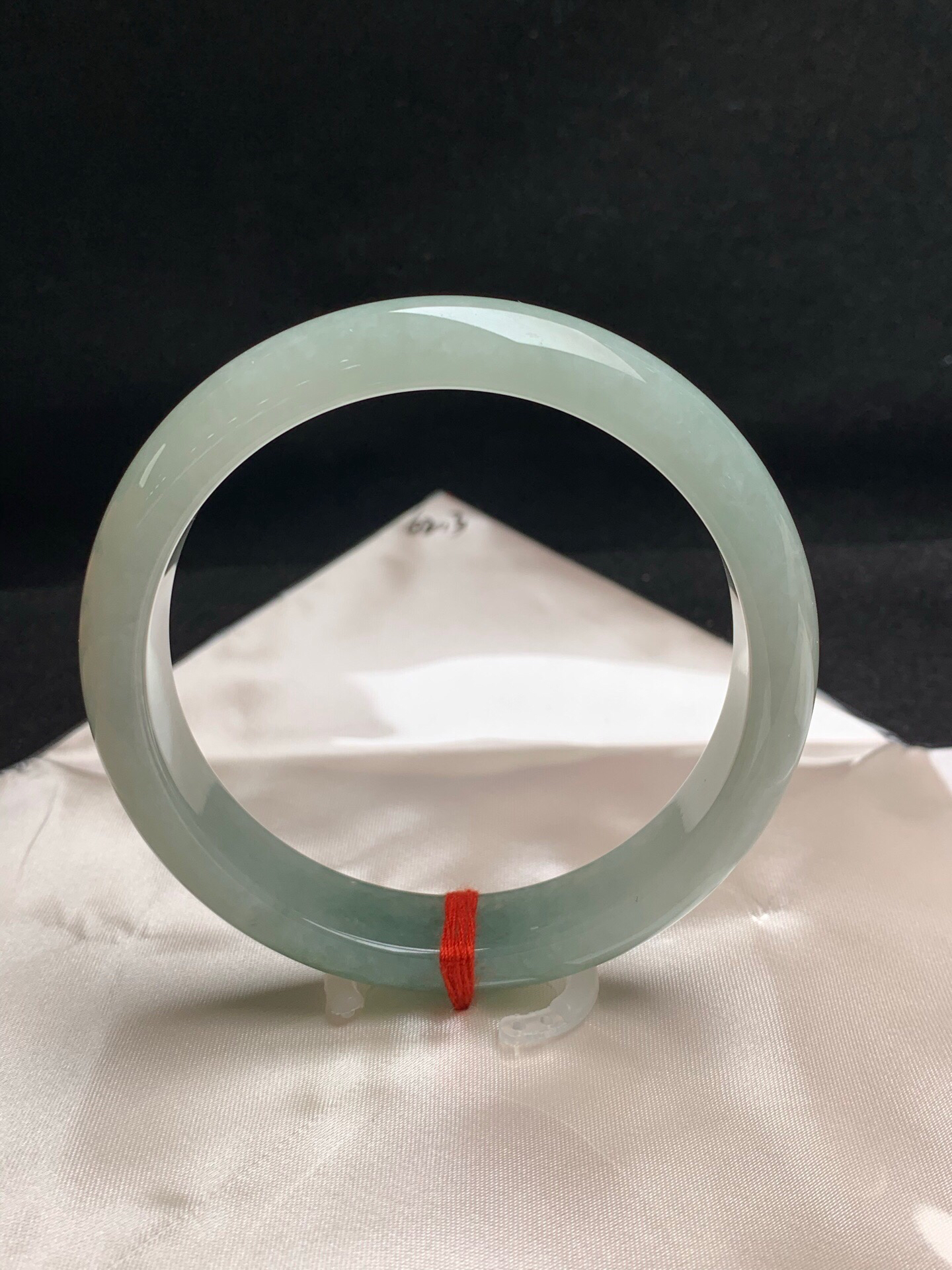 620166,62.3圈口,糯化飘油青正圈平安镯,半山水色